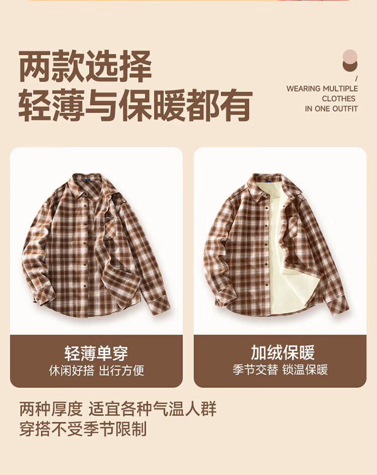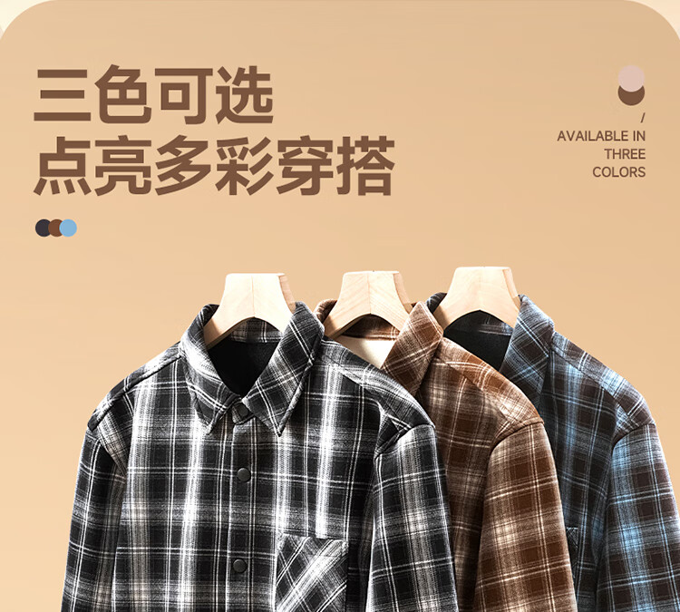 真维斯(Jeanswest)2026美式格子衬衫男士秋季通勤百搭法兰绒青少年翻领衬衣休闲外套 蓝咖格 M