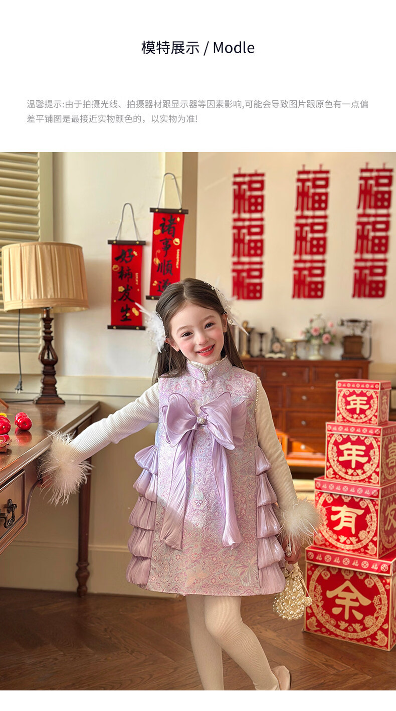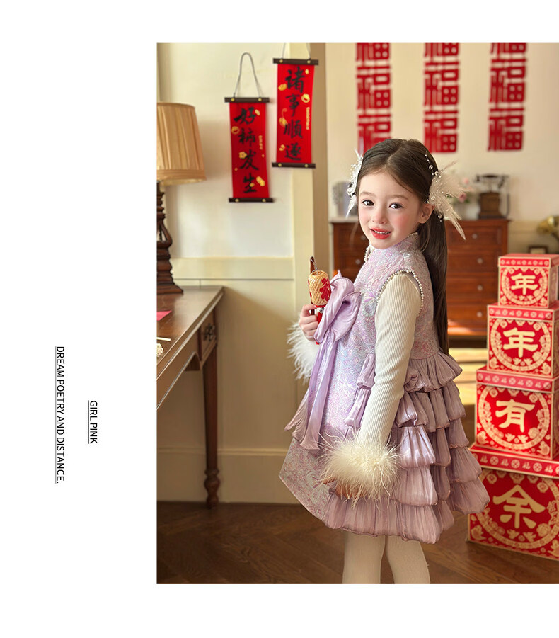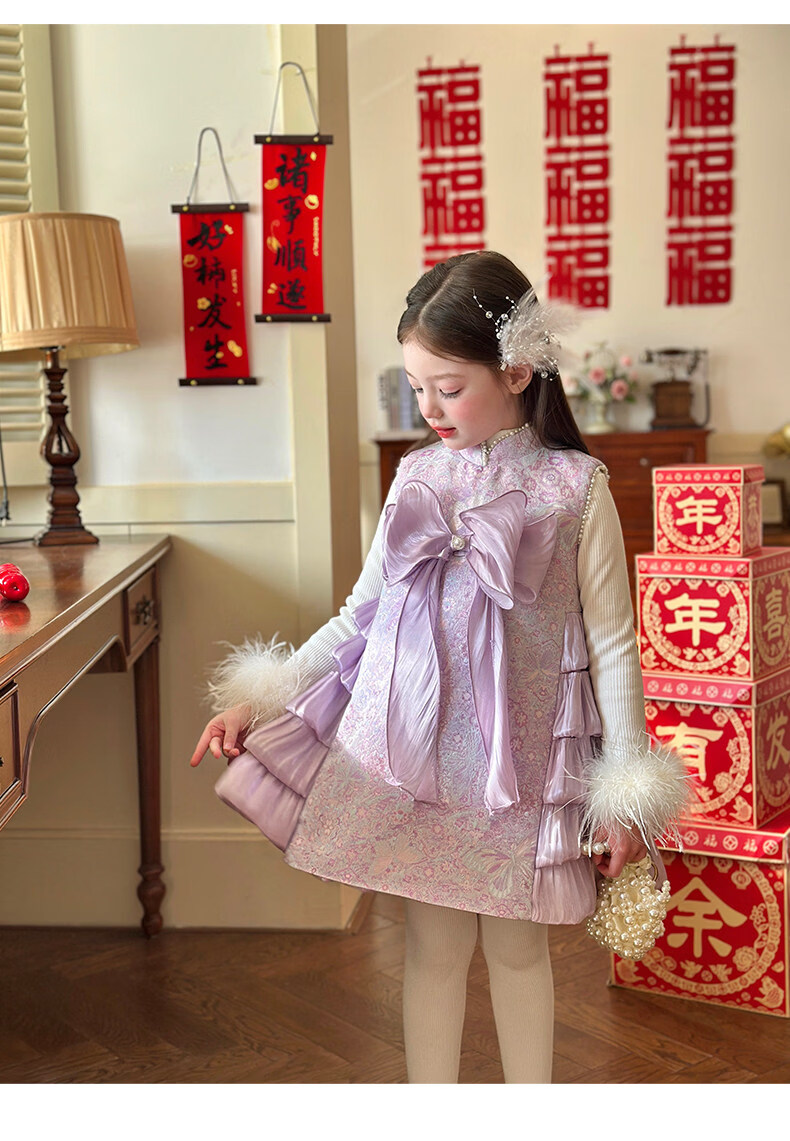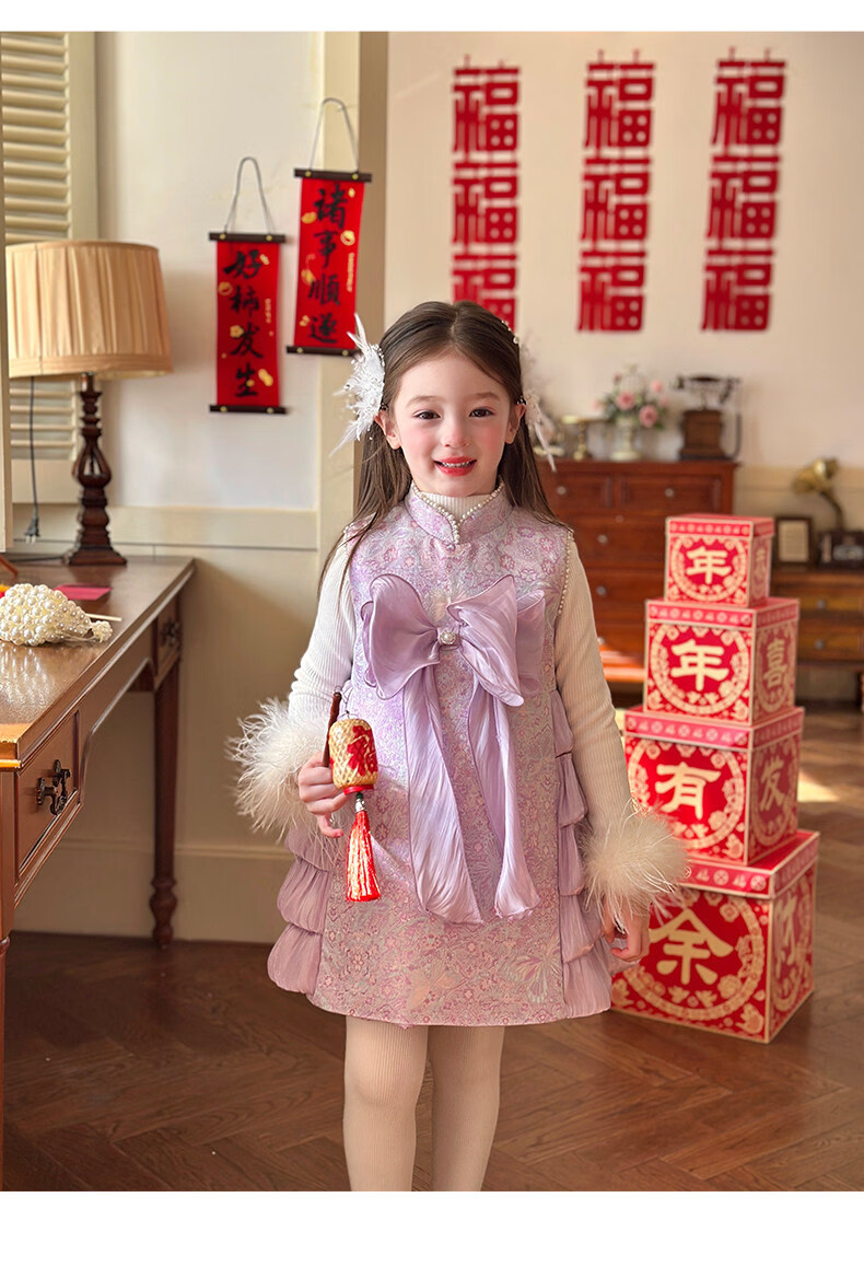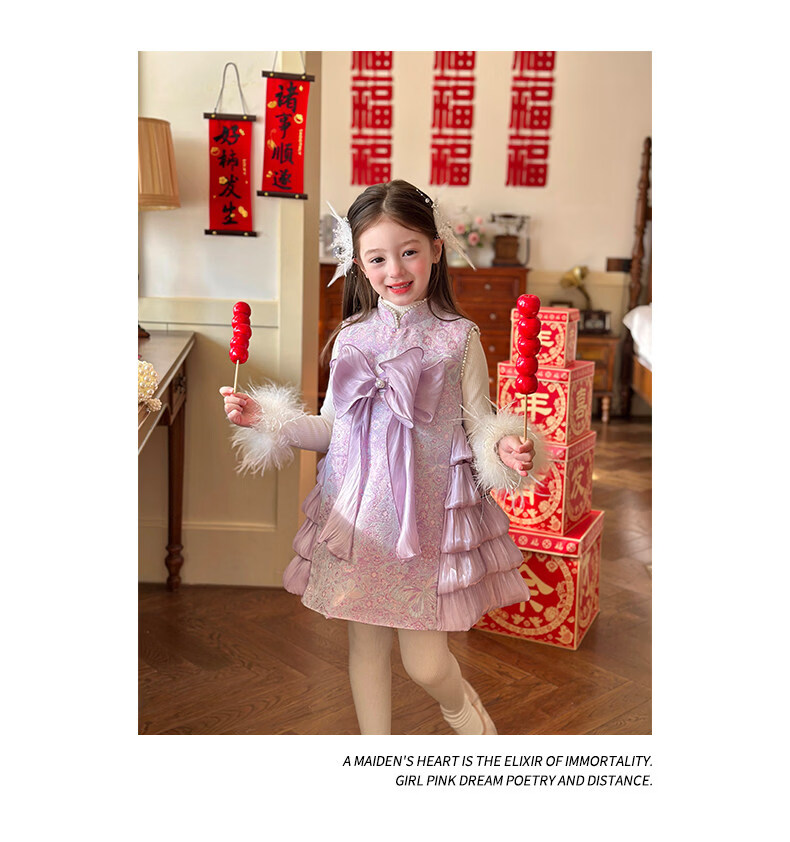 栀了成长记童装女童新中式甜美连衣裙2025冬季国风夹棉保暖背心裙 紫色 背心裙 100 cm