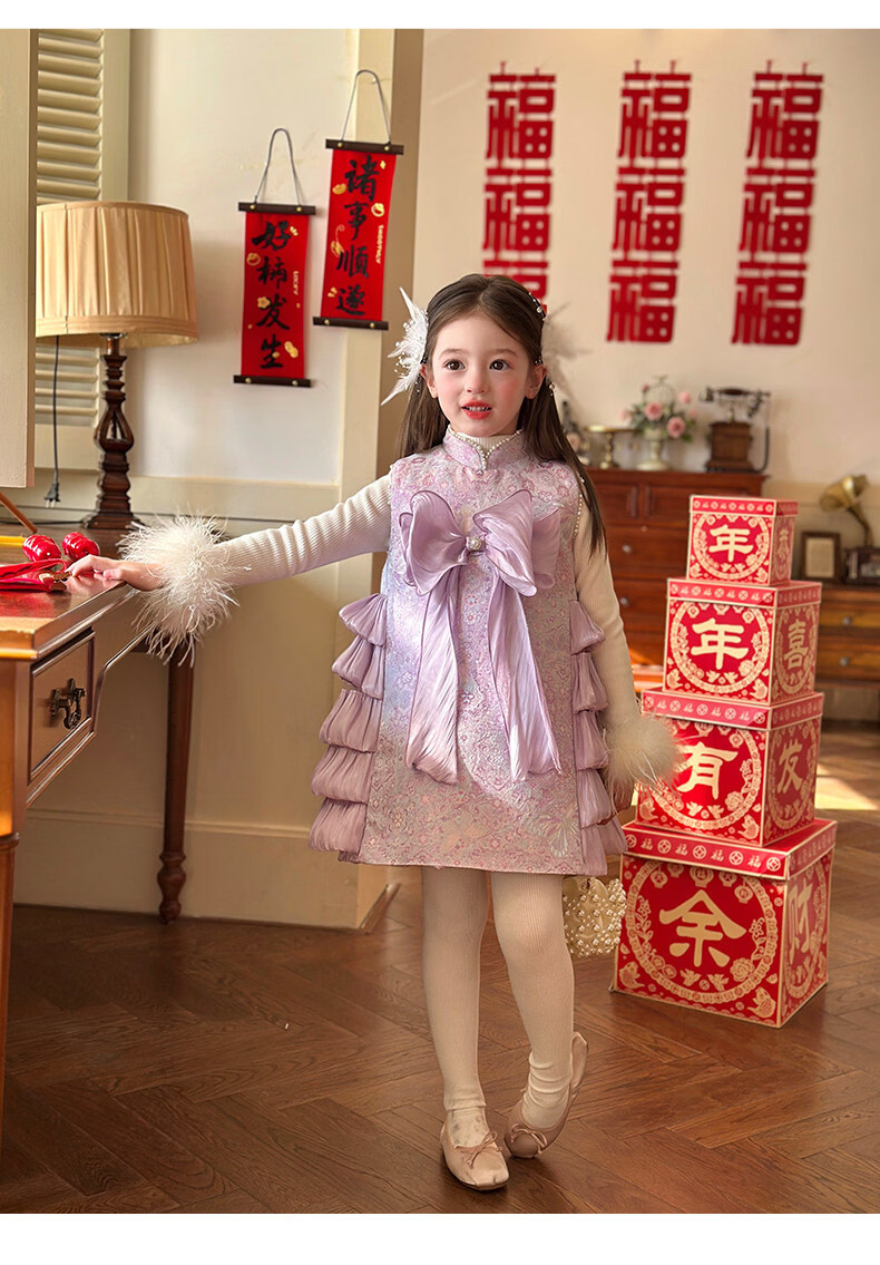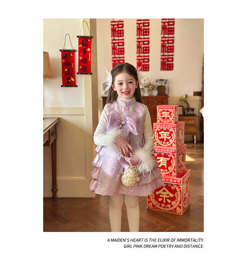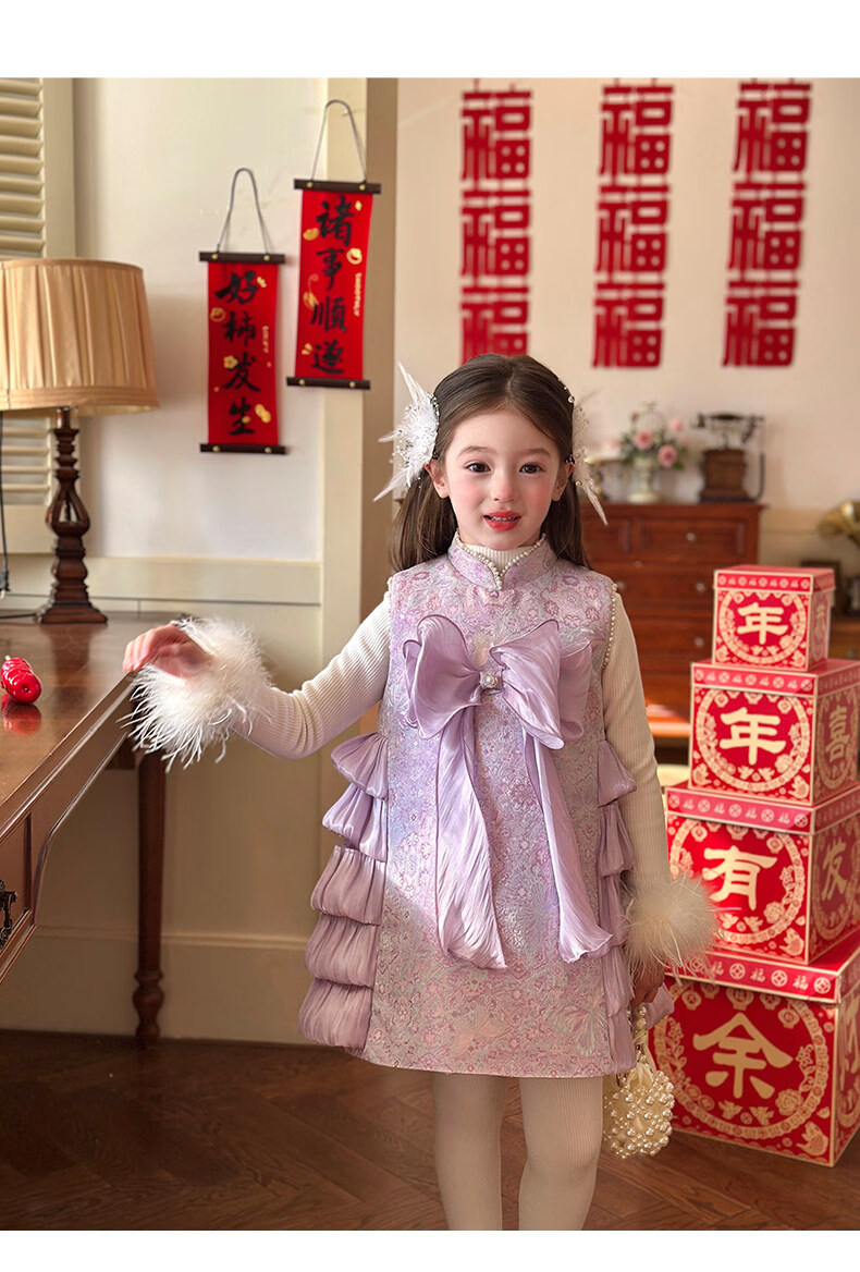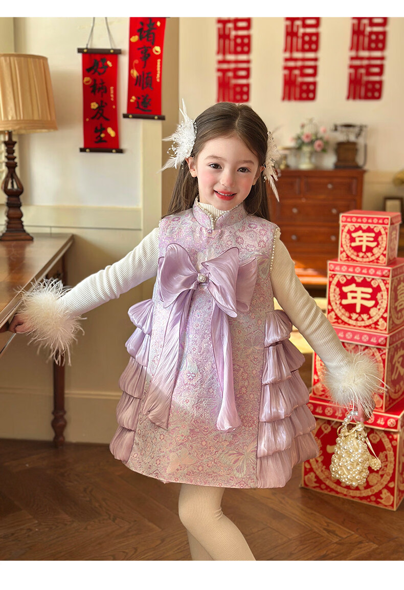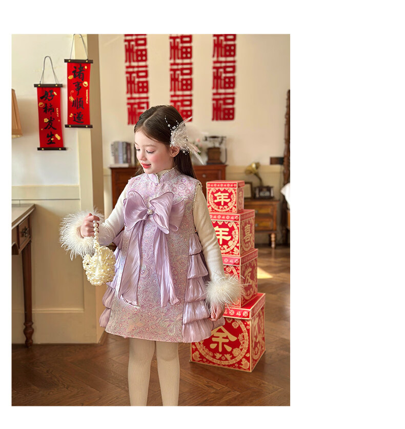栀了成长记童装女童新中式甜美连衣裙2025冬季国风夹棉保暖背心裙 紫色 背心裙 100 cm