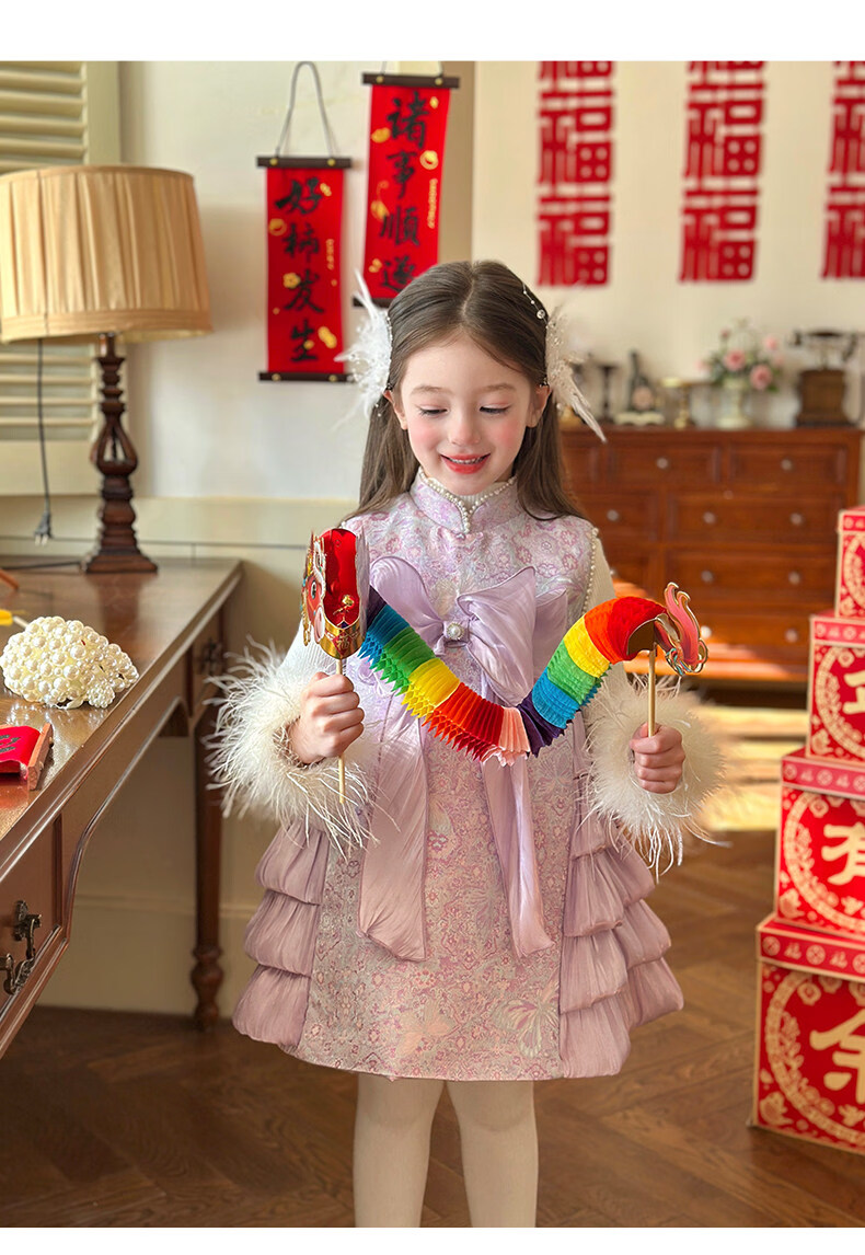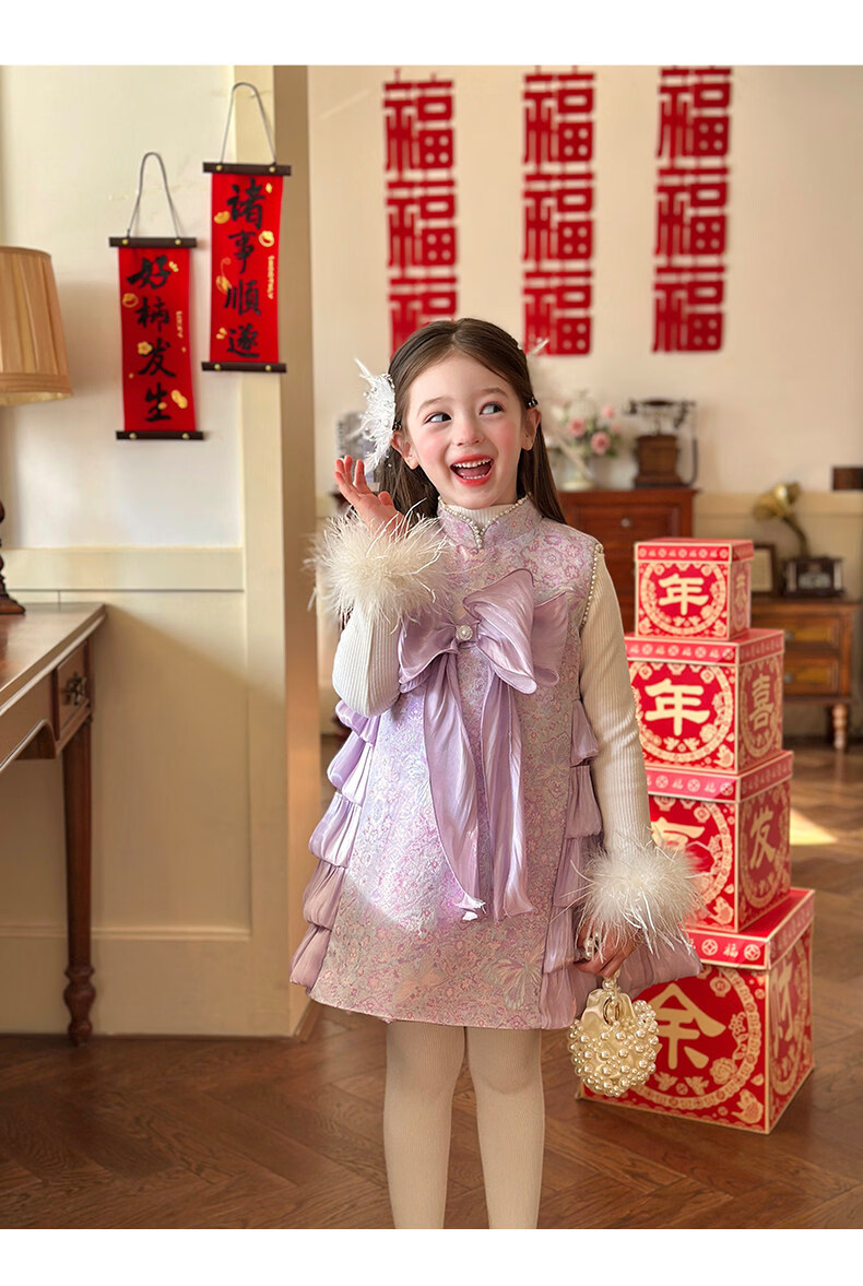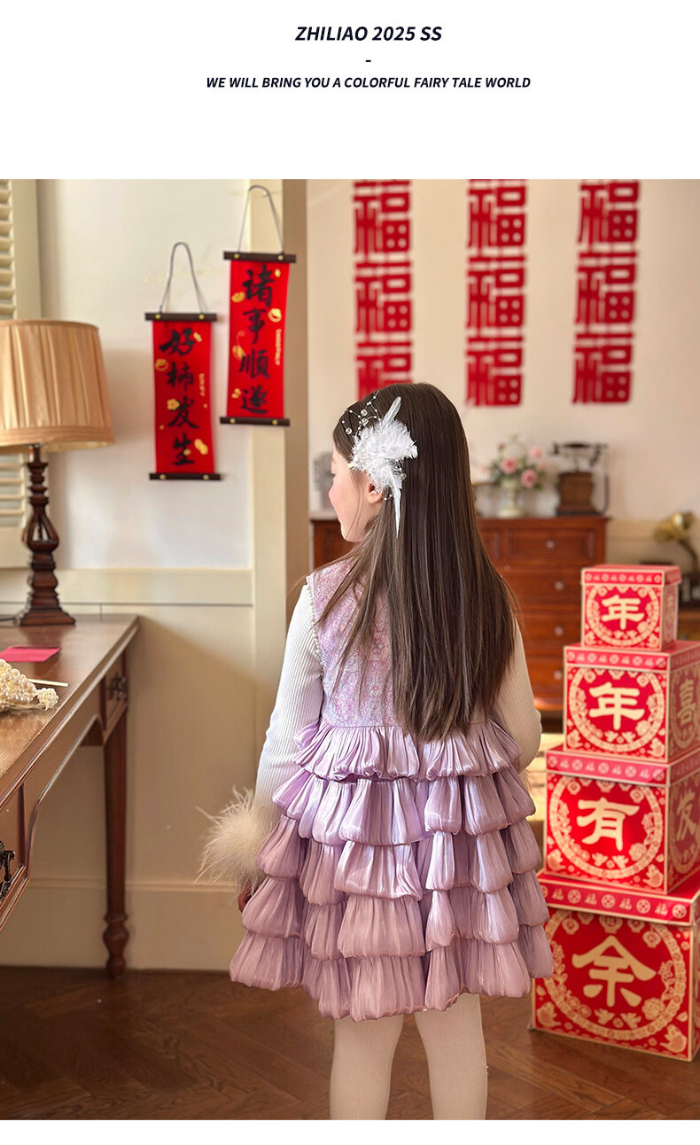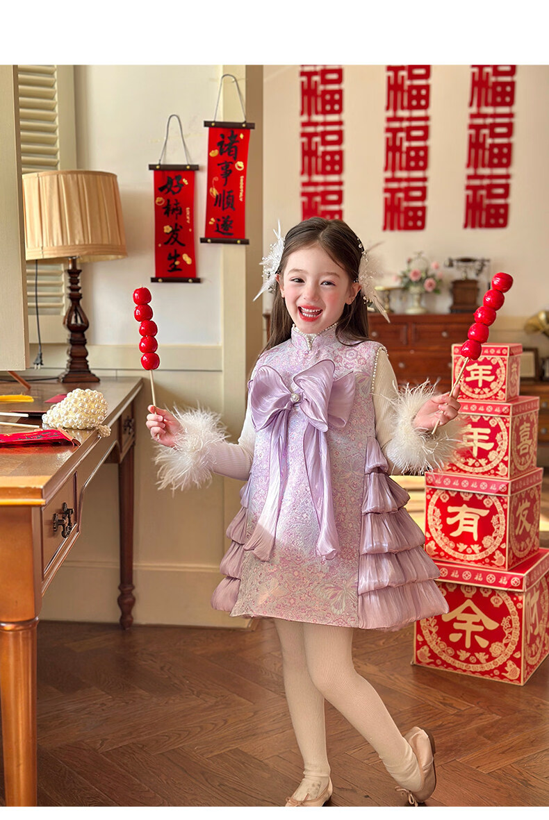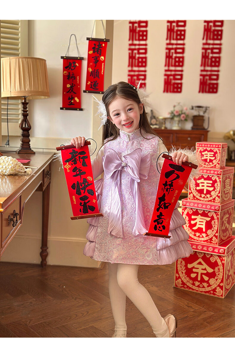 栀了成长记童装女童新中式甜美连衣裙2025冬季国风夹棉保暖背心裙 紫色 背心裙 100 cm