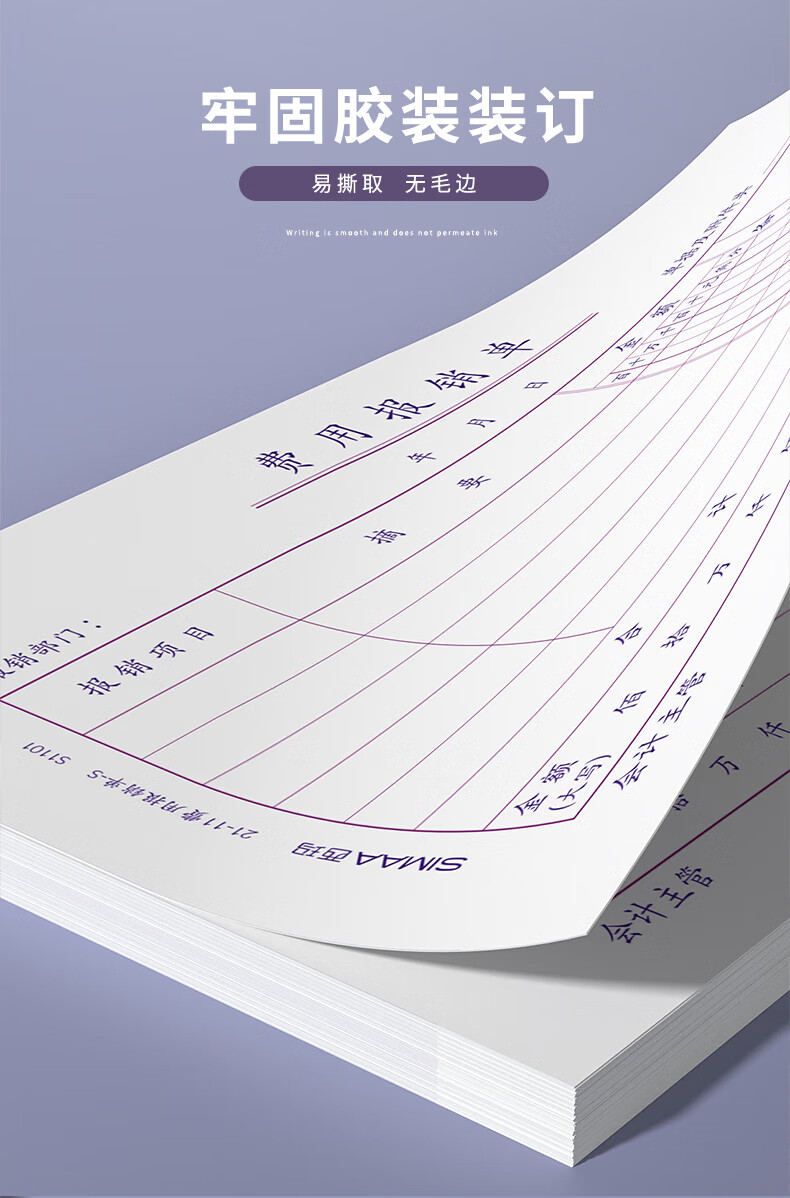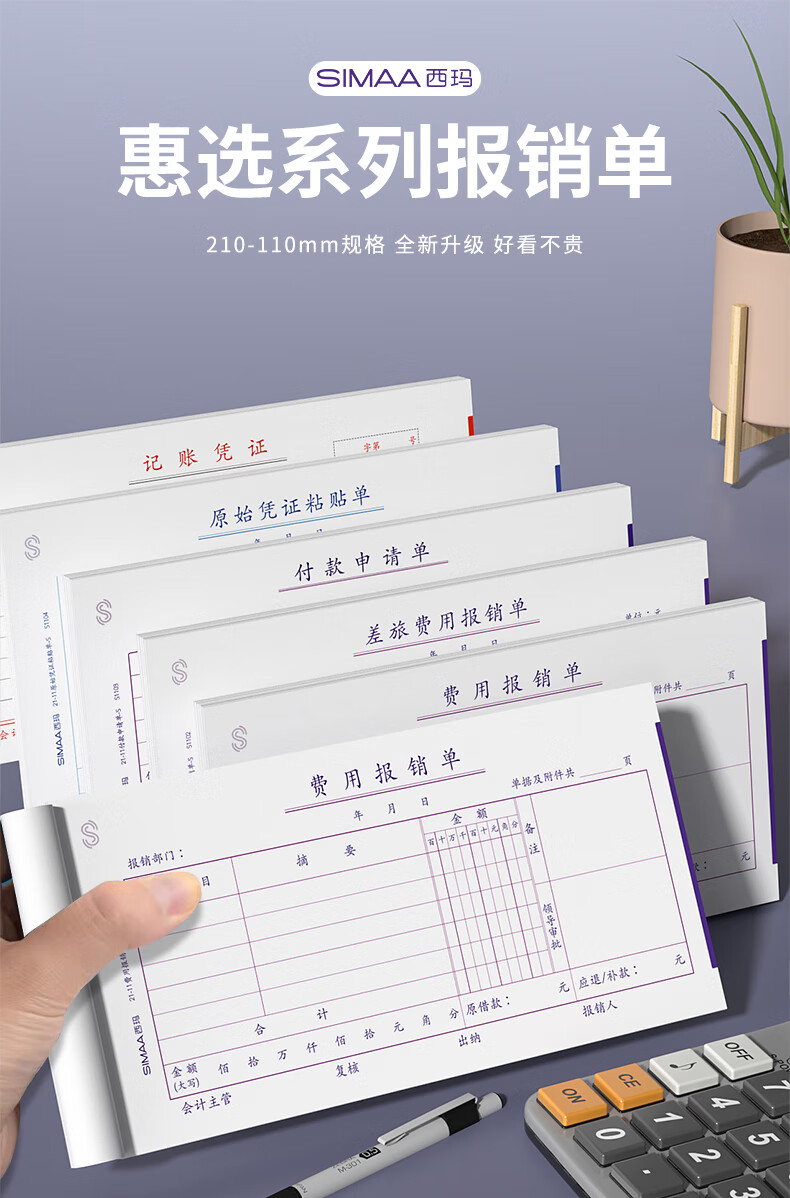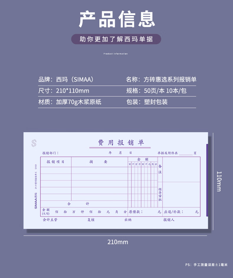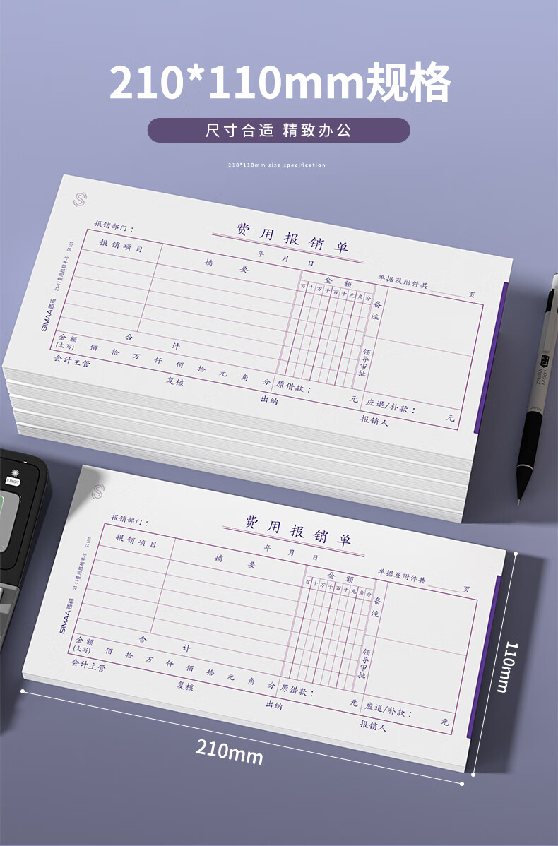 西玛(SIMAA) 费用报销单 财务用品通用单据凭证报销单据消费账单210*110mm 50页/本 10本/包