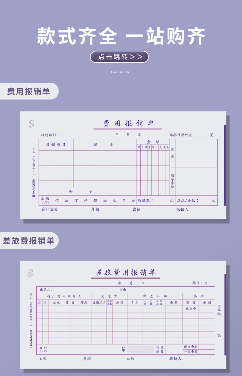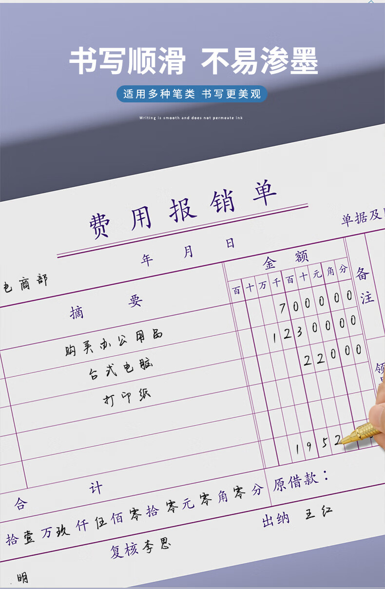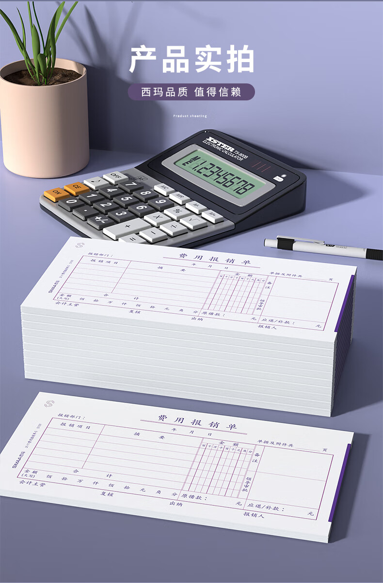 西玛(SIMAA) 费用报销单 财务用品通用单据凭证报销单据消费账单210*110mm 50页/本 10本/包