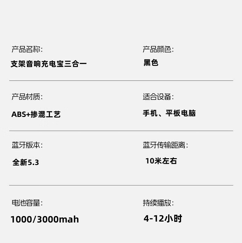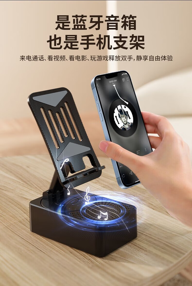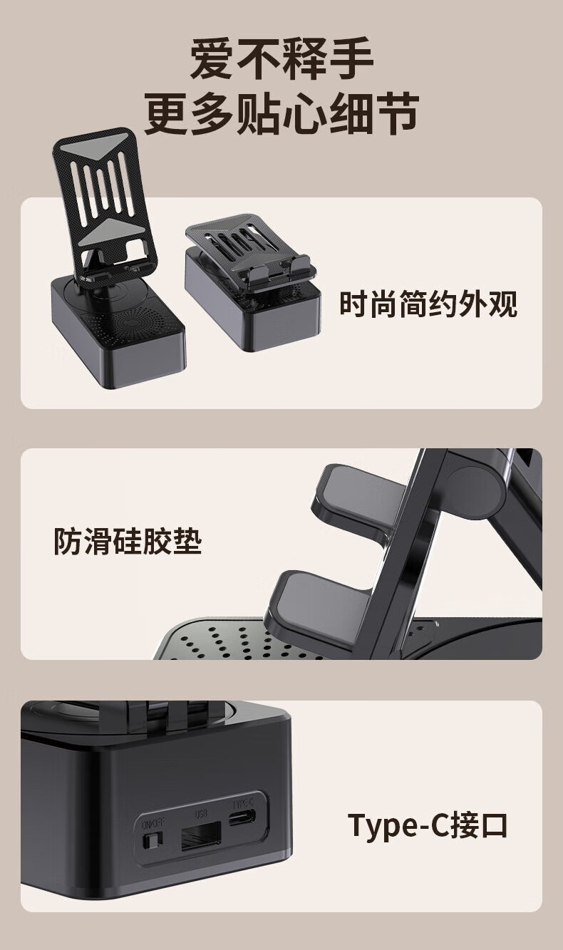春程蓝牙音响支架充电宝三合一 手机平板支架多功能桌面360°可折叠旋转升降支架带移动电源的数码支架 音响+支架+充电宝三合一(3000mah)