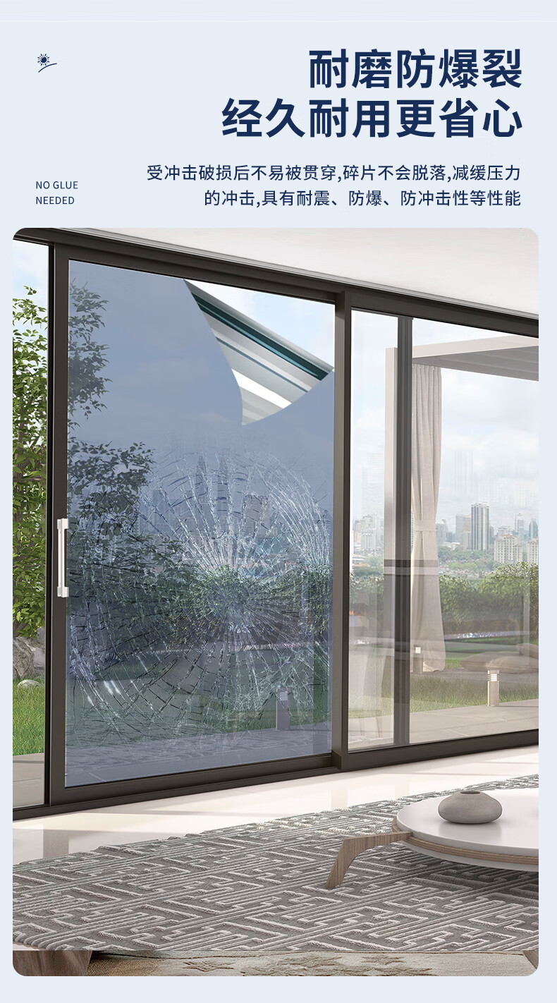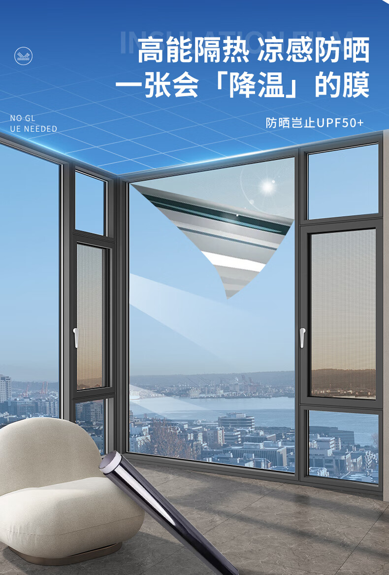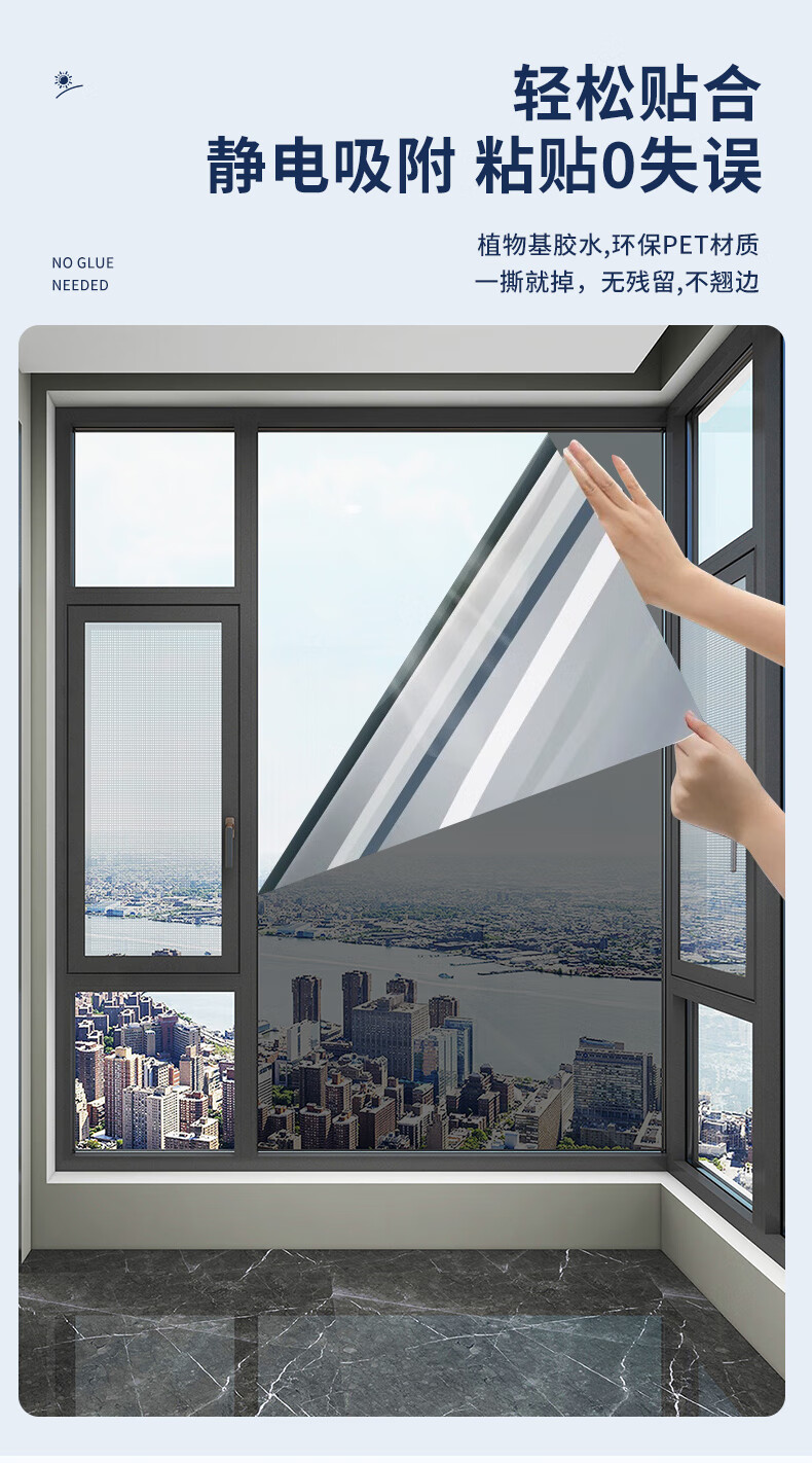 美纳美防晒隔热膜家用窗户玻璃贴膜单向透视太阳膜卧室厨房阳台遮光贴纸 【防晒隔热】钻石灰90cm*5米