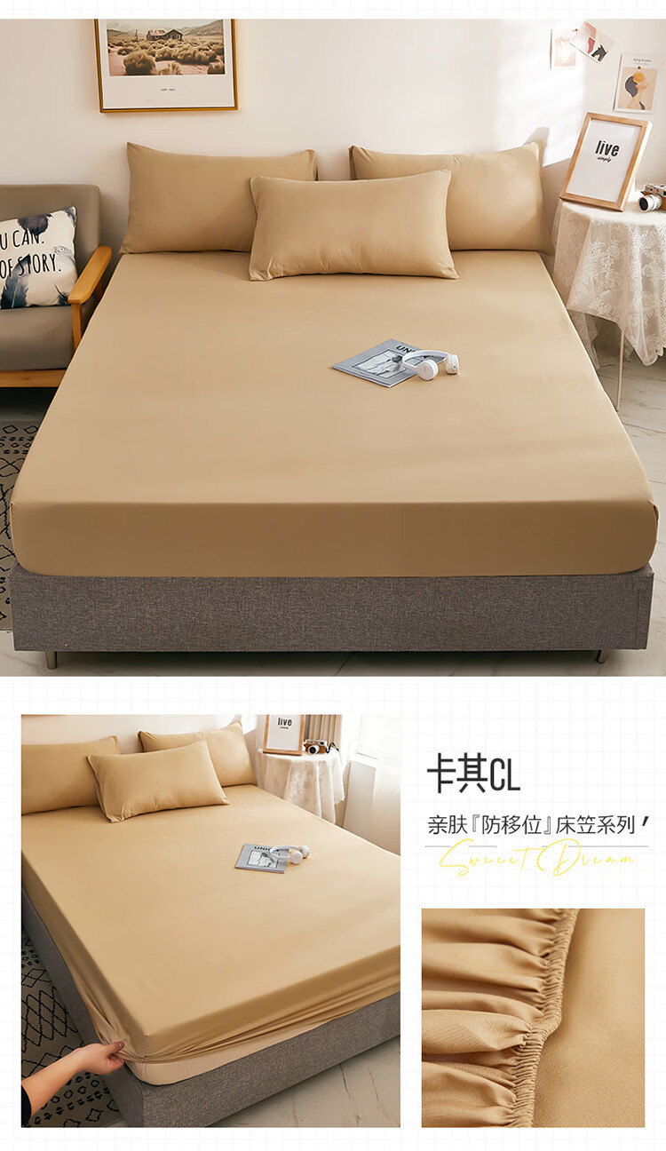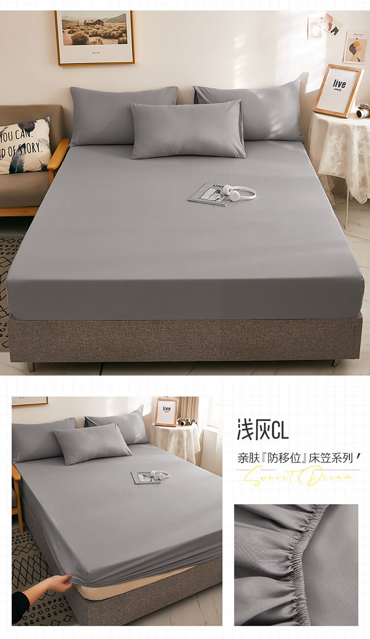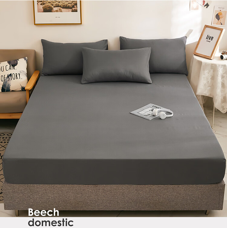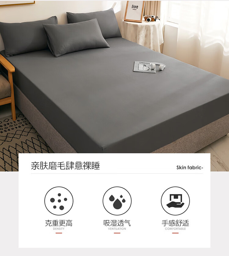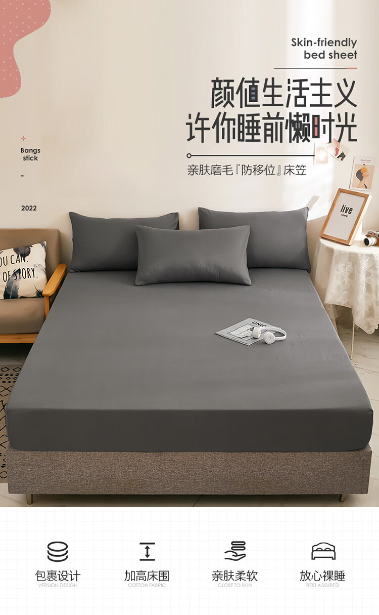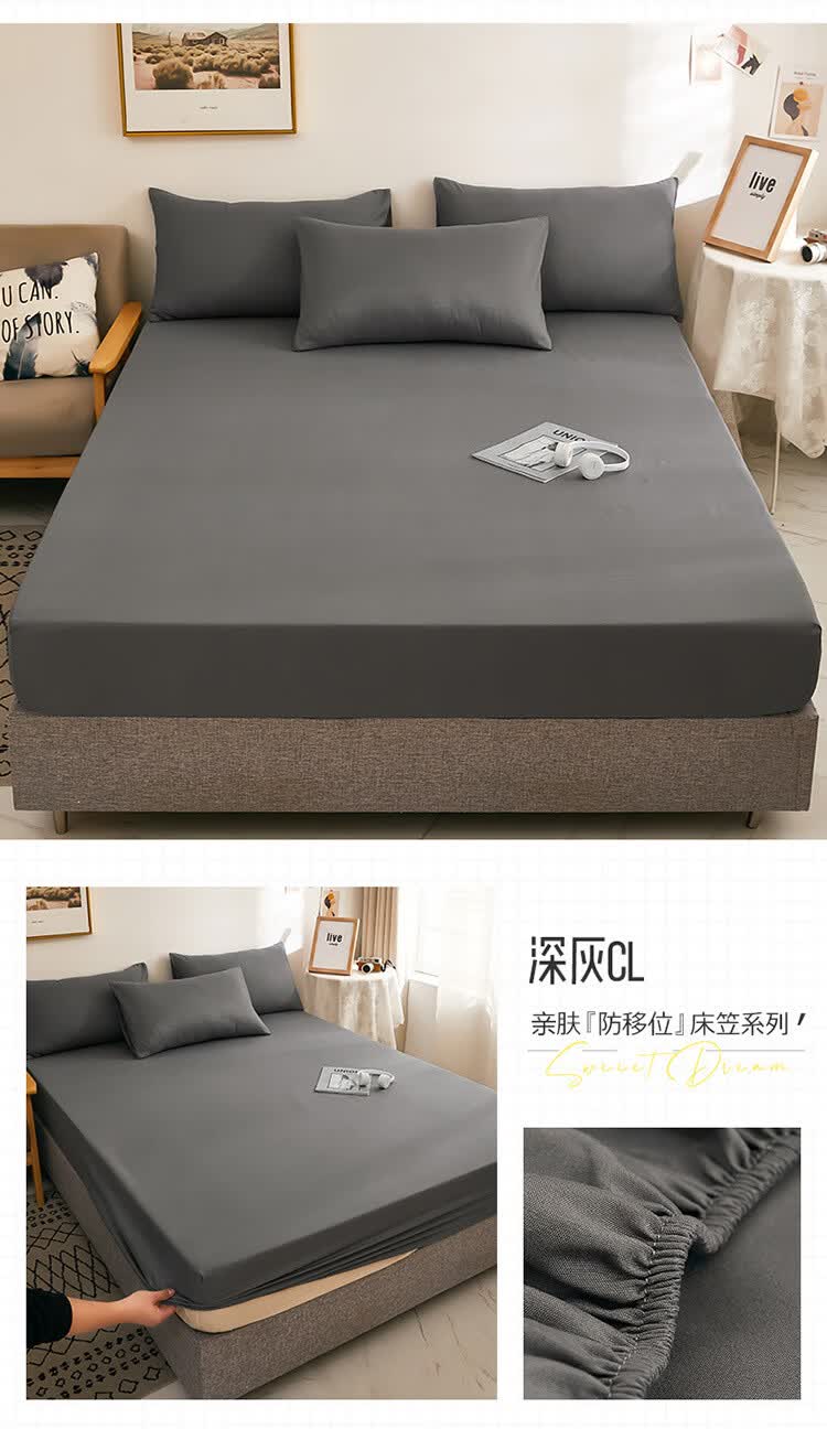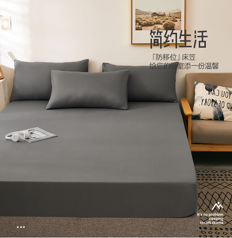 诸匠仕纯色床笠单件磨毛防滑固定床罩双人床单全包床垫席防尘保护床套罩 深灰 单件 150cm*200cm