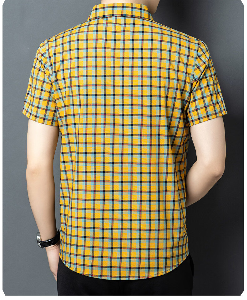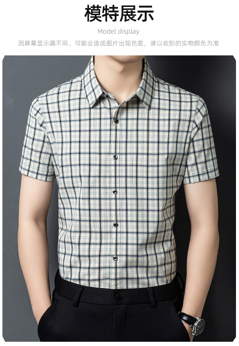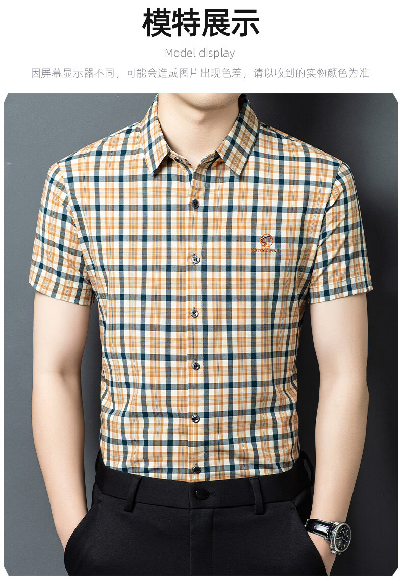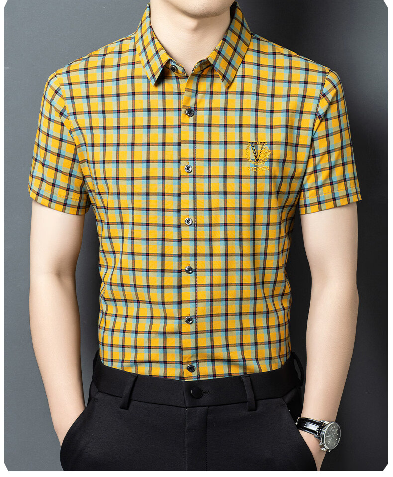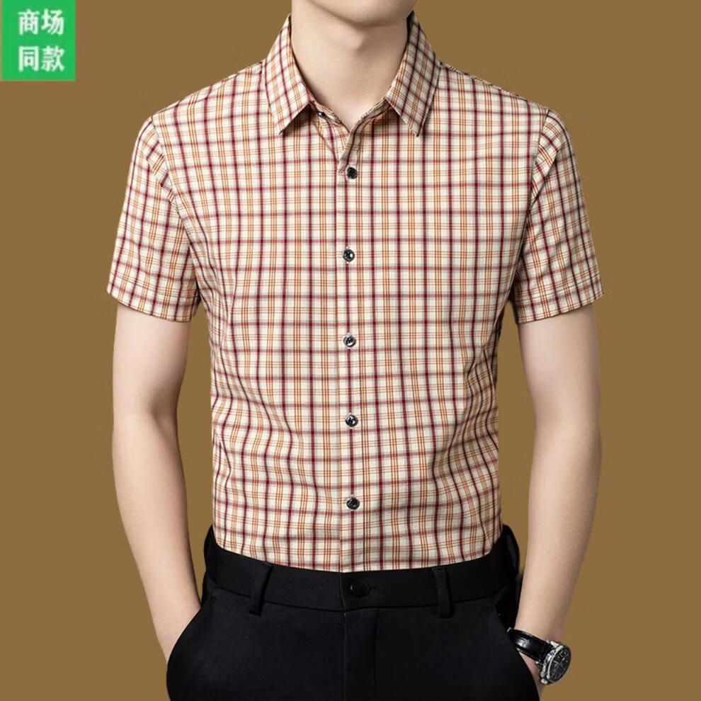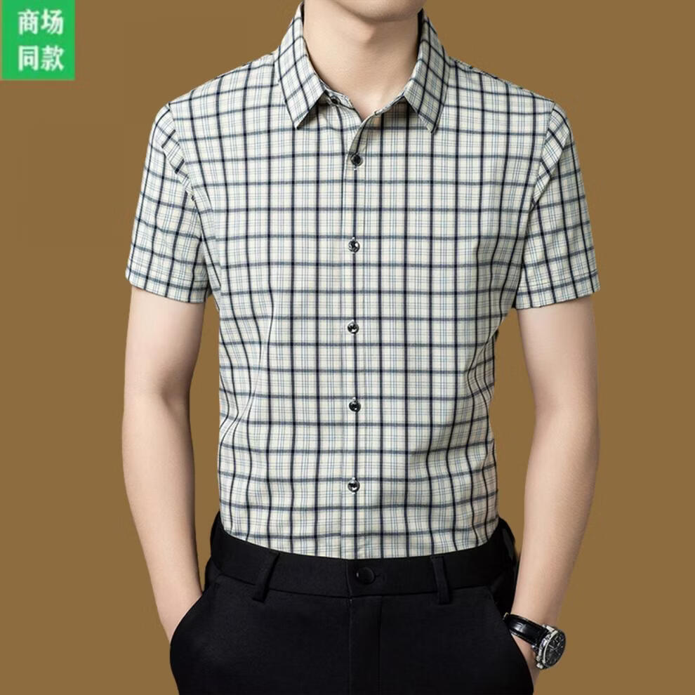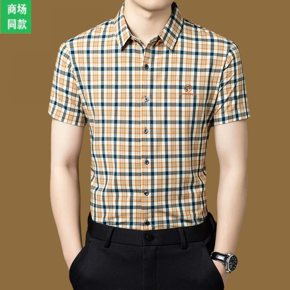 B PRORSUM巴宝莉男士商务休闲短袖格子衬衫翻领透气修身纯棉衬衣夏中青年时 十大奢侈品男装黄色 M 165__建议体重100-120斤