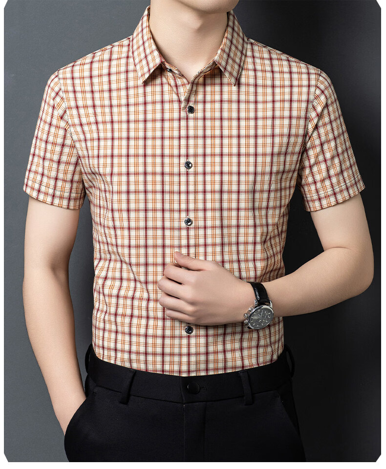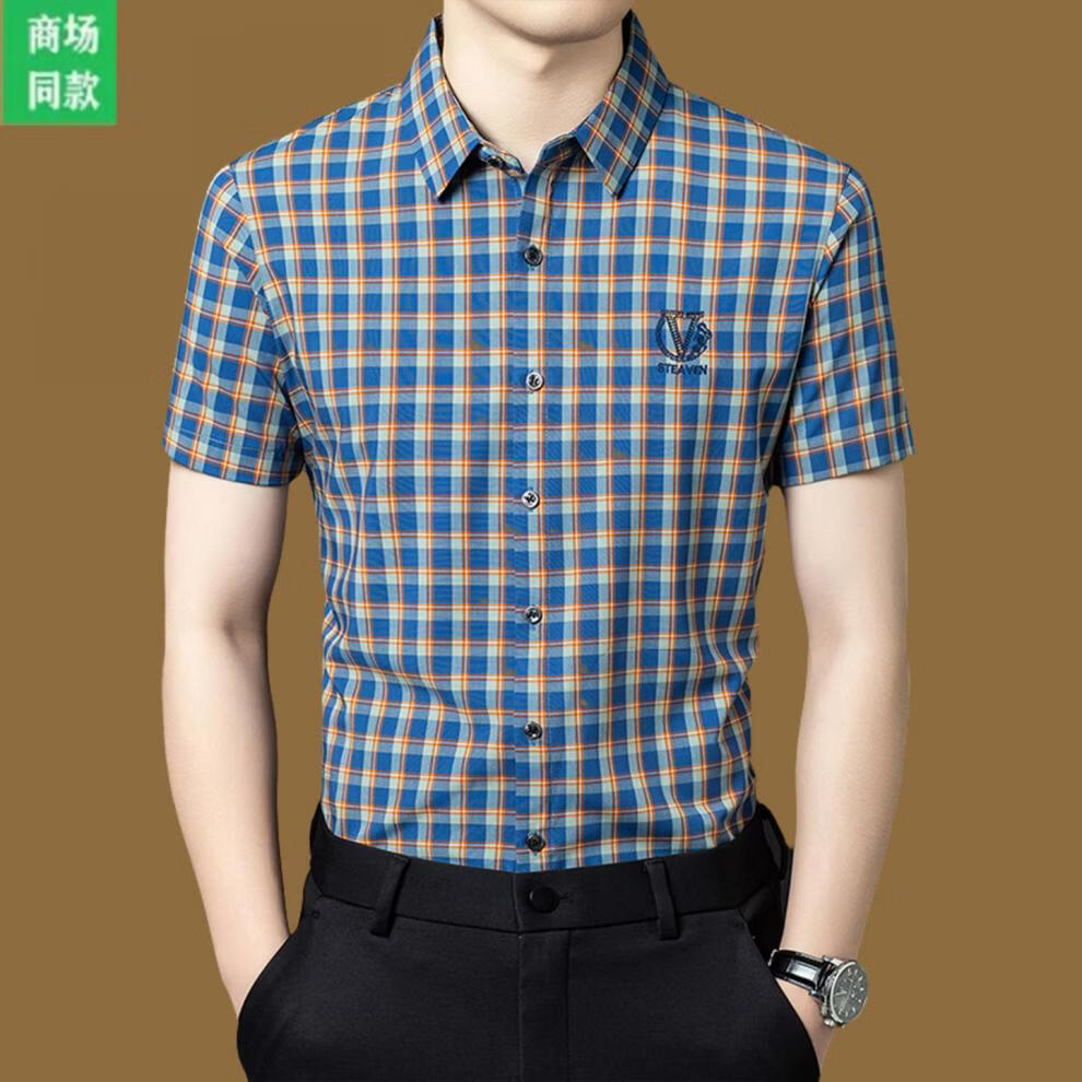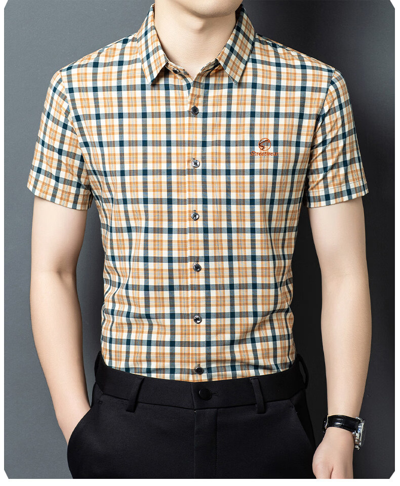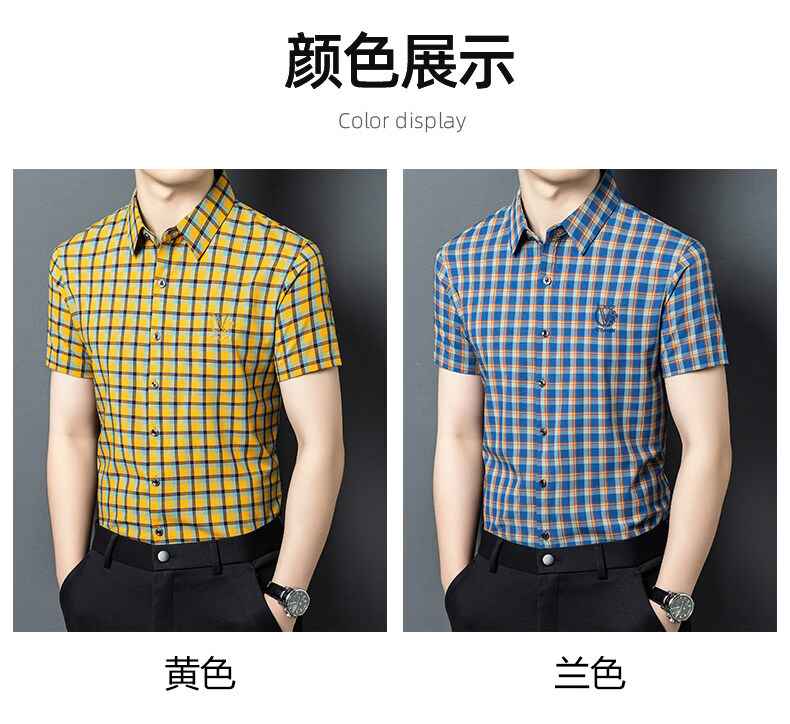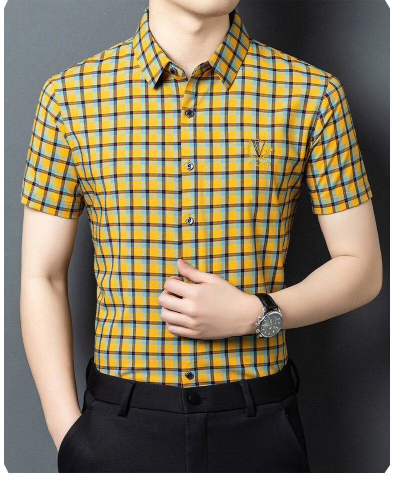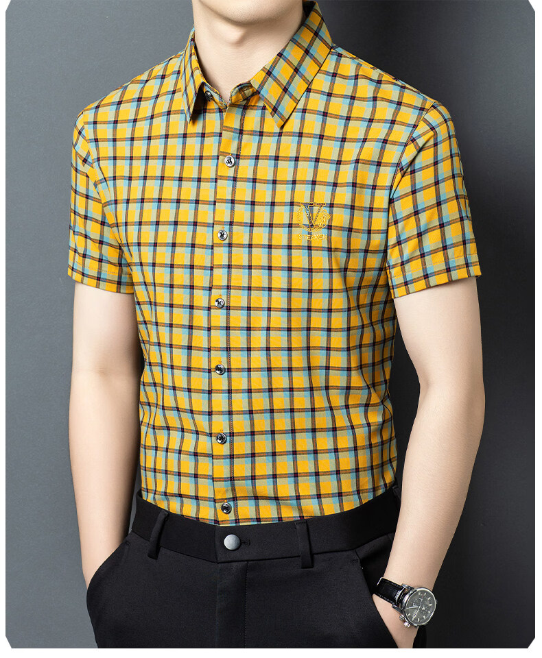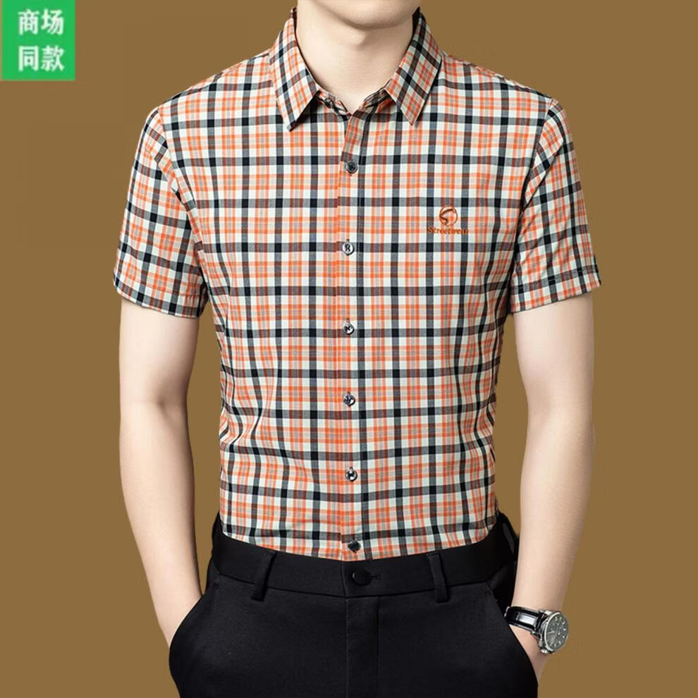 B PRORSUM巴宝莉男士商务休闲短袖格子衬衫翻领透气修身纯棉衬衣夏中青年时 十大奢侈品男装黄色 M 165__建议体重100-120斤