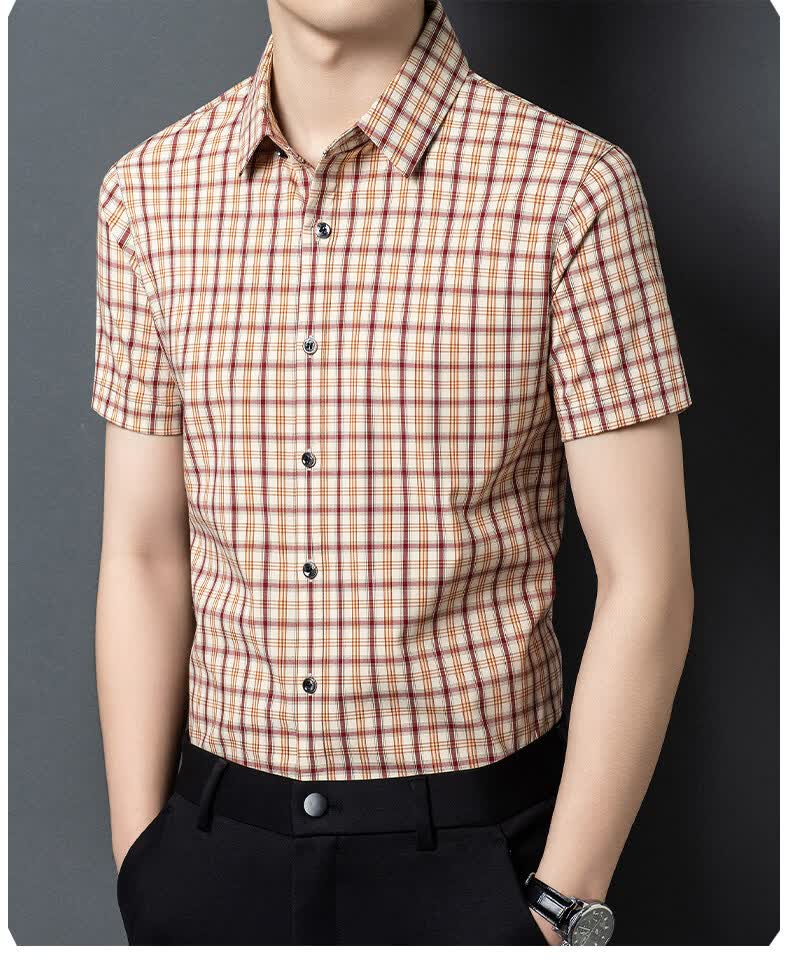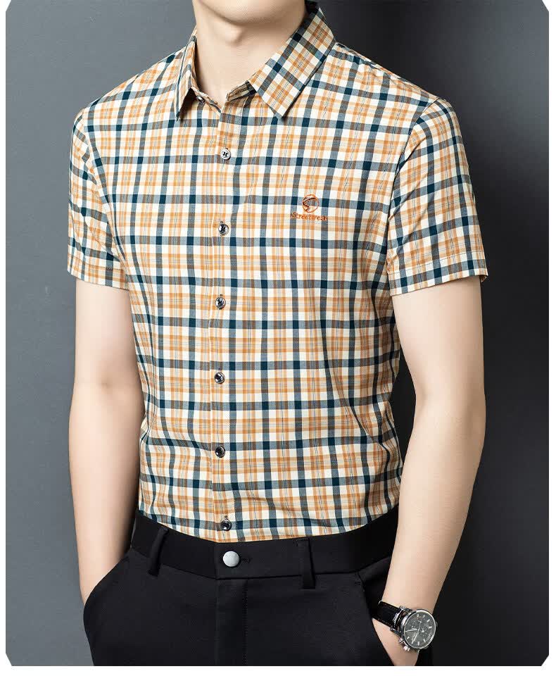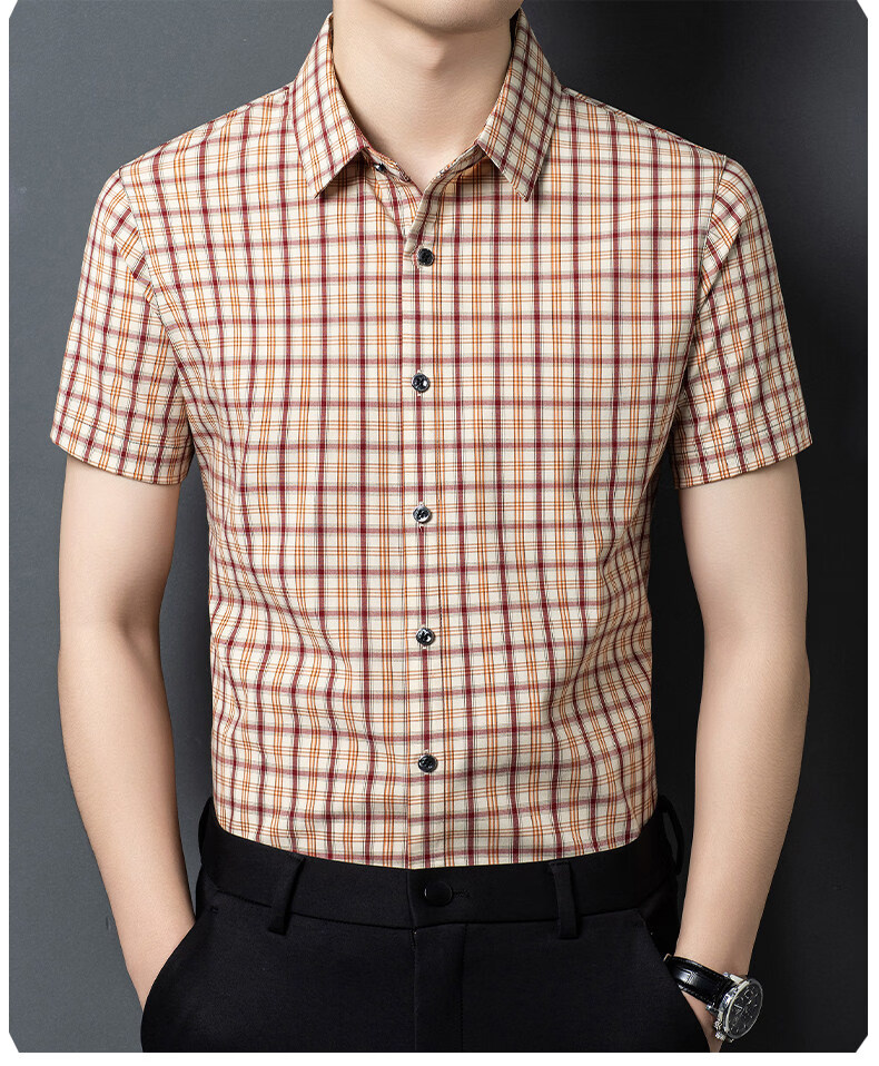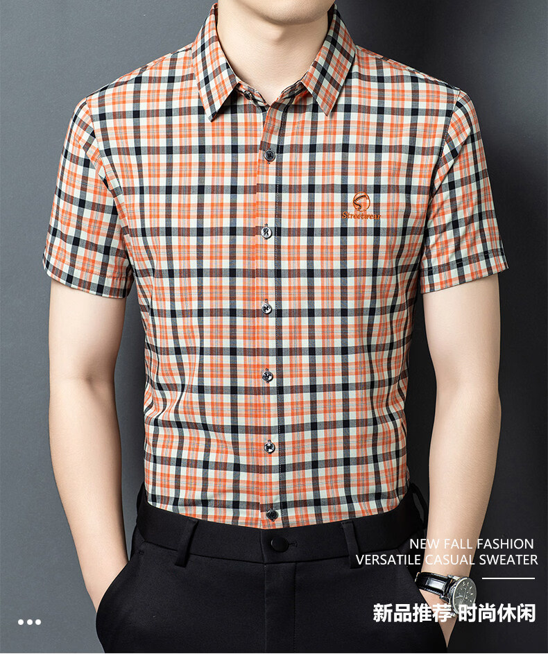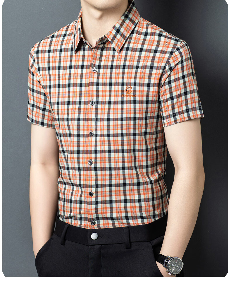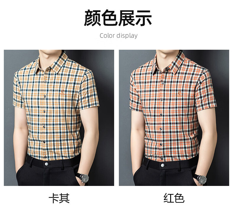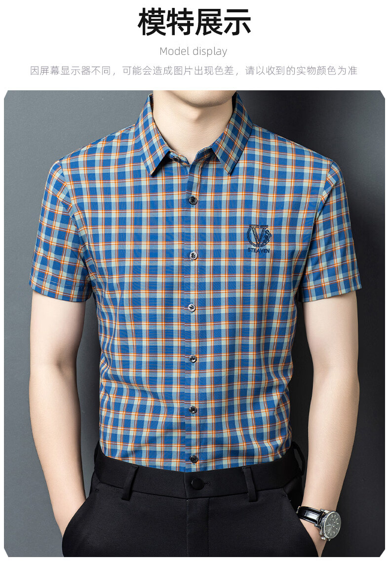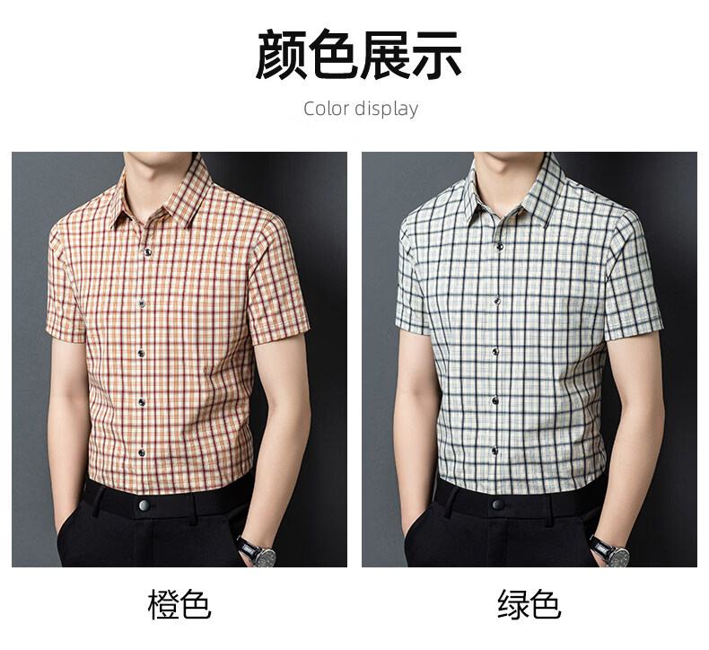 B PRORSUM巴宝莉男士商务休闲短袖格子衬衫翻领透气修身纯棉衬衣夏中青年时 十大奢侈品男装黄色 M 165__建议体重100-120斤