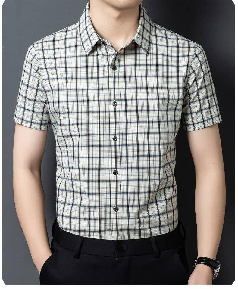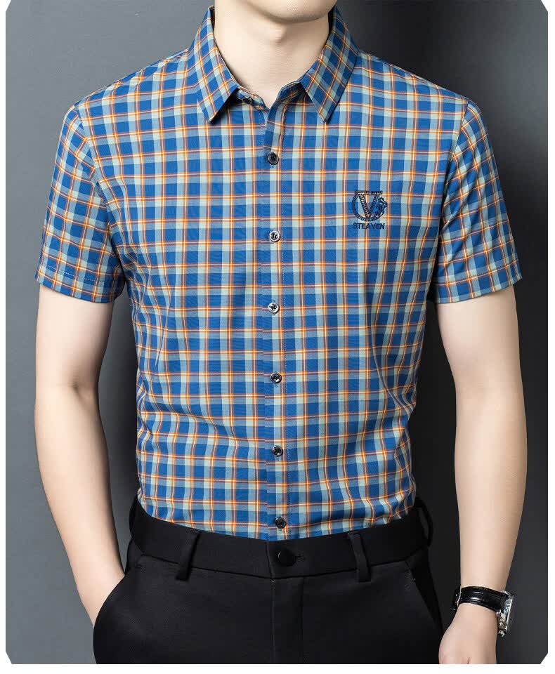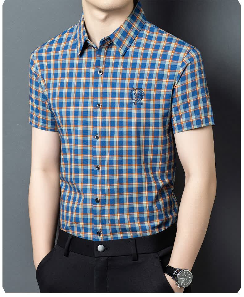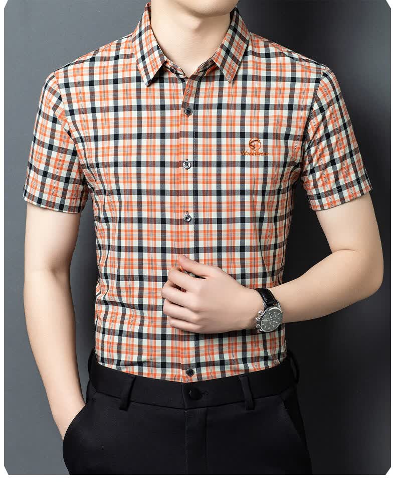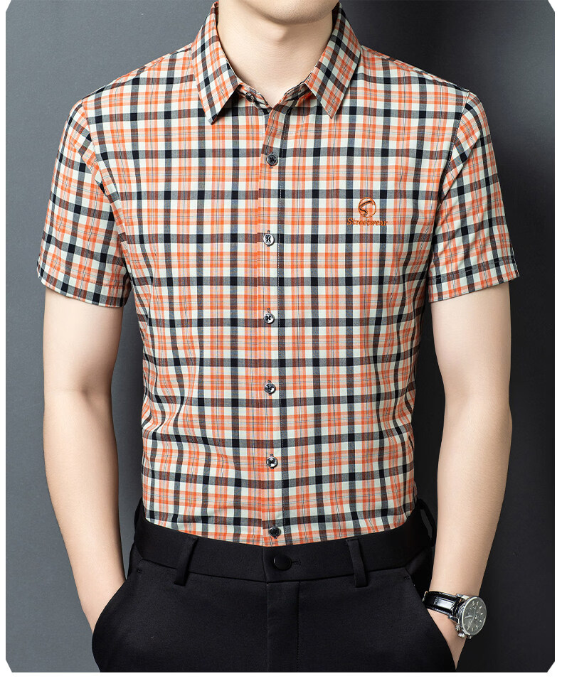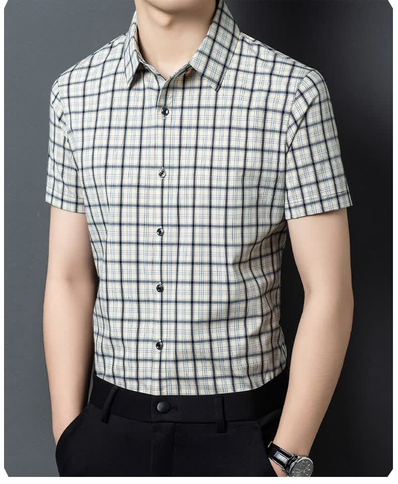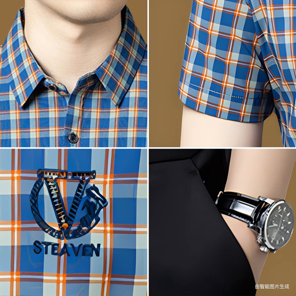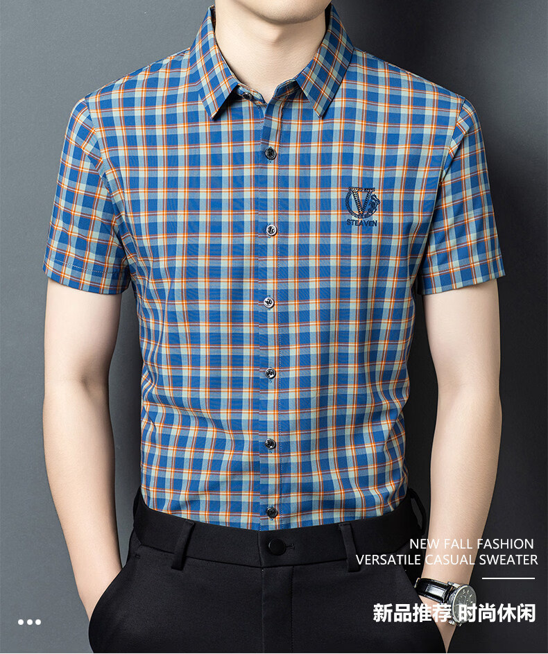 B PRORSUM巴宝莉男士商务休闲短袖格子衬衫翻领透气修身纯棉衬衣夏中青年时 十大奢侈品男装黄色 M 165__建议体重100-120斤