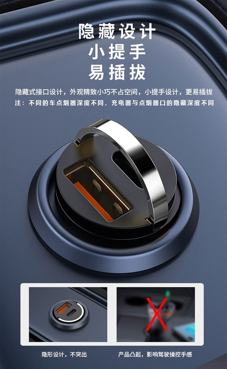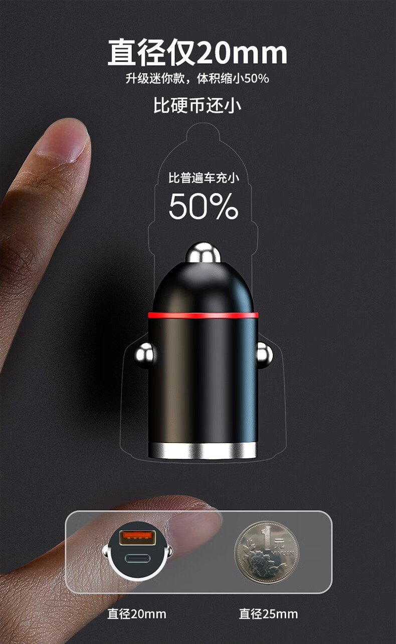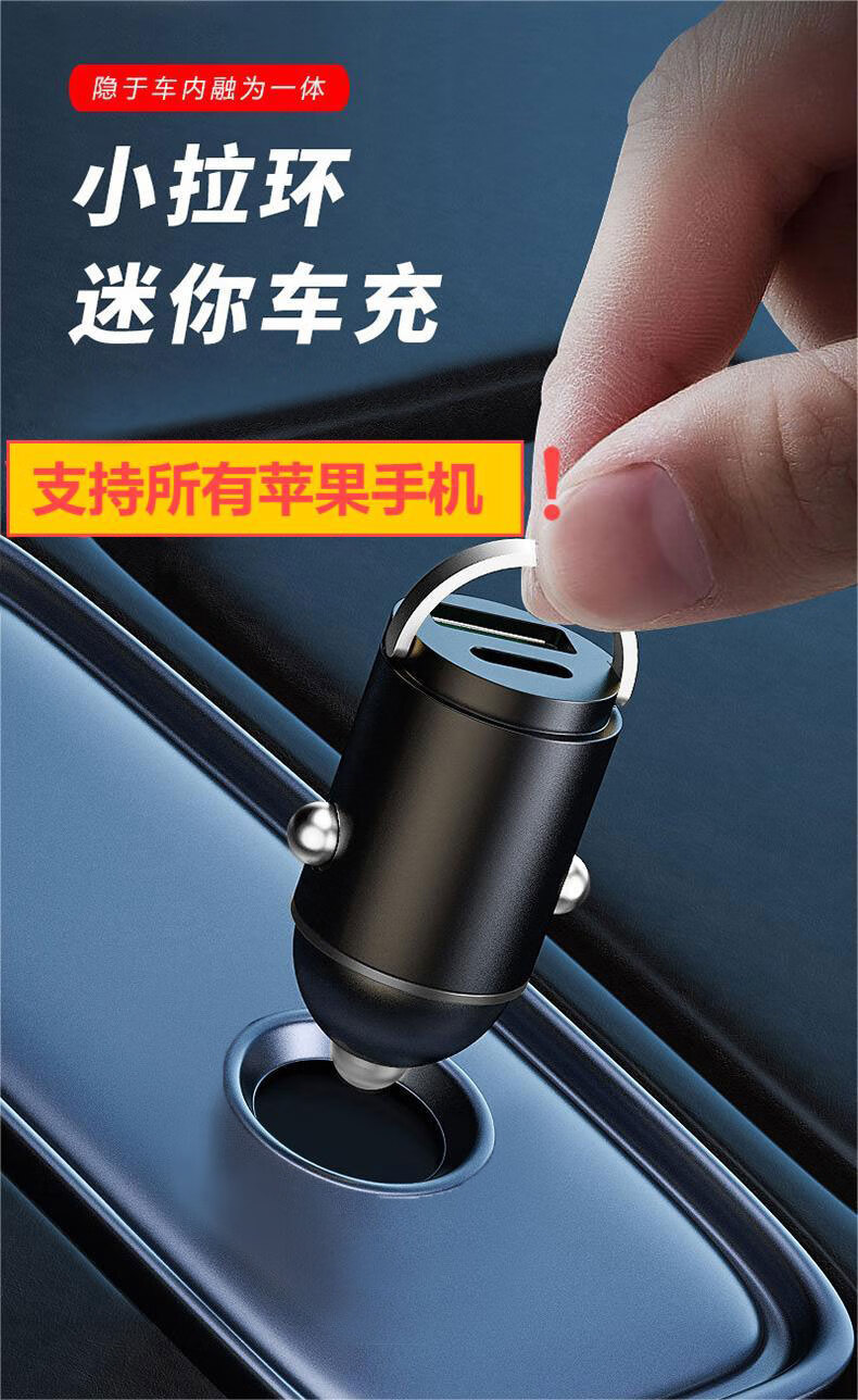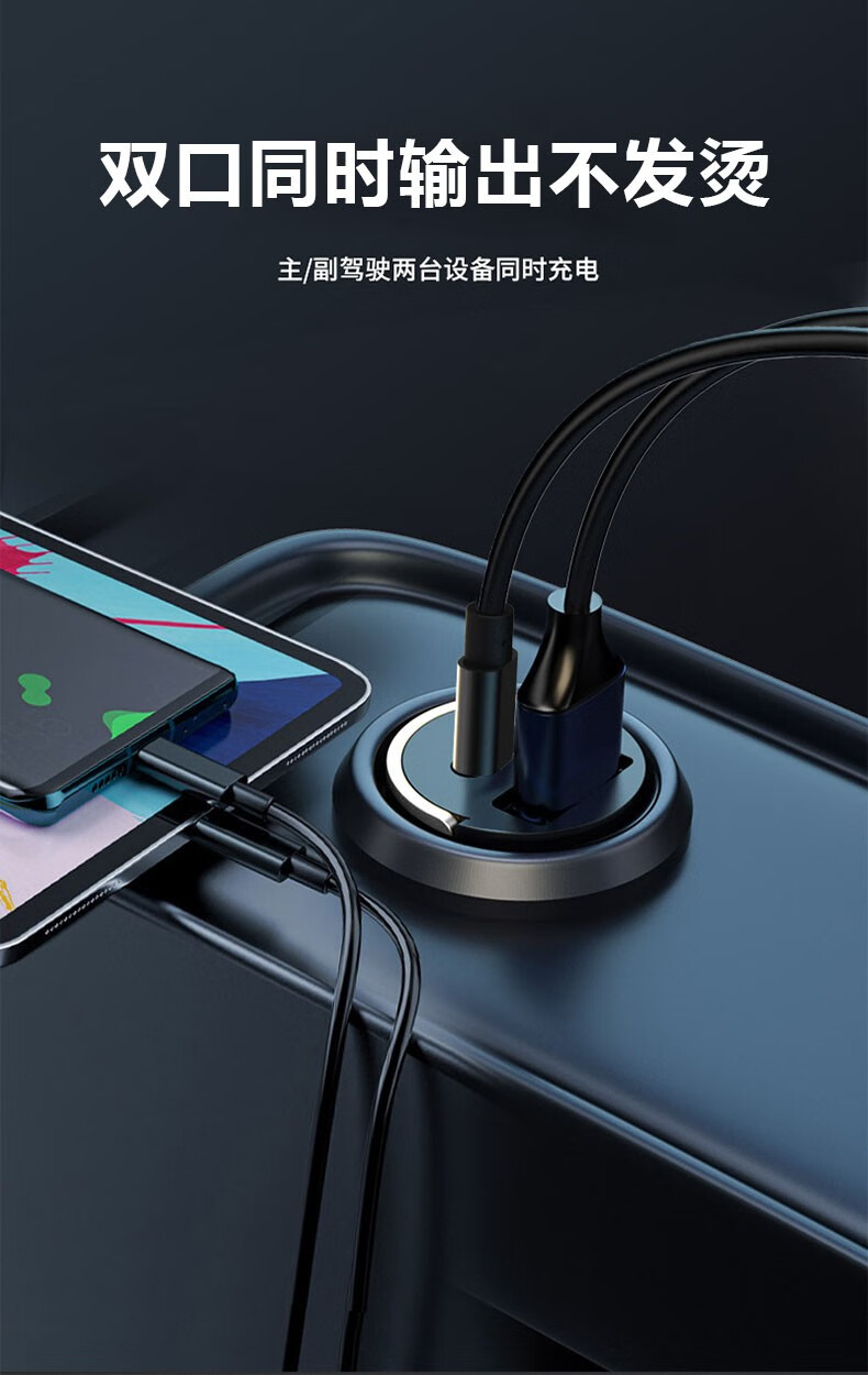 纽曼【精选好物】 车载充电器100W迷你快充闪充一拖二汽车点烟器转换 迷你拉环隐藏式