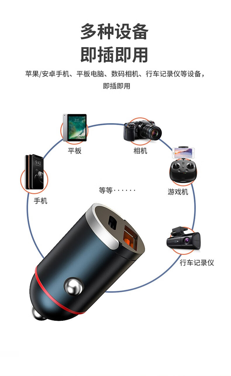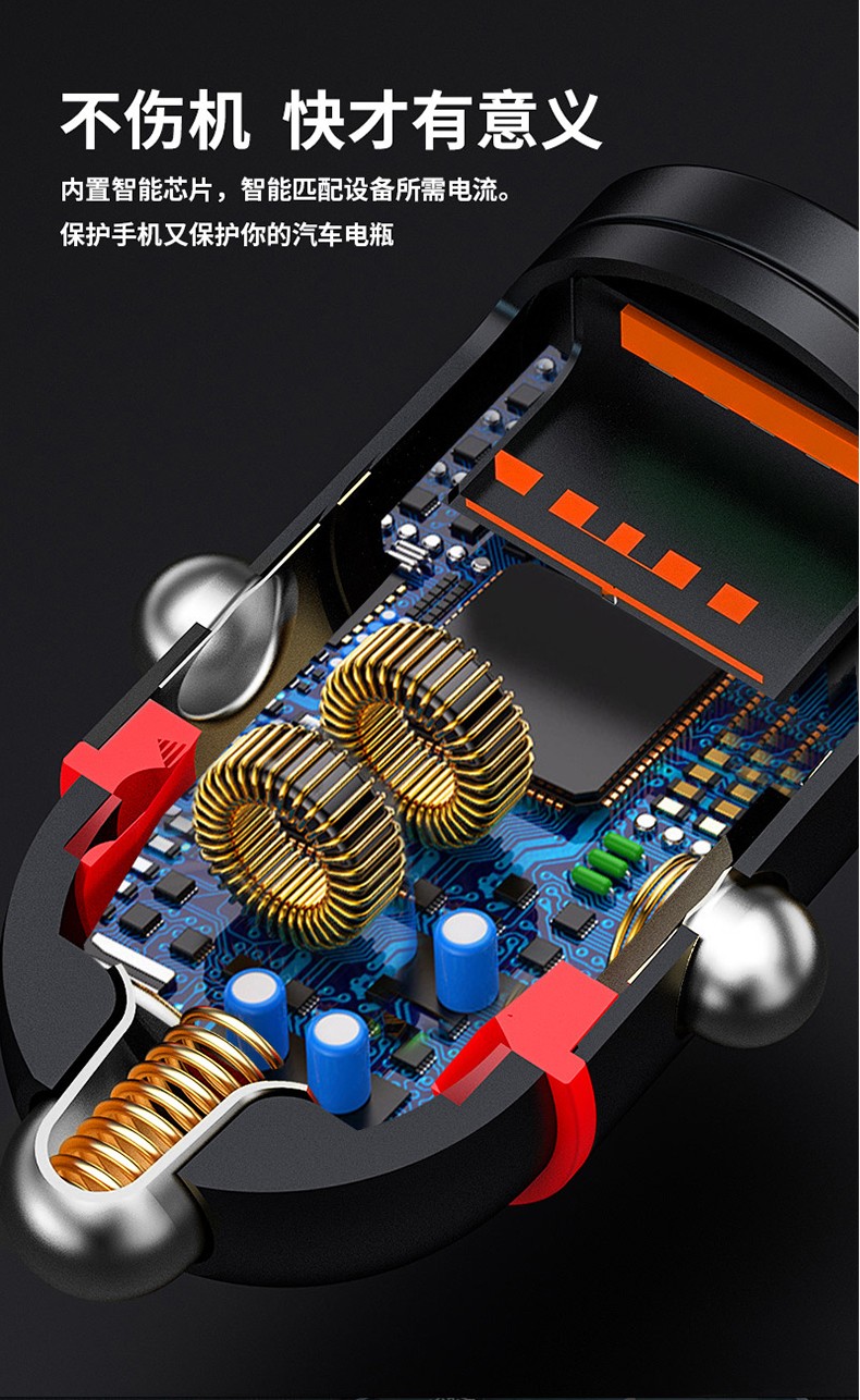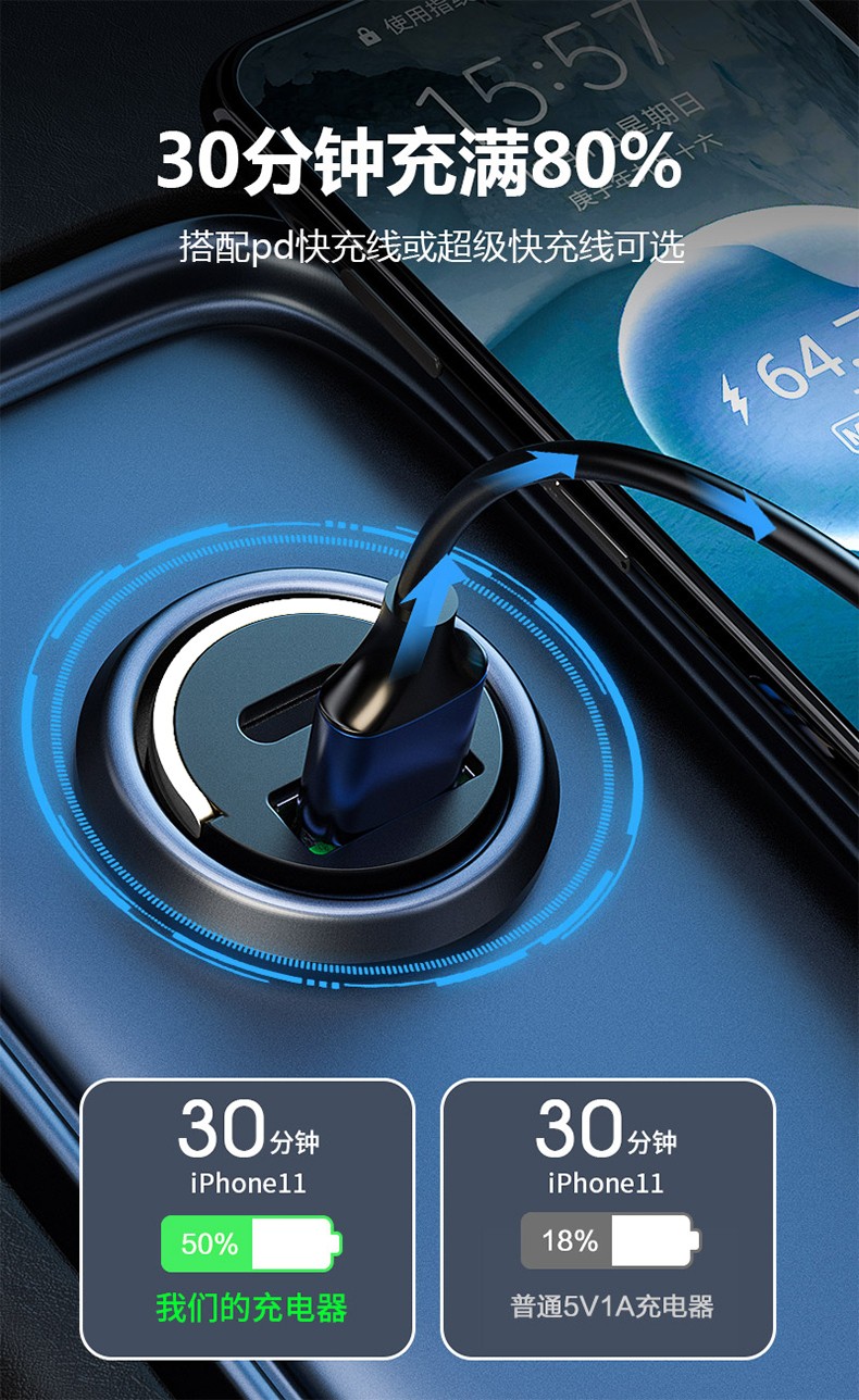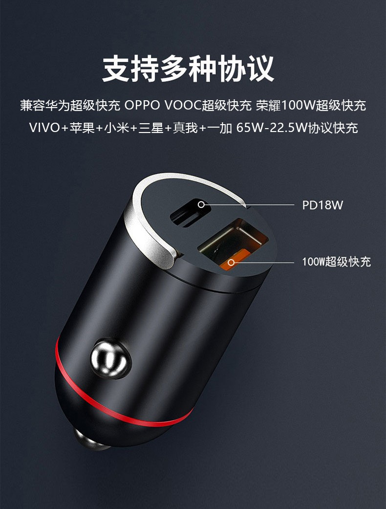纽曼【精选好物】 车载充电器100W迷你快充闪充一拖二汽车点烟器转换 迷你拉环隐藏式