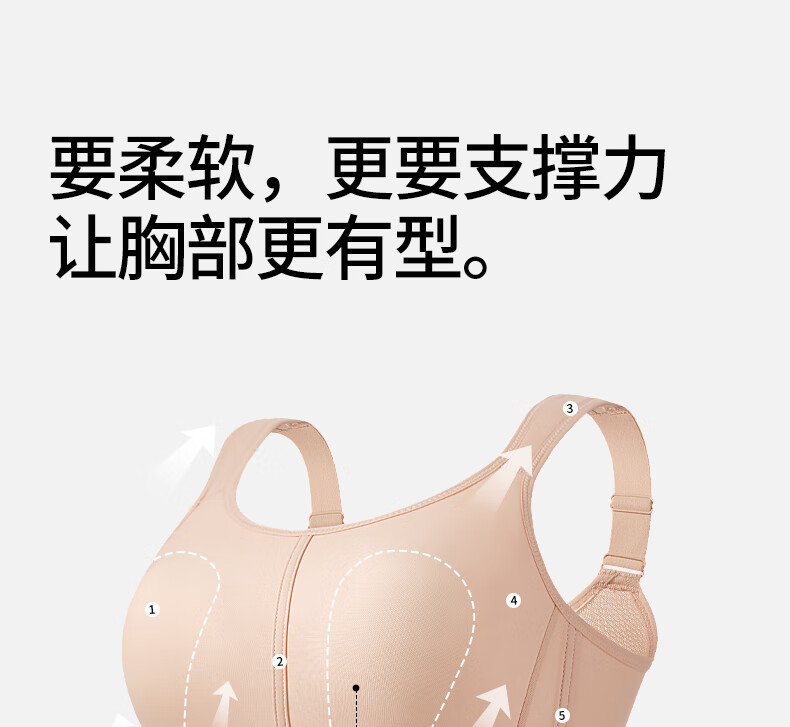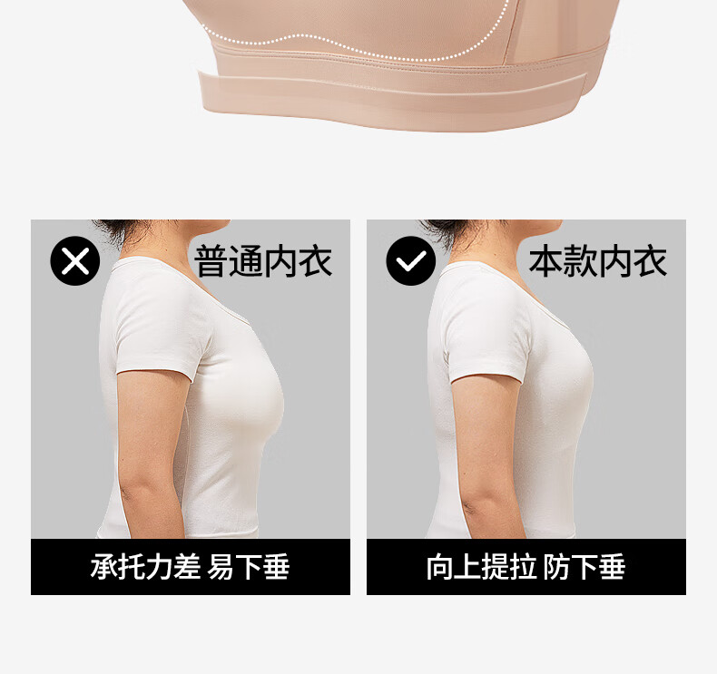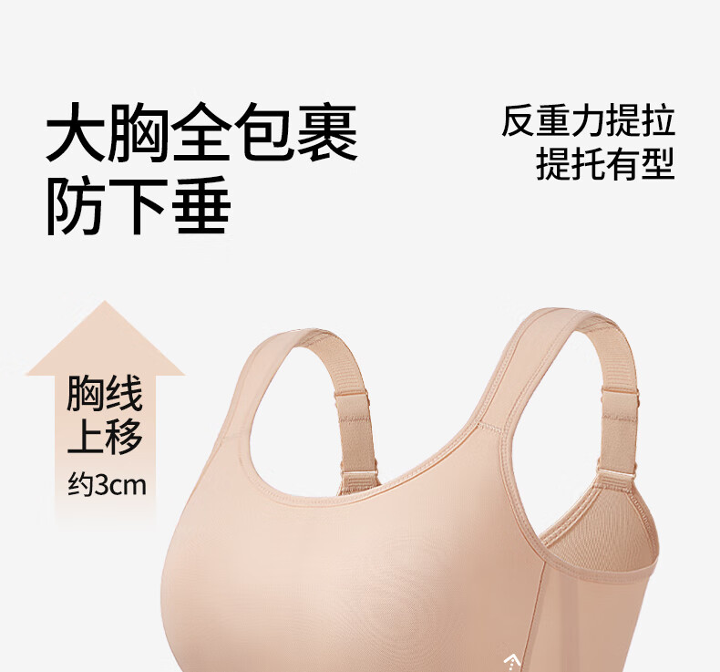 千奈美运动内衣提防震薄款无痕大胸显小收副乳文胸 自然肤 95E F