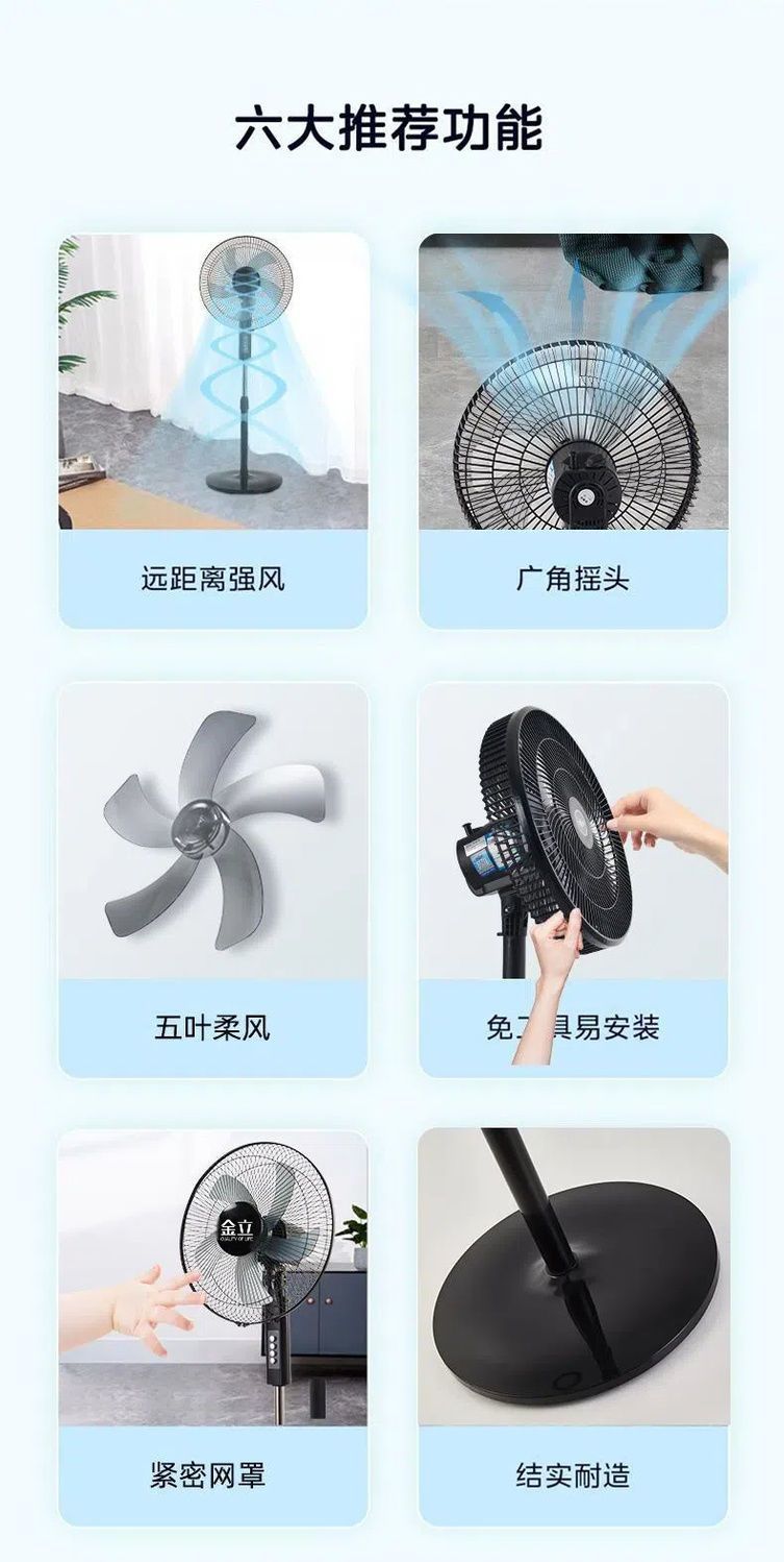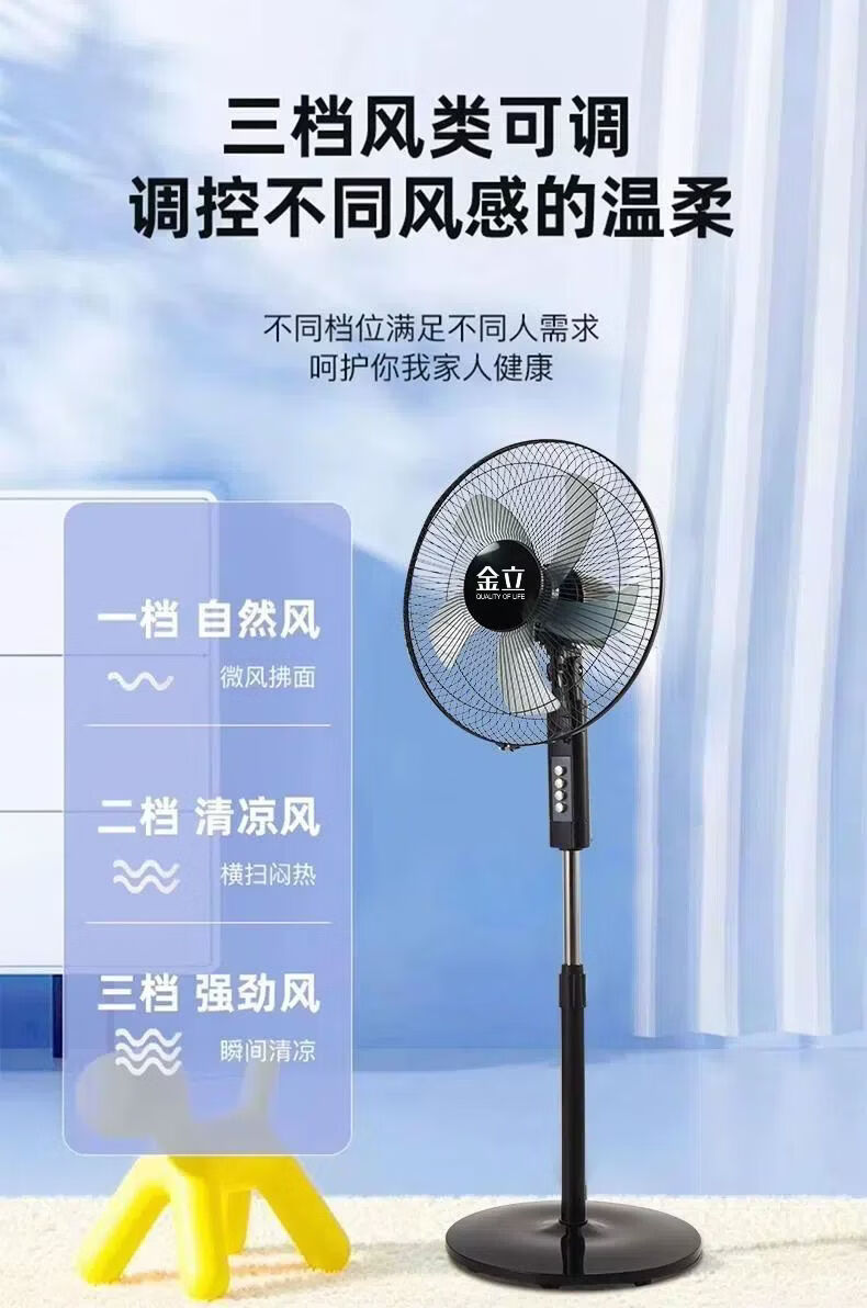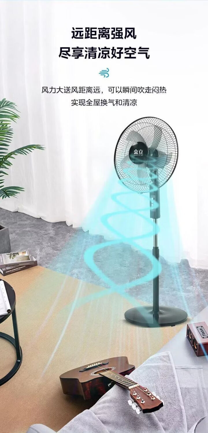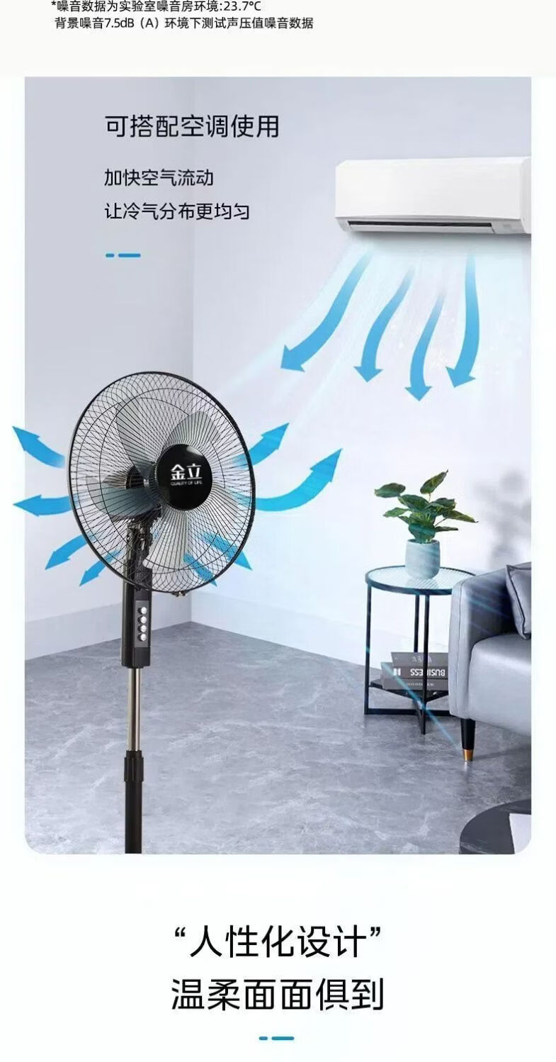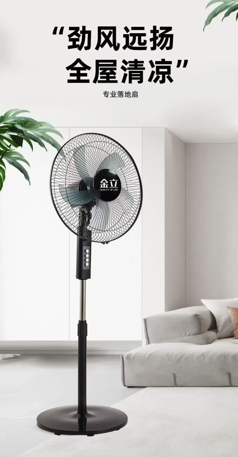金立电风扇落地扇静音家用立式强力台式宿舍摇头节能风力电扇家庭风扇 16寸精选大五叶【3米线-注水盘】