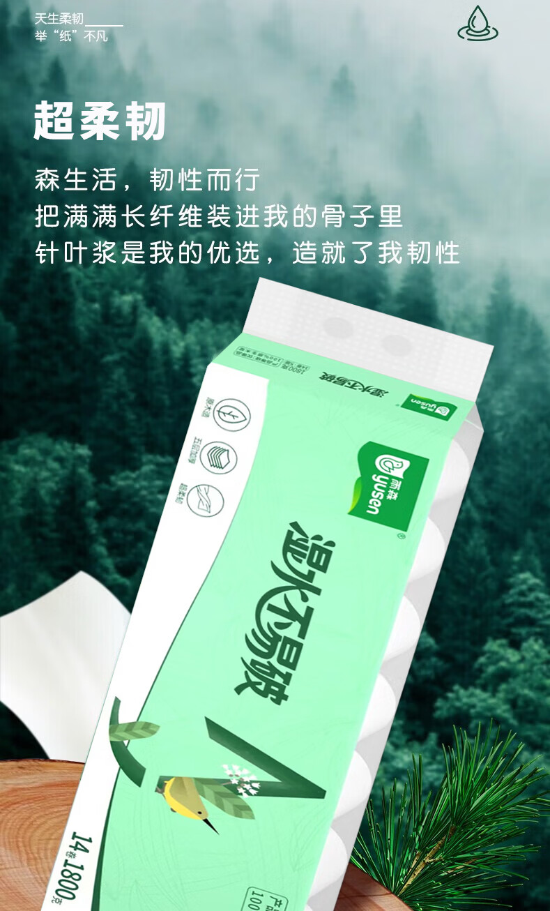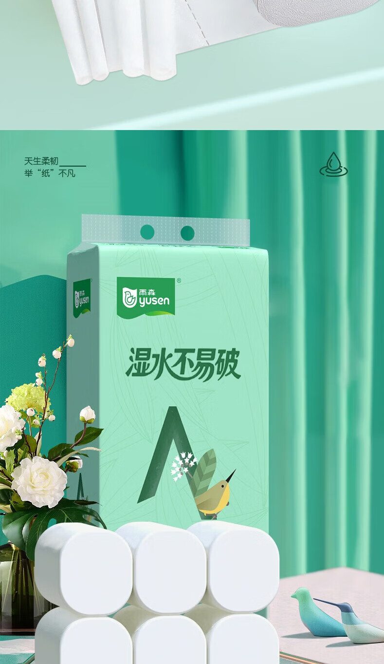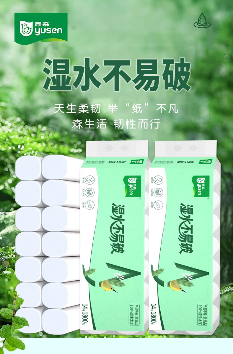 雨森(YUSEN)卷纸湿水不易破 原生木浆卫生纸 家用纸巾 加大加厚1800g 5层纸 5层 128g/卷*42卷