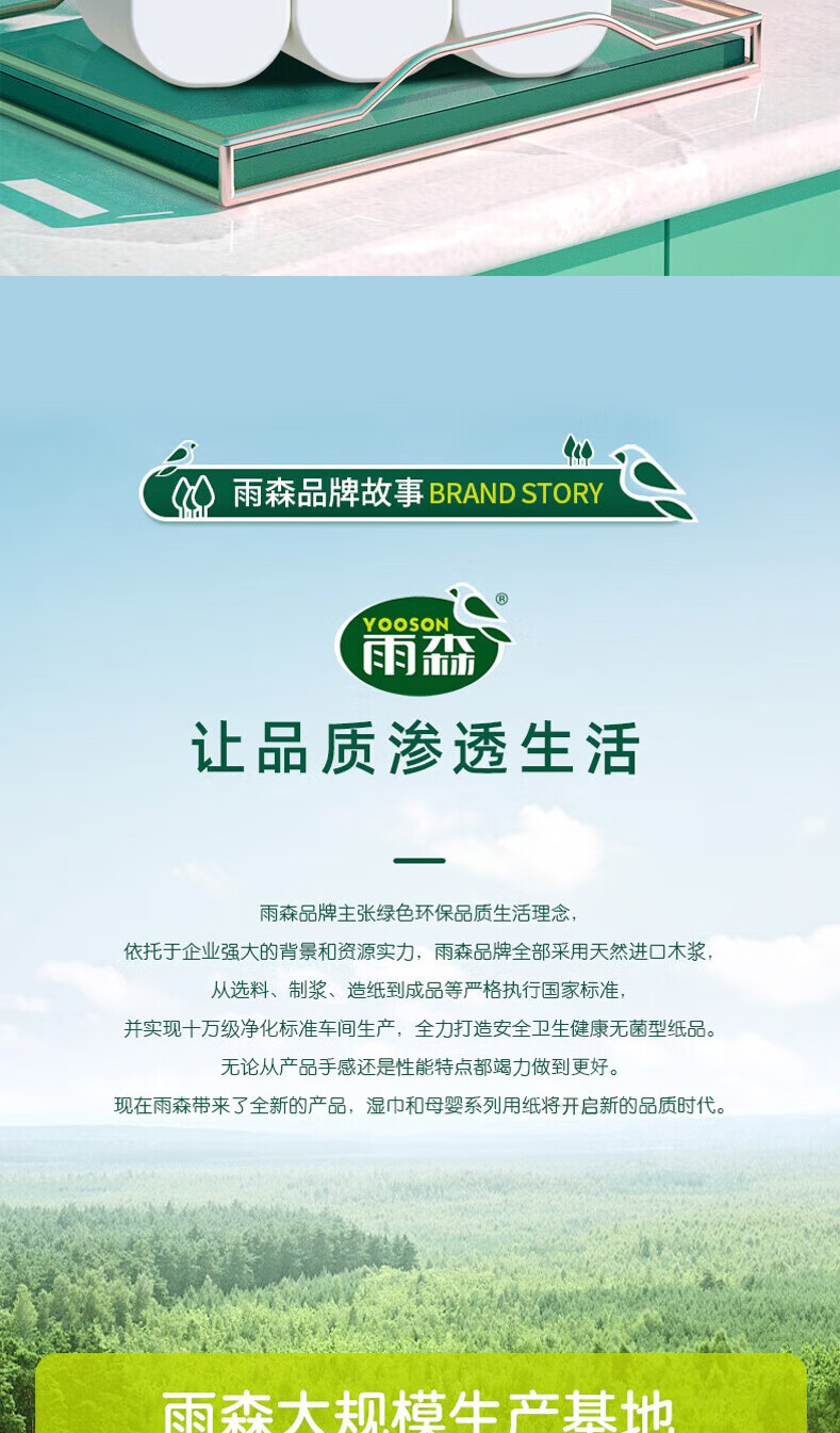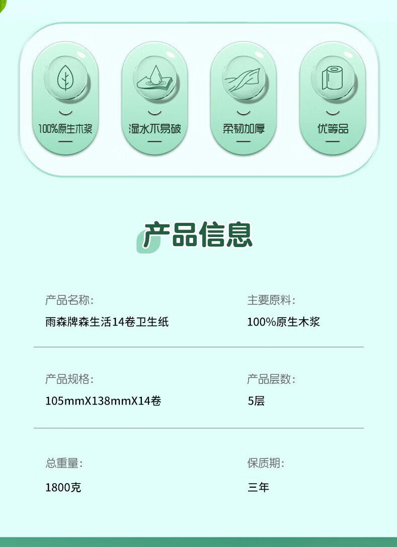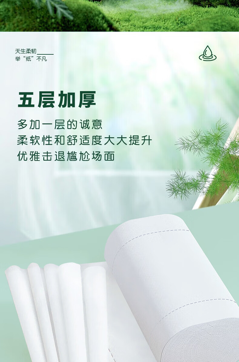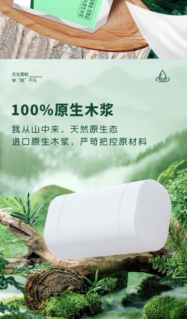 雨森(YUSEN)卷纸湿水不易破 原生木浆卫生纸 家用纸巾 加大加厚1800g 5层纸 5层 128g/卷*42卷