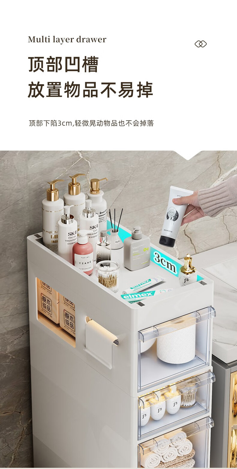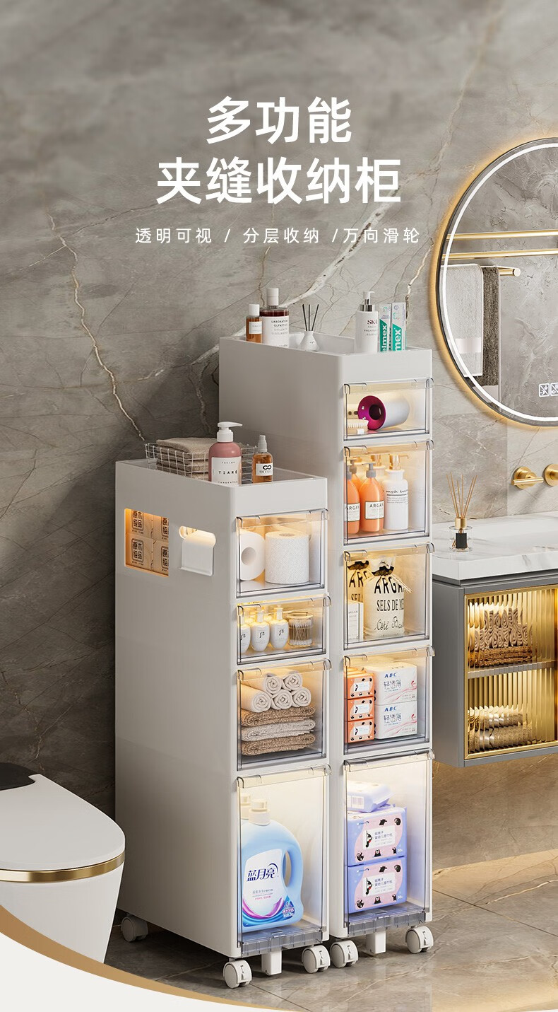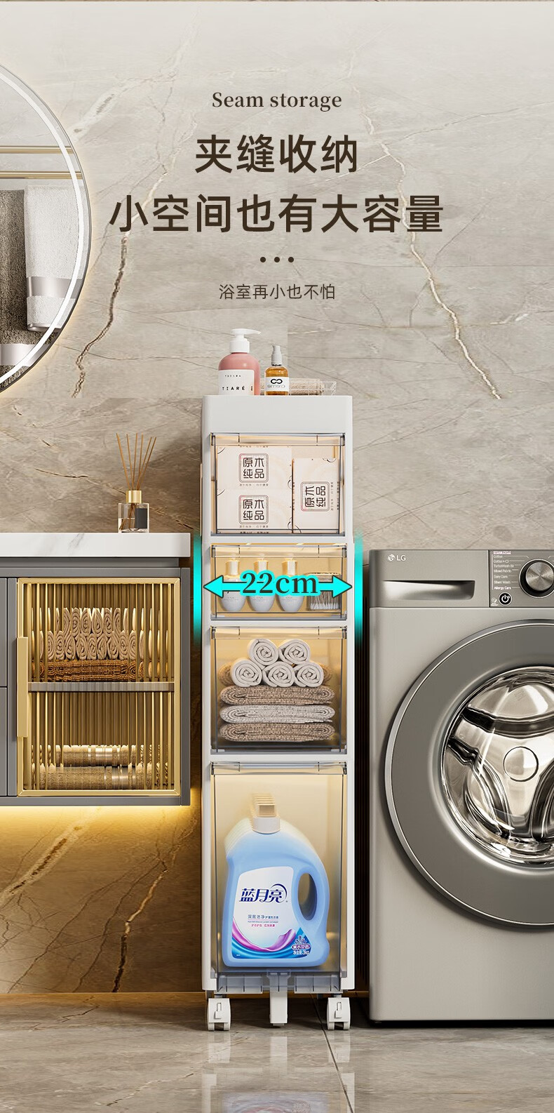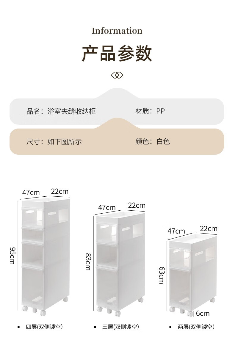 JEKO&JEKO浴室置物架卫生间落地防水夹缝收纳柜窄柜置物柜厕所马桶边柜侧柜 面宽22cm【带滑轮+两侧可抽纸】 2层