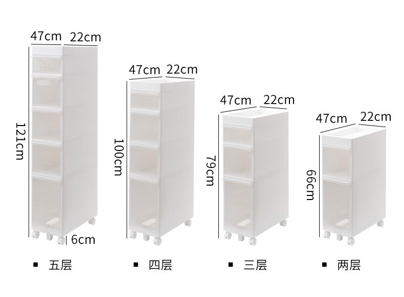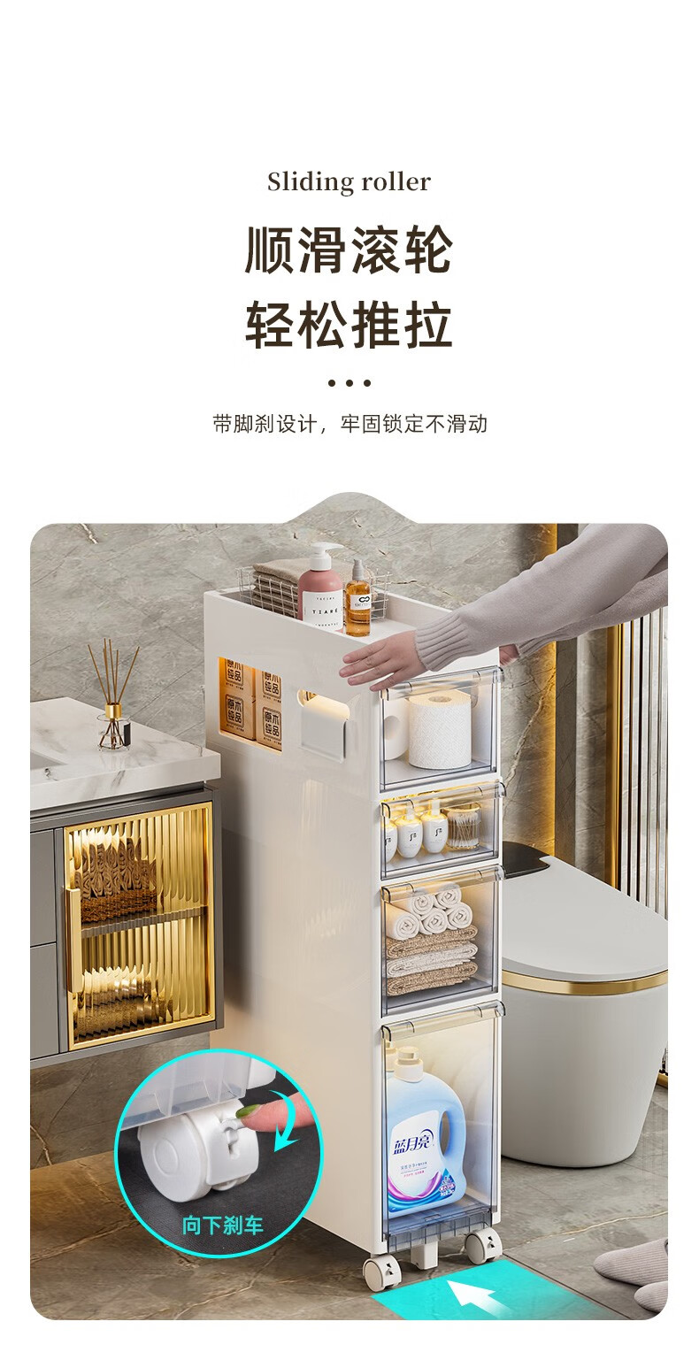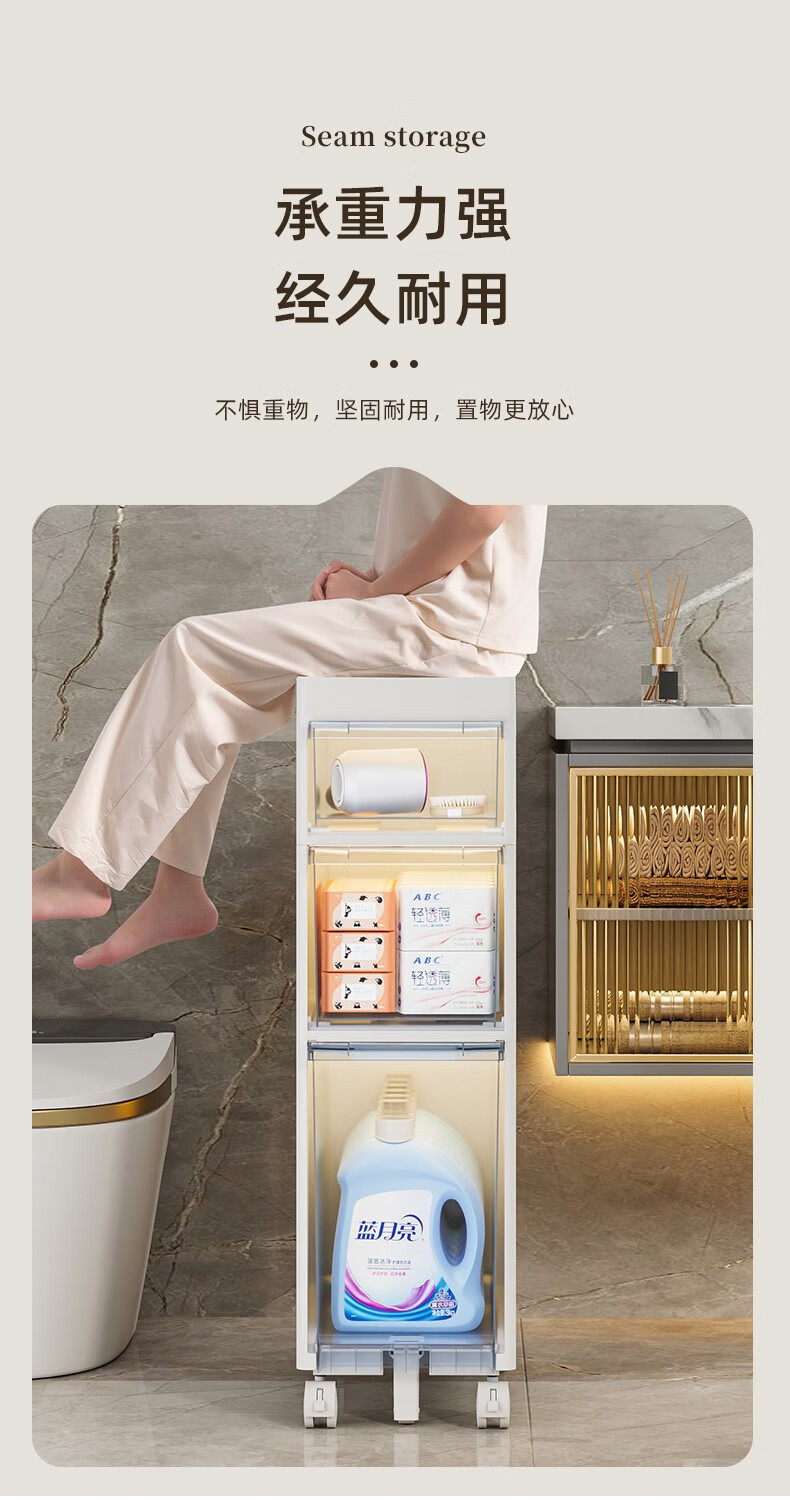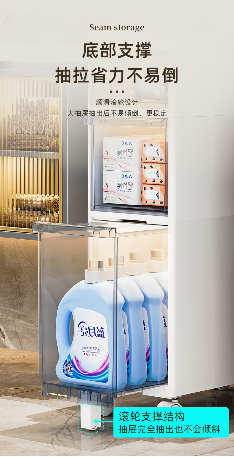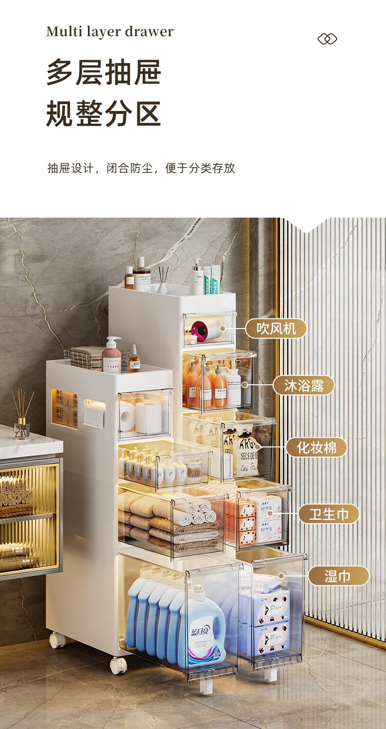 JEKO&JEKO浴室置物架卫生间落地防水夹缝收纳柜窄柜置物柜厕所马桶边柜侧柜 面宽22cm【带滑轮+两侧可抽纸】 2层