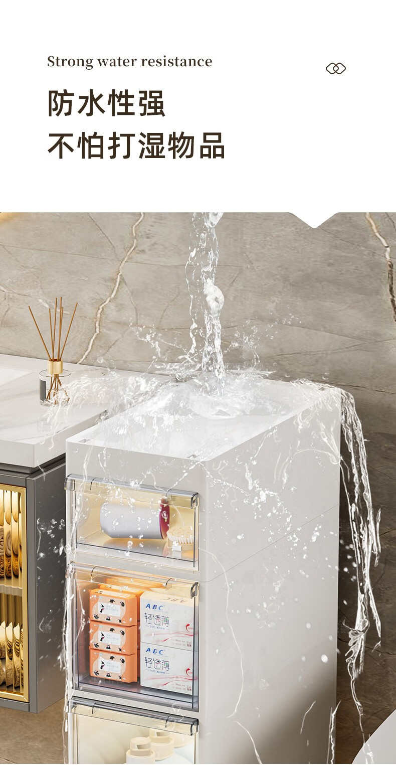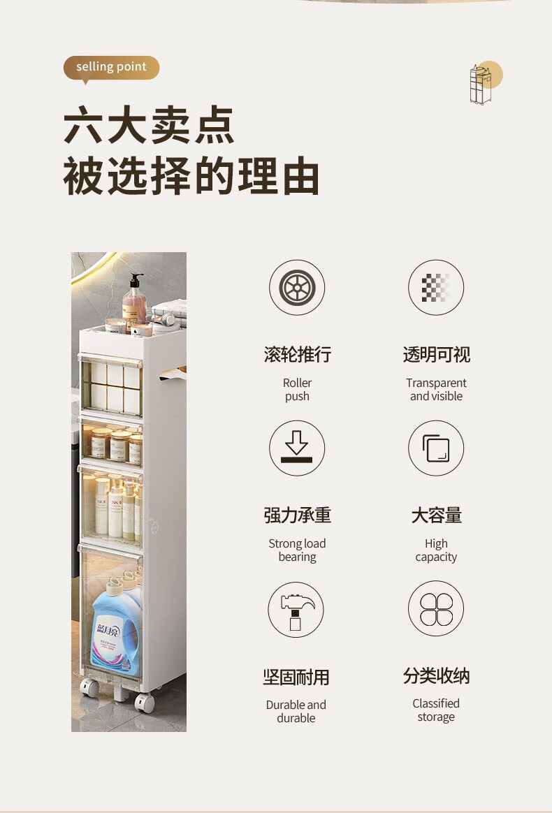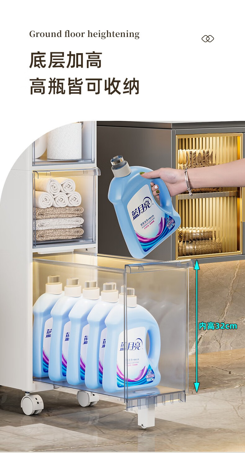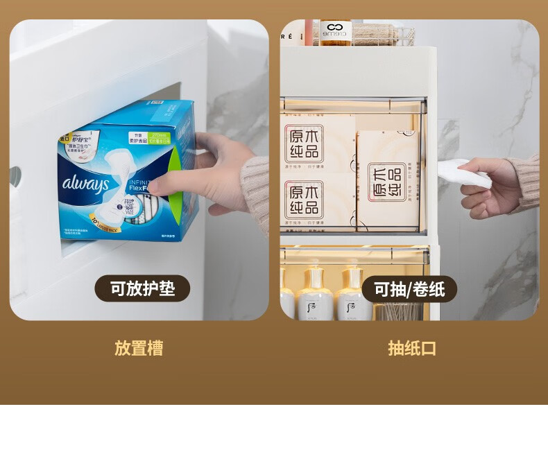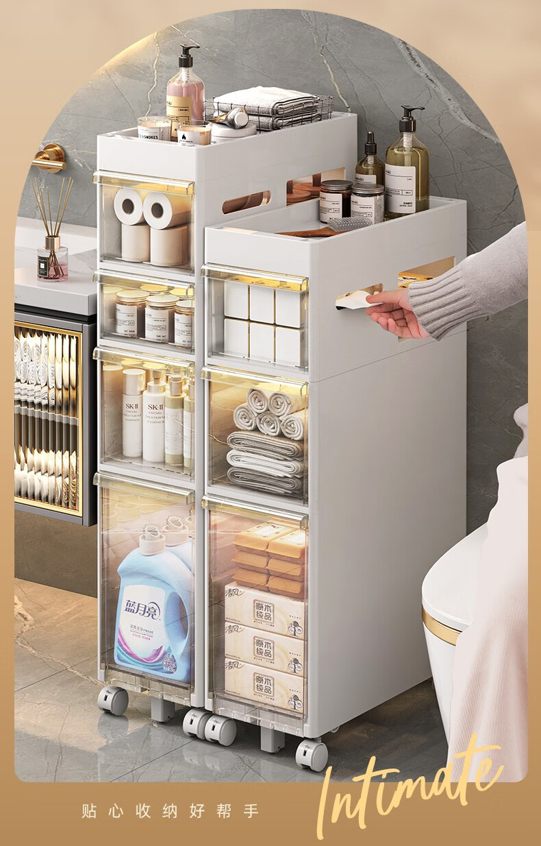 JEKO&JEKO浴室置物架卫生间落地防水夹缝收纳柜窄柜置物柜厕所马桶边柜侧柜 面宽22cm【带滑轮+两侧可抽纸】 2层