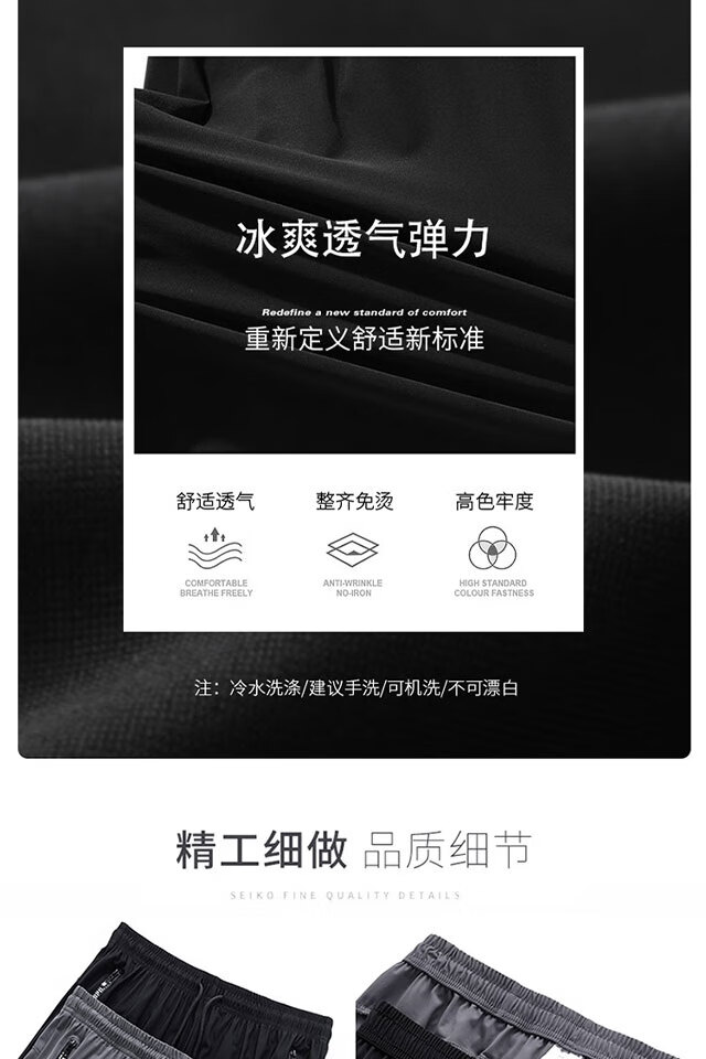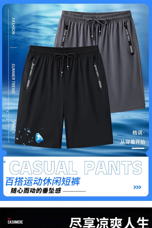啄木鸟(TUCANO)冰丝短裤男夏季新款休闲弹力五分裤青年运动宽松透气男士沙滩短裤 (2条装五分裤)黑+灰 2XL (重120-130斤高165-175)