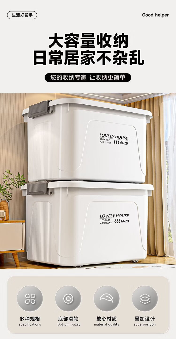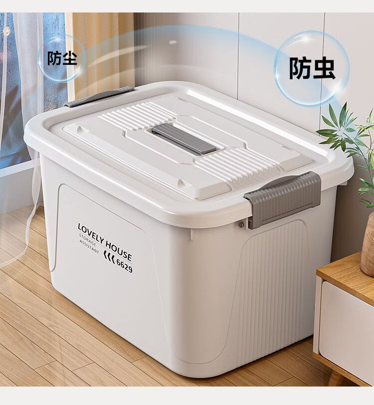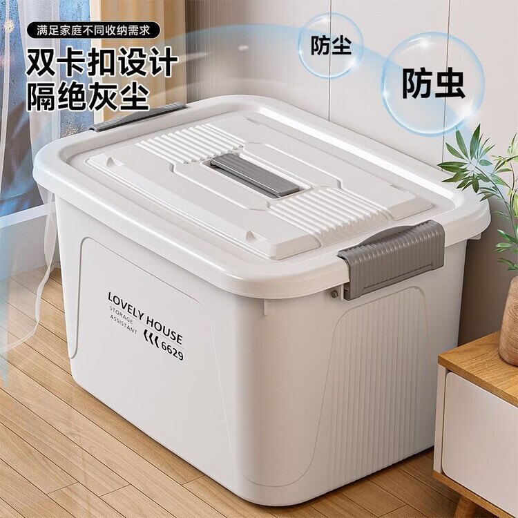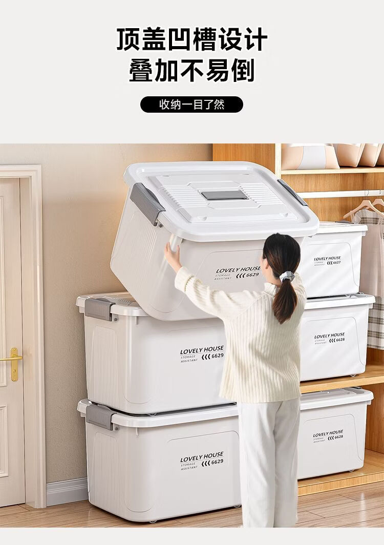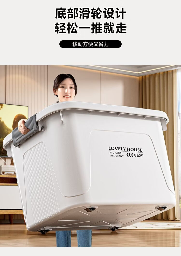 BEYZK加厚收纳箱多功能大容量带轮带盖防尘衣物被子储物箱车载整理箱 月光白【3个装】 巨无霸【70*52*42cm】加厚材质