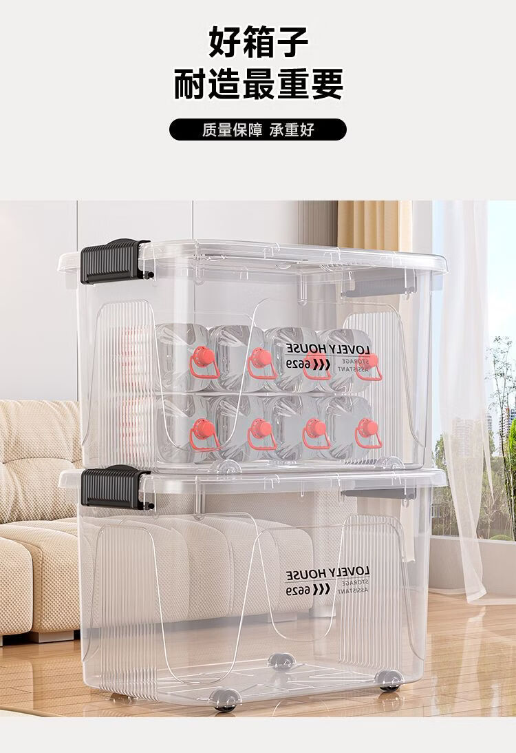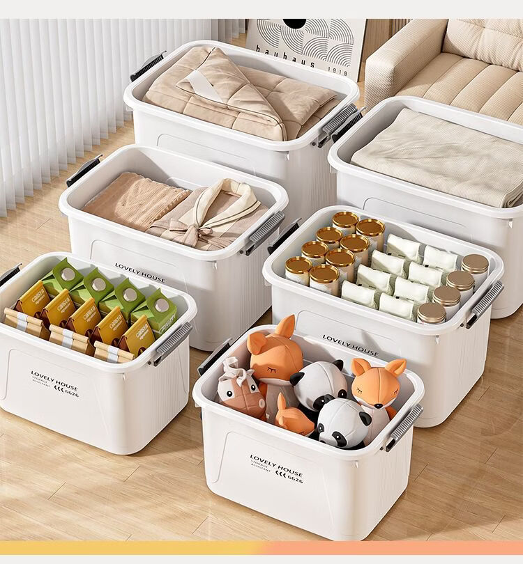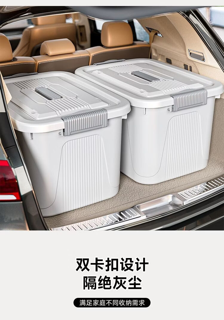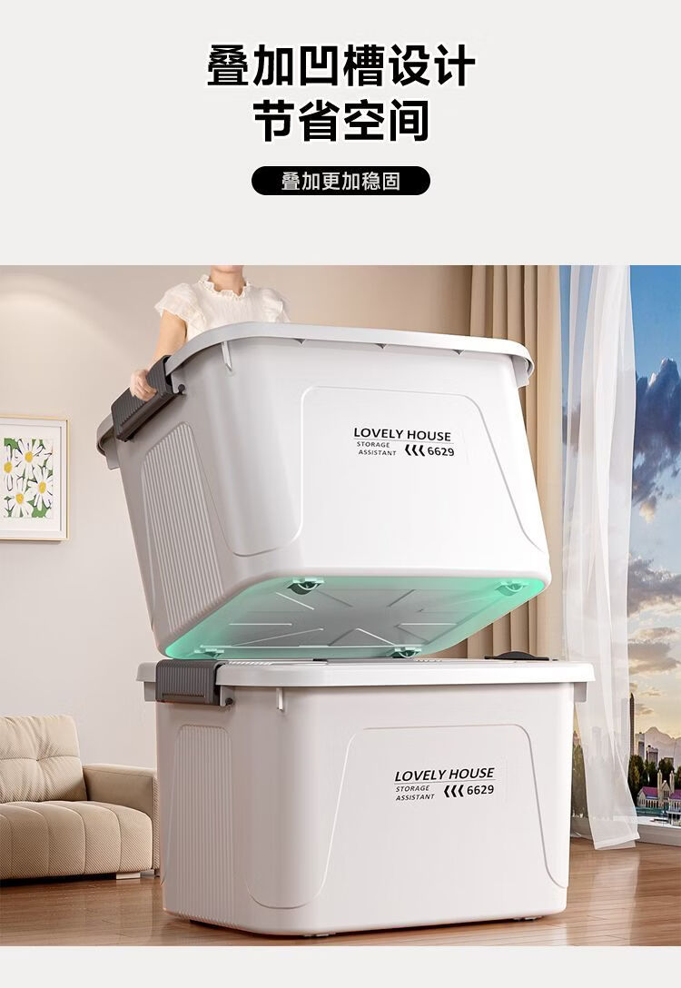 BEYZK加厚收纳箱多功能大容量带轮带盖防尘衣物被子储物箱车载整理箱 月光白【3个装】 巨无霸【70*52*42cm】加厚材质