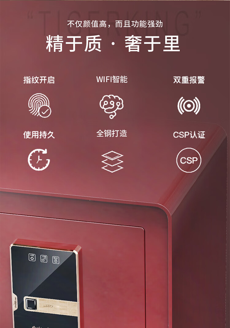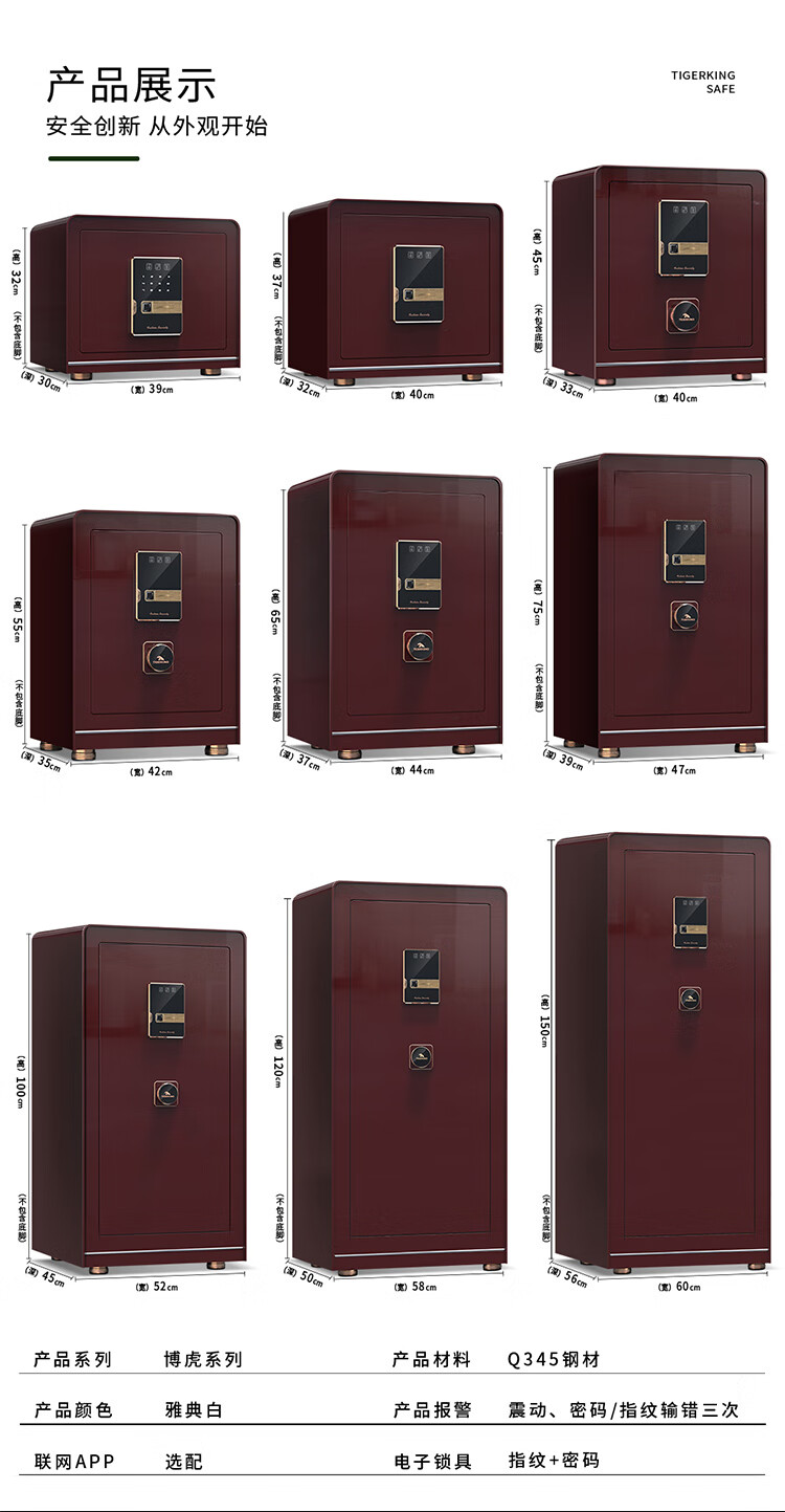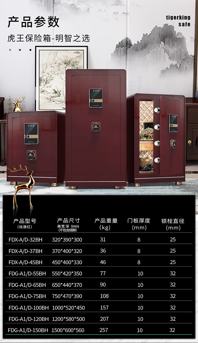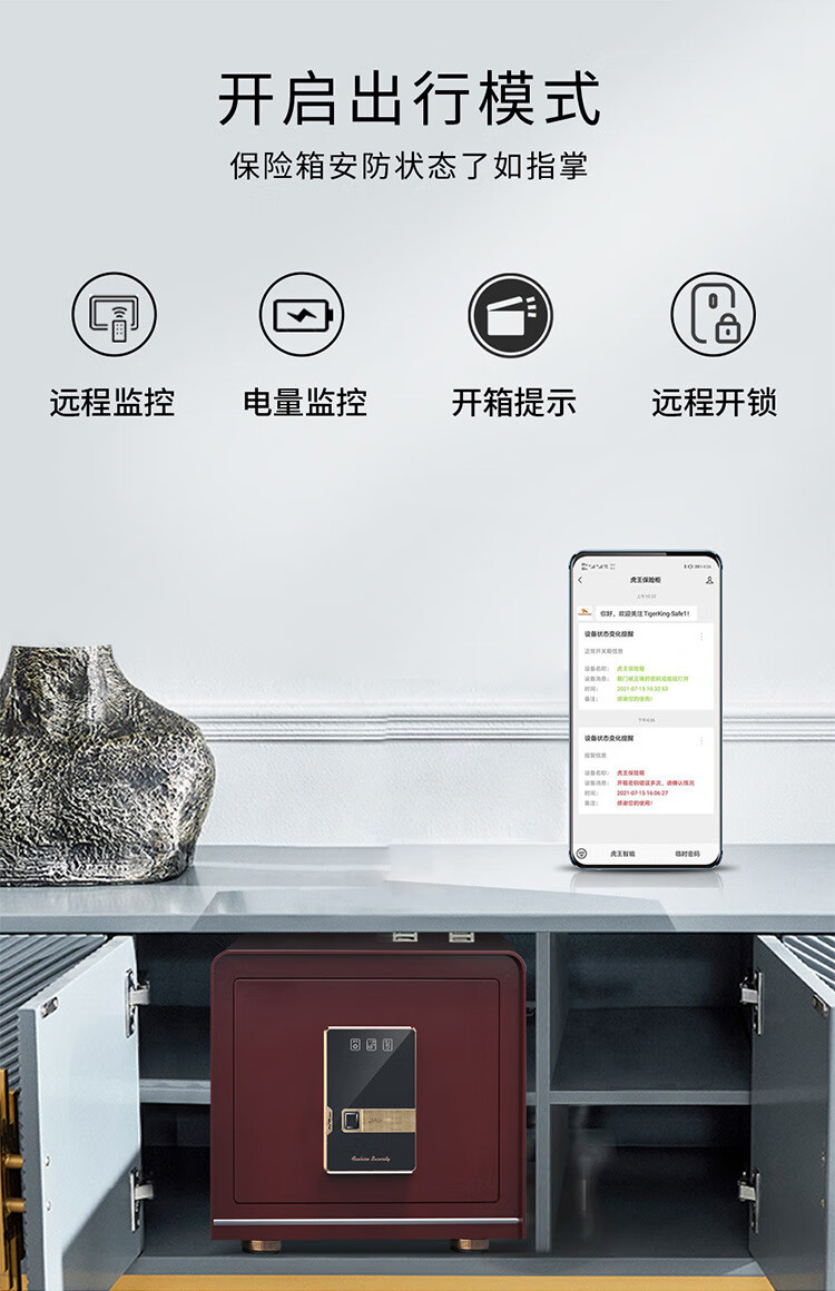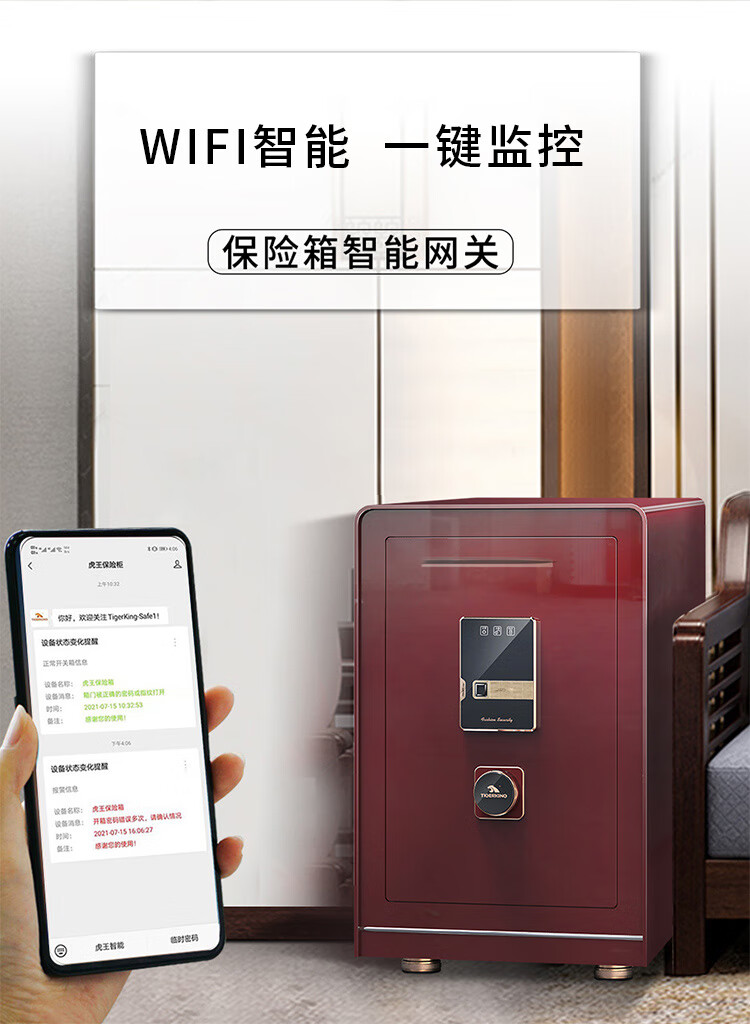 虎王博虎系列国标认证保险箱家用防盗全钢智能WiFi远程监控办公室保险柜防盗防搬走 【国标认证-远程监控】150cm炫酒红