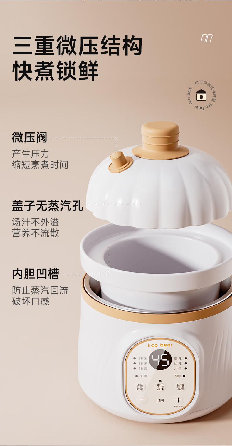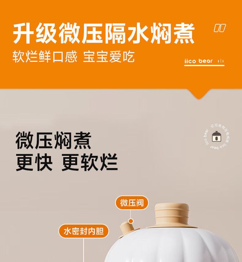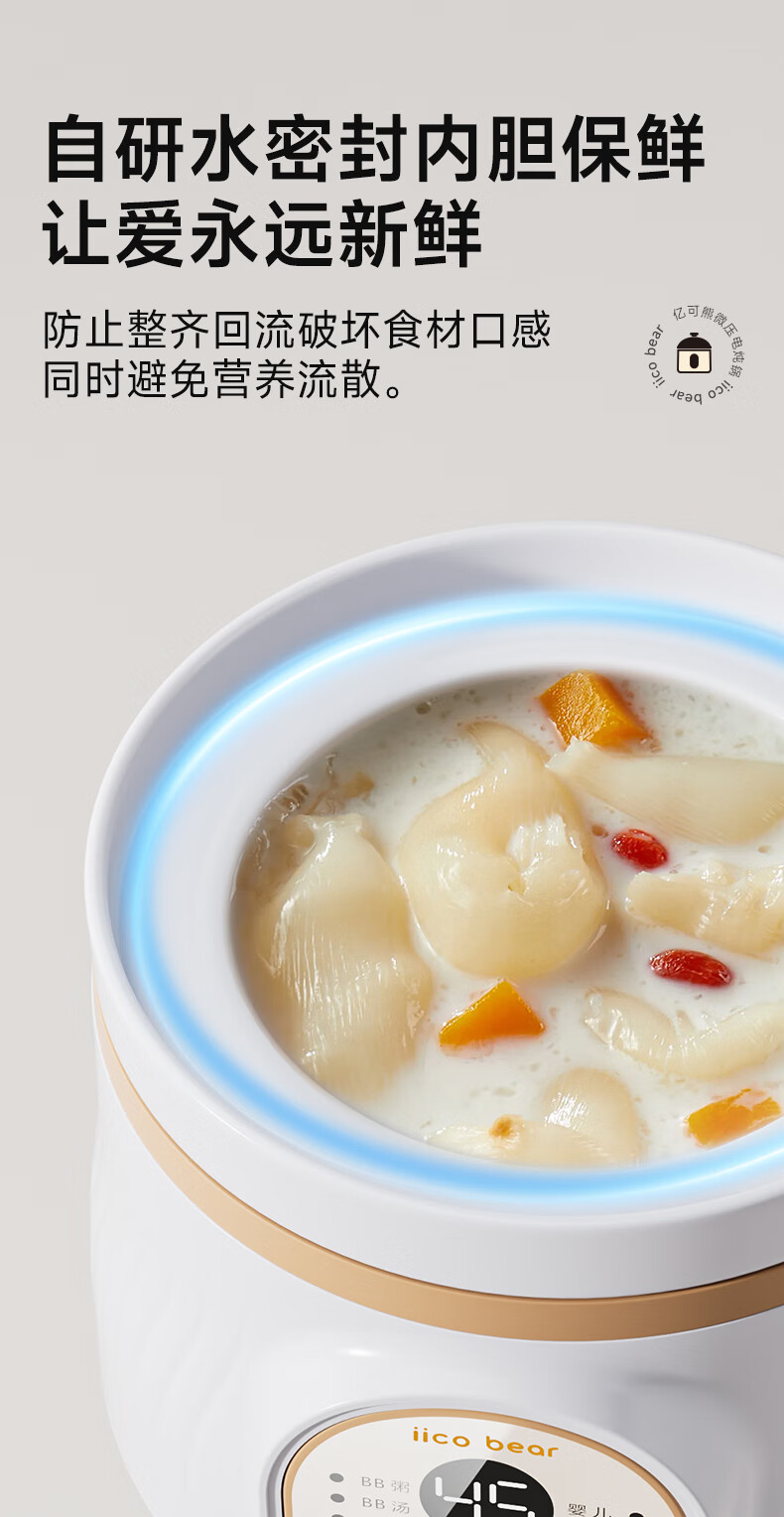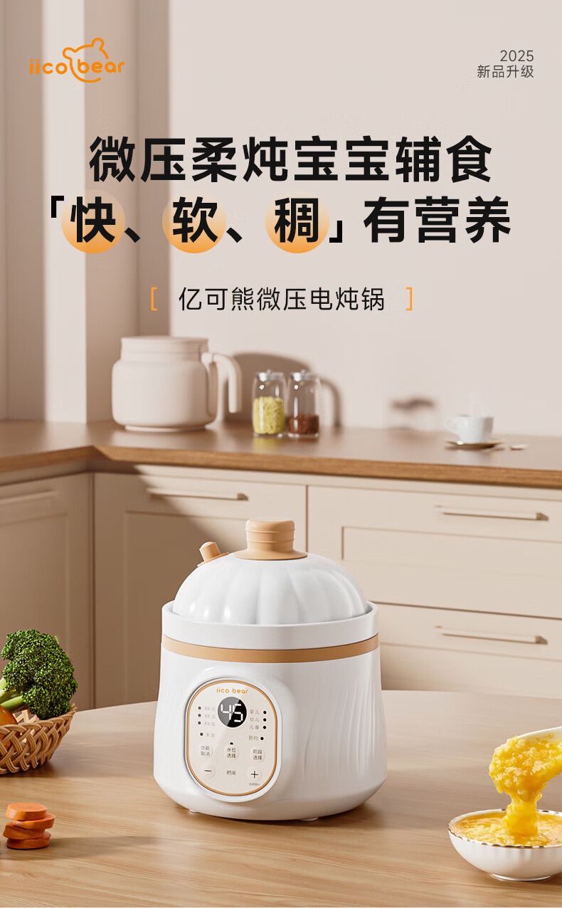亿可熊电炖锅 婴儿辅食锅分月龄BB煲米油熬煮微压炖盅宝宝炖汤