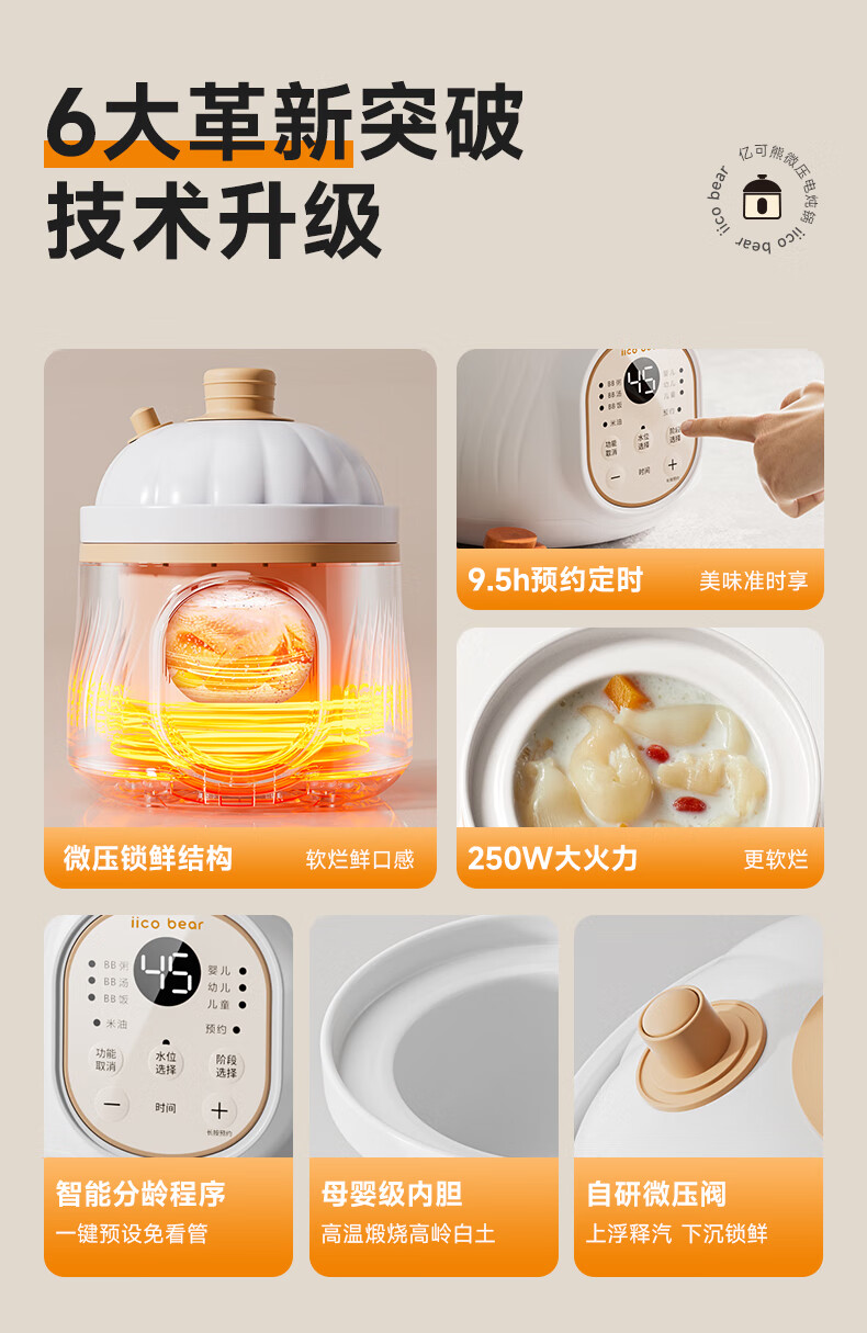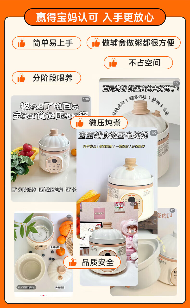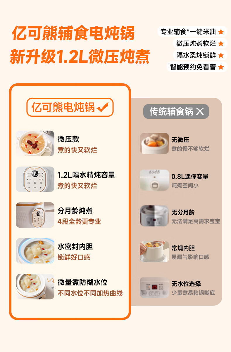 亿可熊电炖锅 婴儿辅食锅分月龄BB煲米油熬煮微压炖盅宝宝炖汤