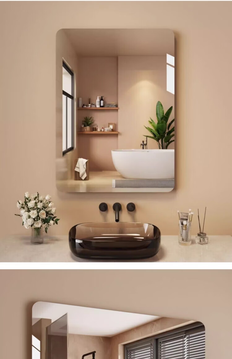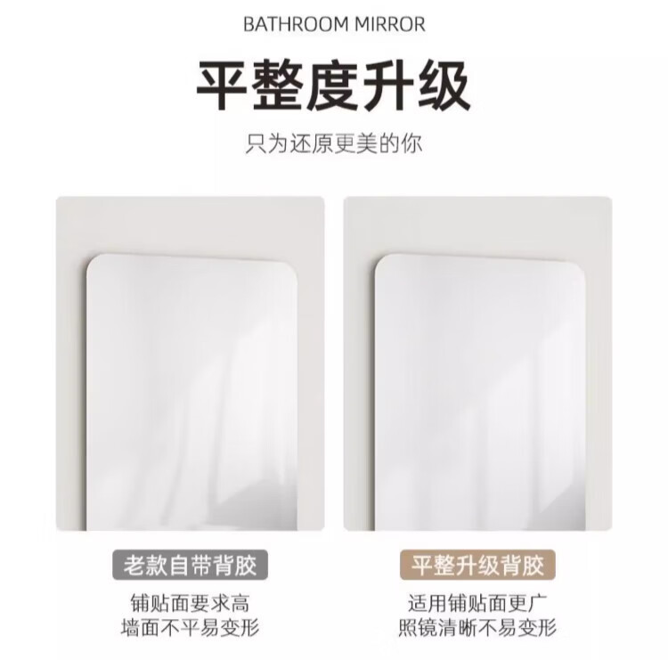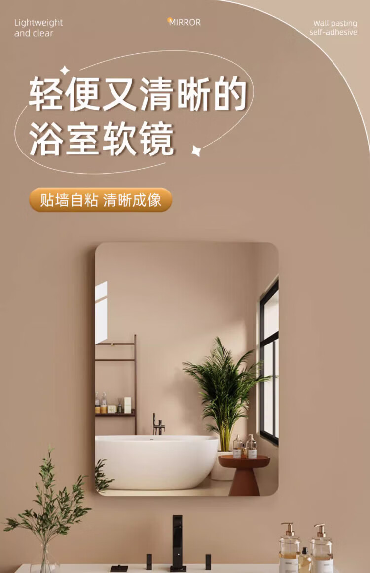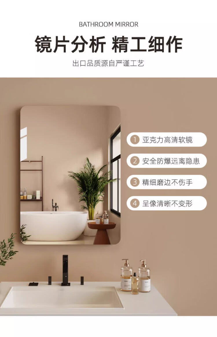 诗元软镜子贴墙自粘浴室家用亚克力全身镜卫生间洗脸化妆镜高清免打孔 【方形圆角款】30*40cm【高清防爆 破损包赔】
