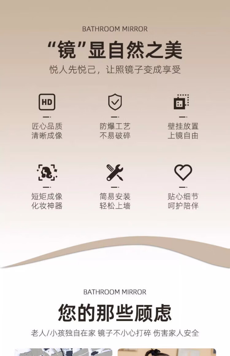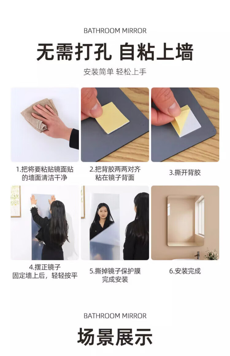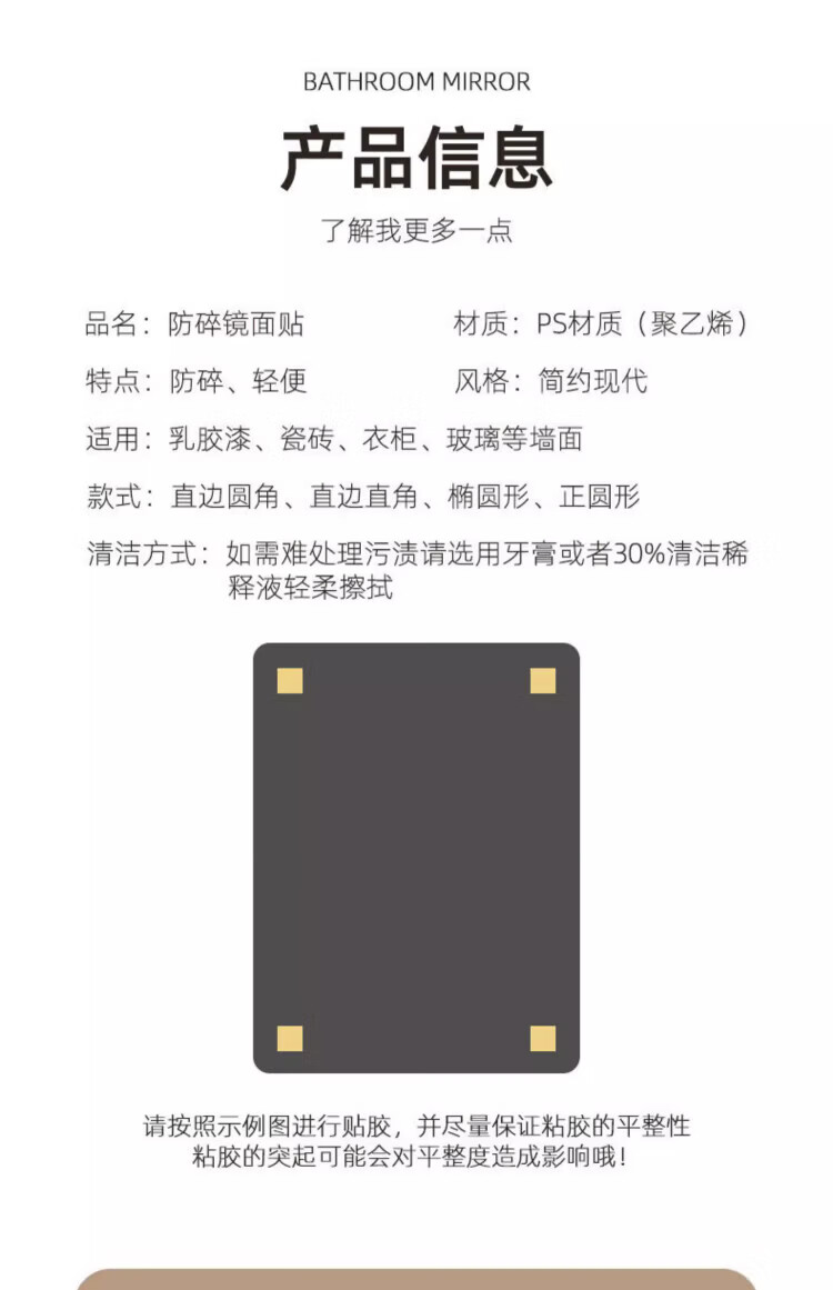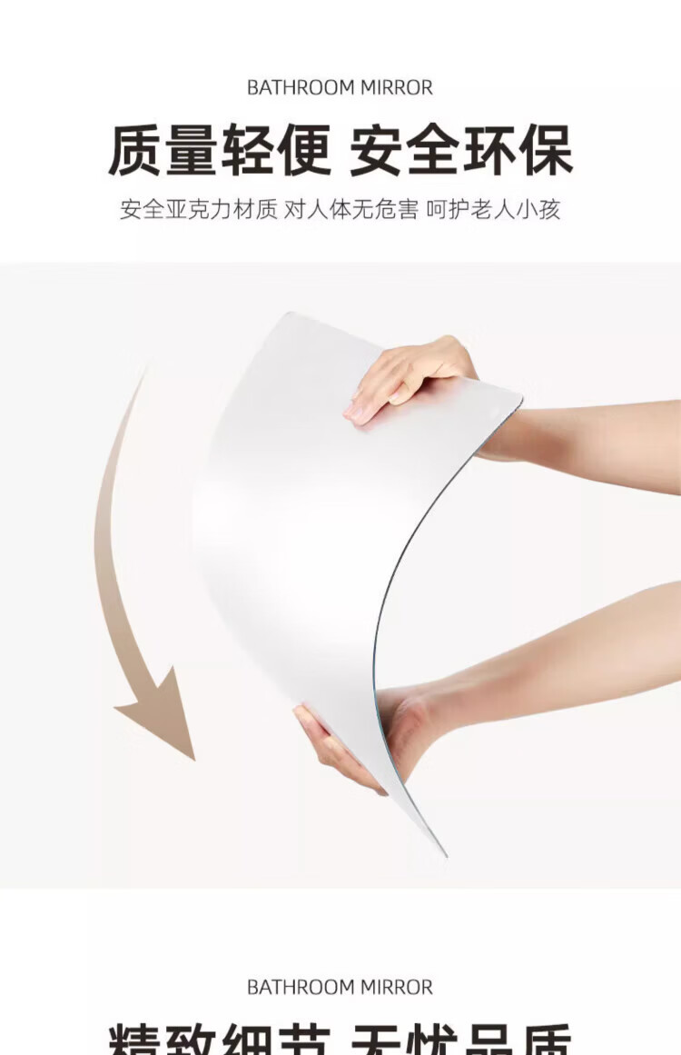 诗元软镜子贴墙自粘浴室家用亚克力全身镜卫生间洗脸化妆镜高清免打孔 【方形圆角款】30*40cm【高清防爆 破损包赔】