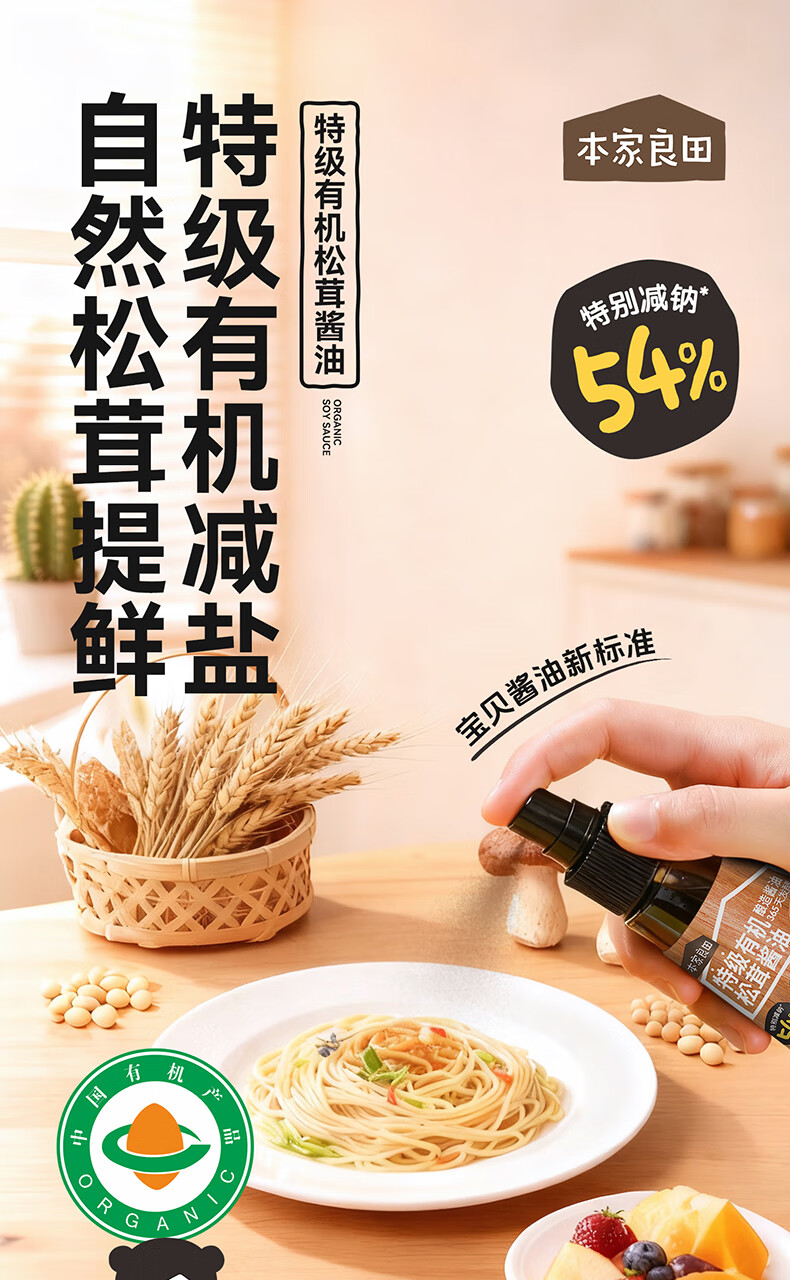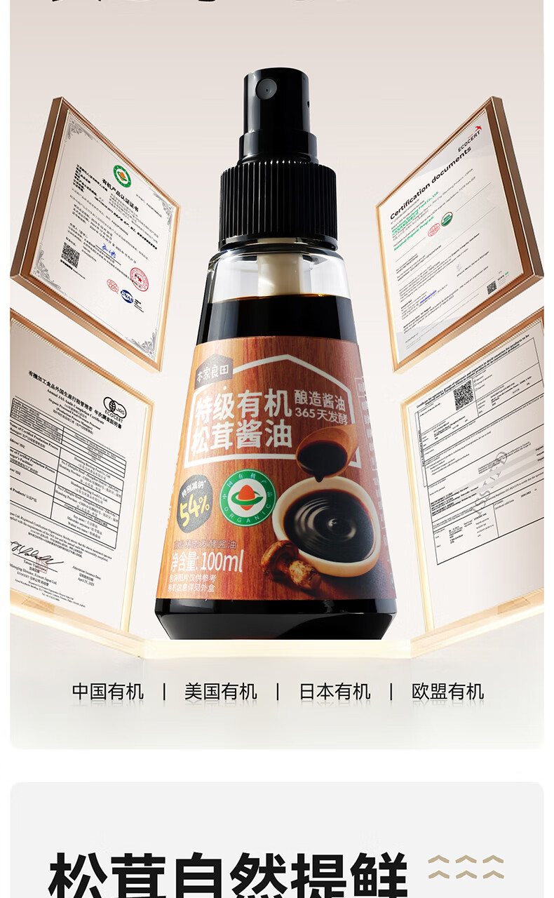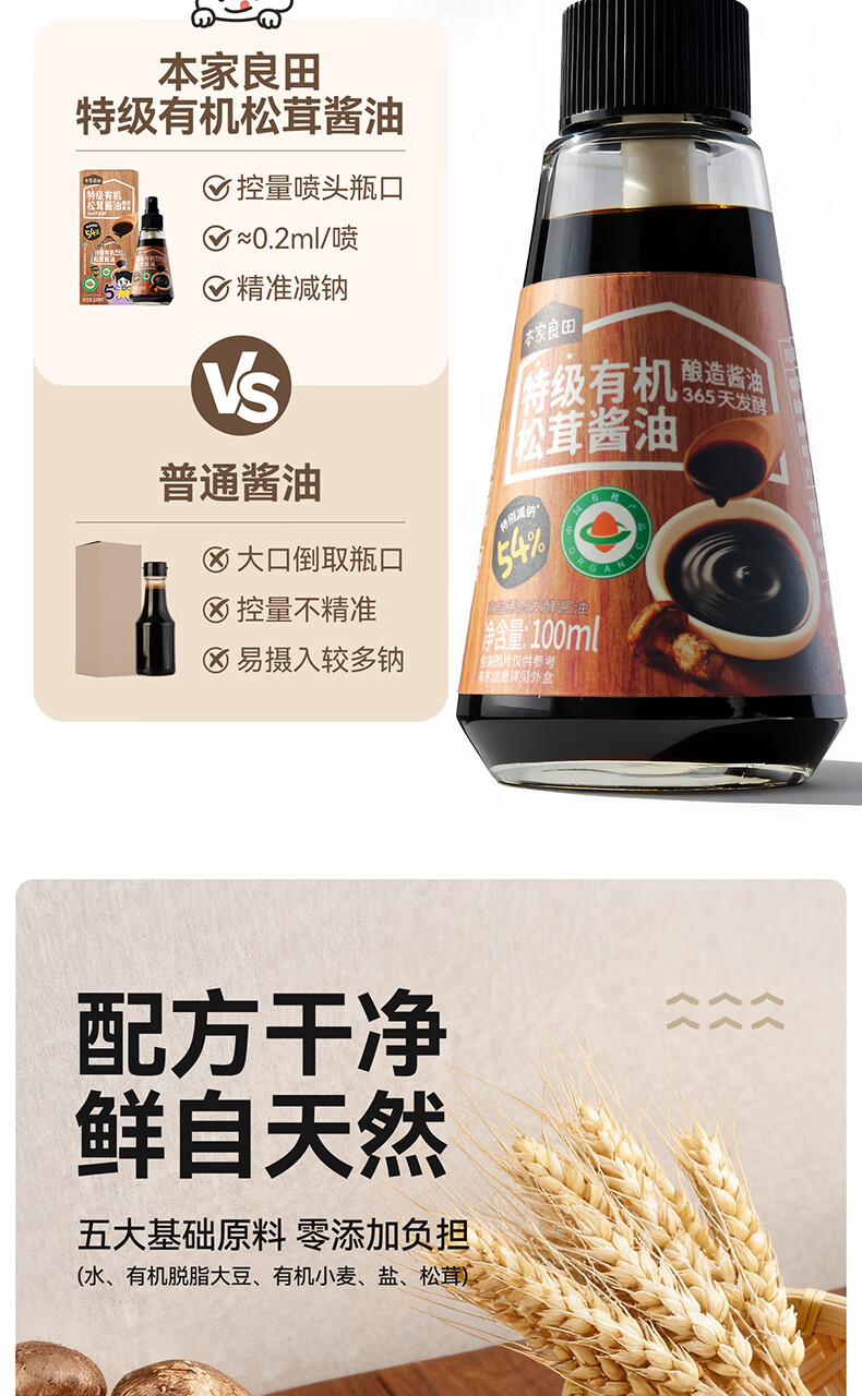 本家良田特级有机酱油减盐酿造调味无添加香精瓶装100ml 特级有机松茸酱油1瓶