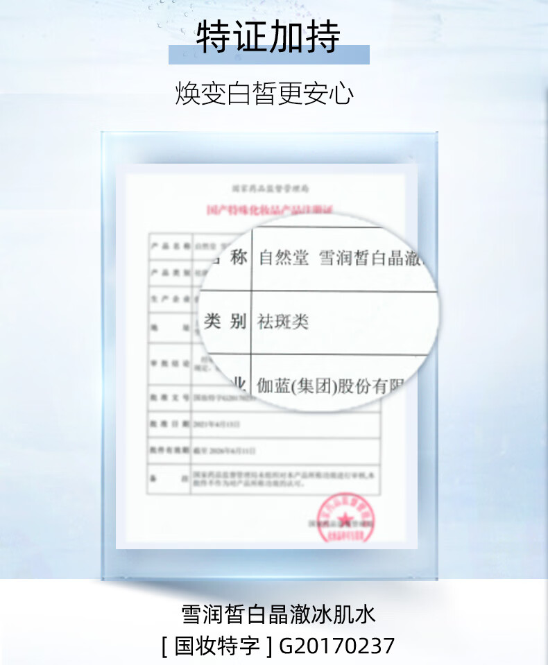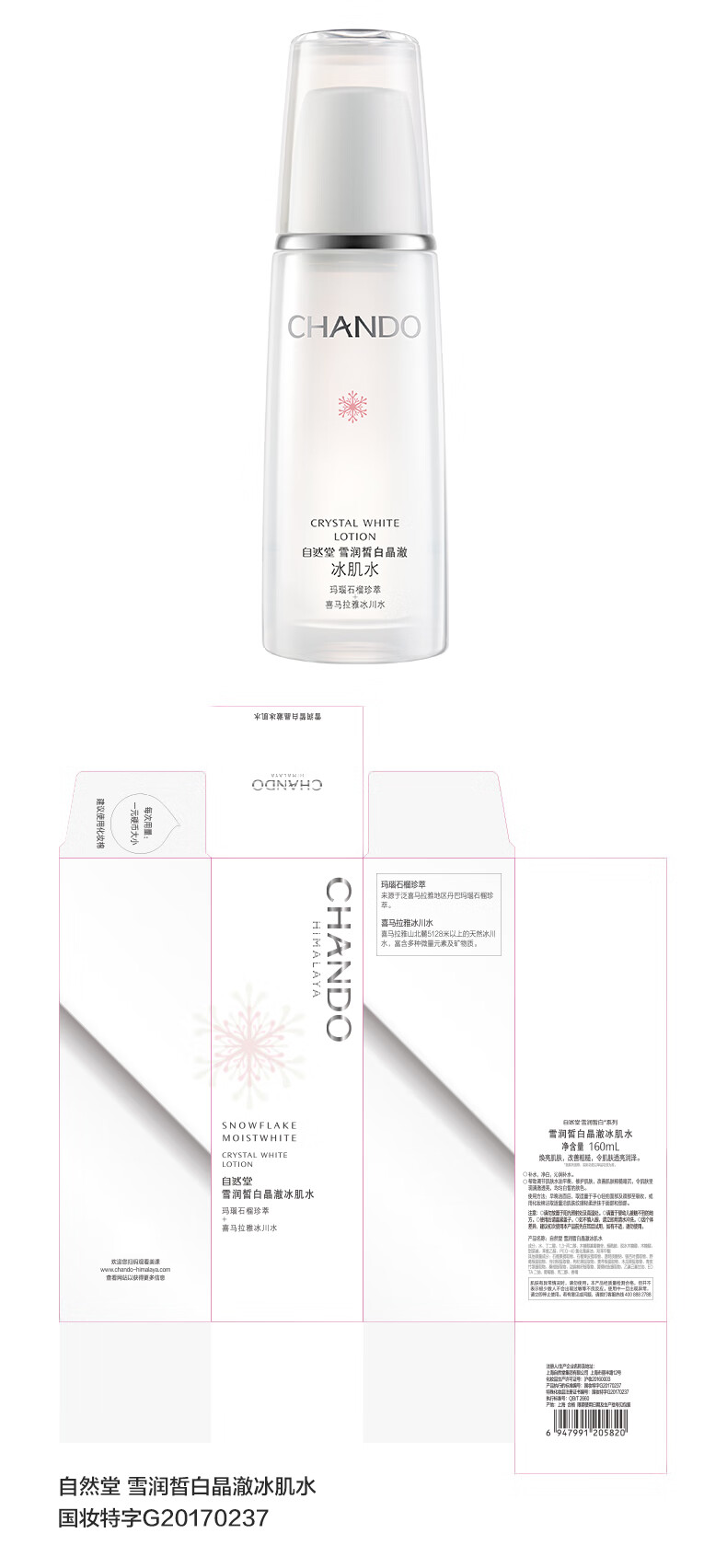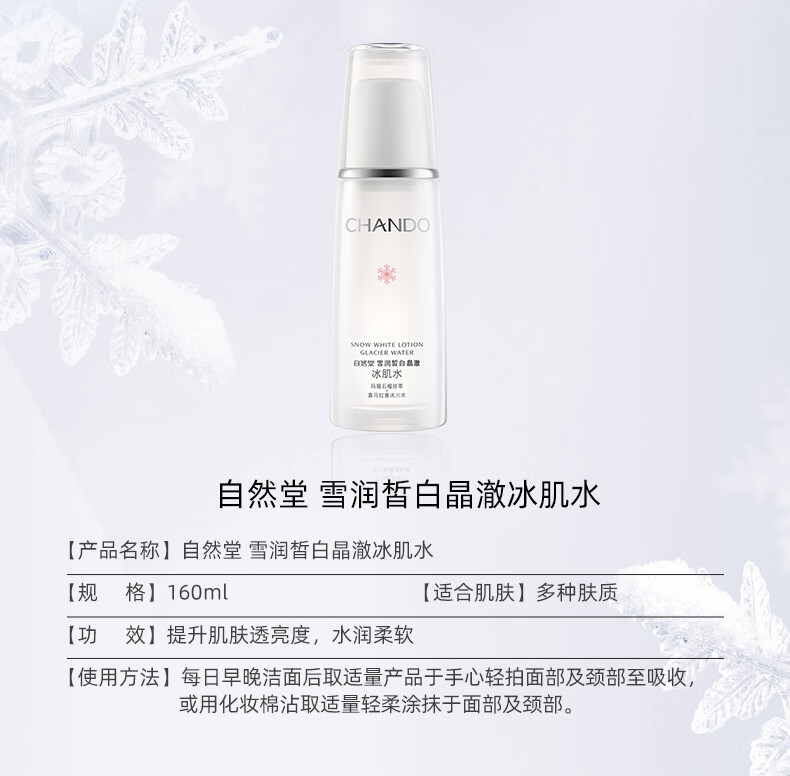 自然堂【常华森同款】雪润皙白晶澈冰肌水160ml 焕白舒缓提亮生日