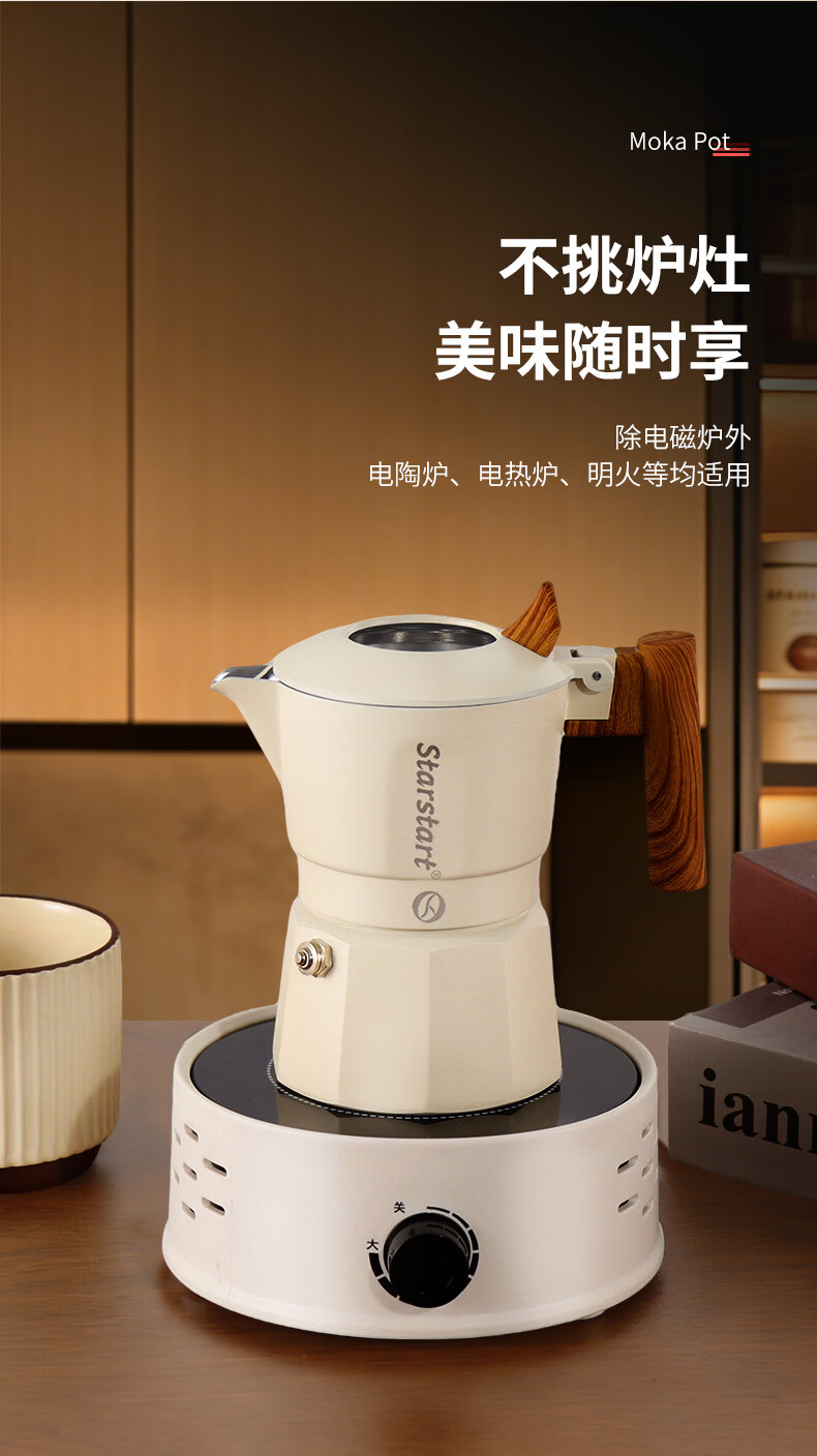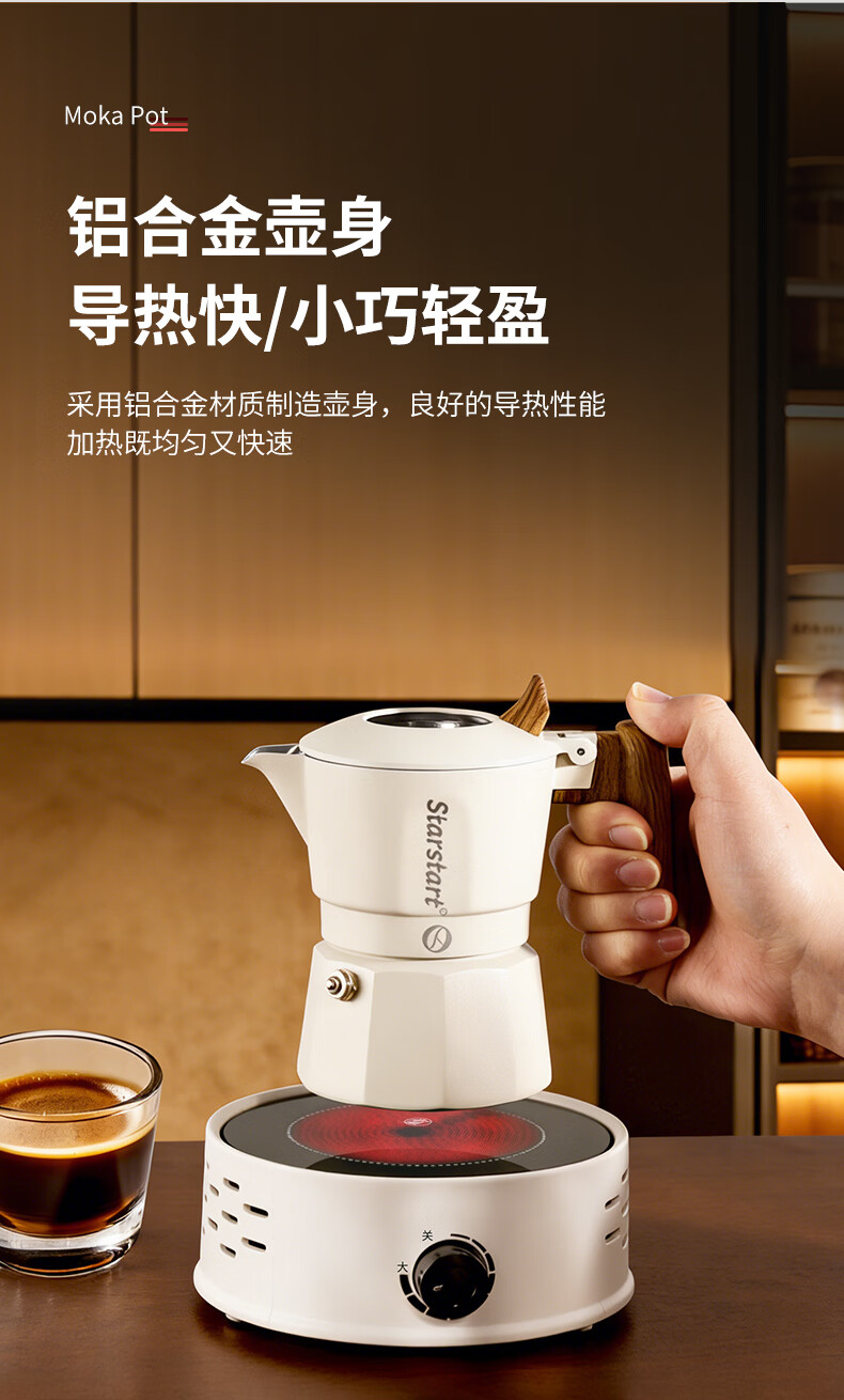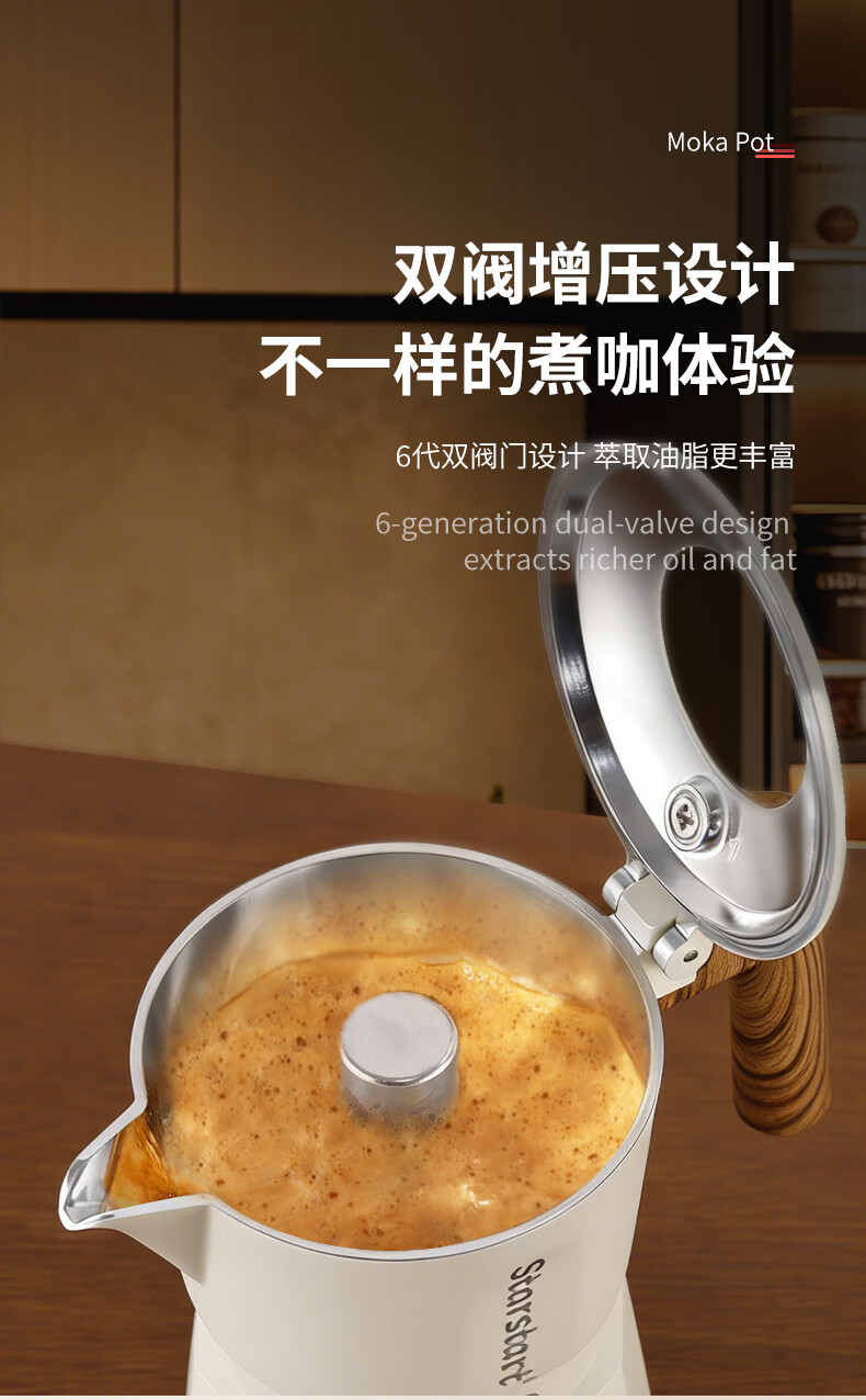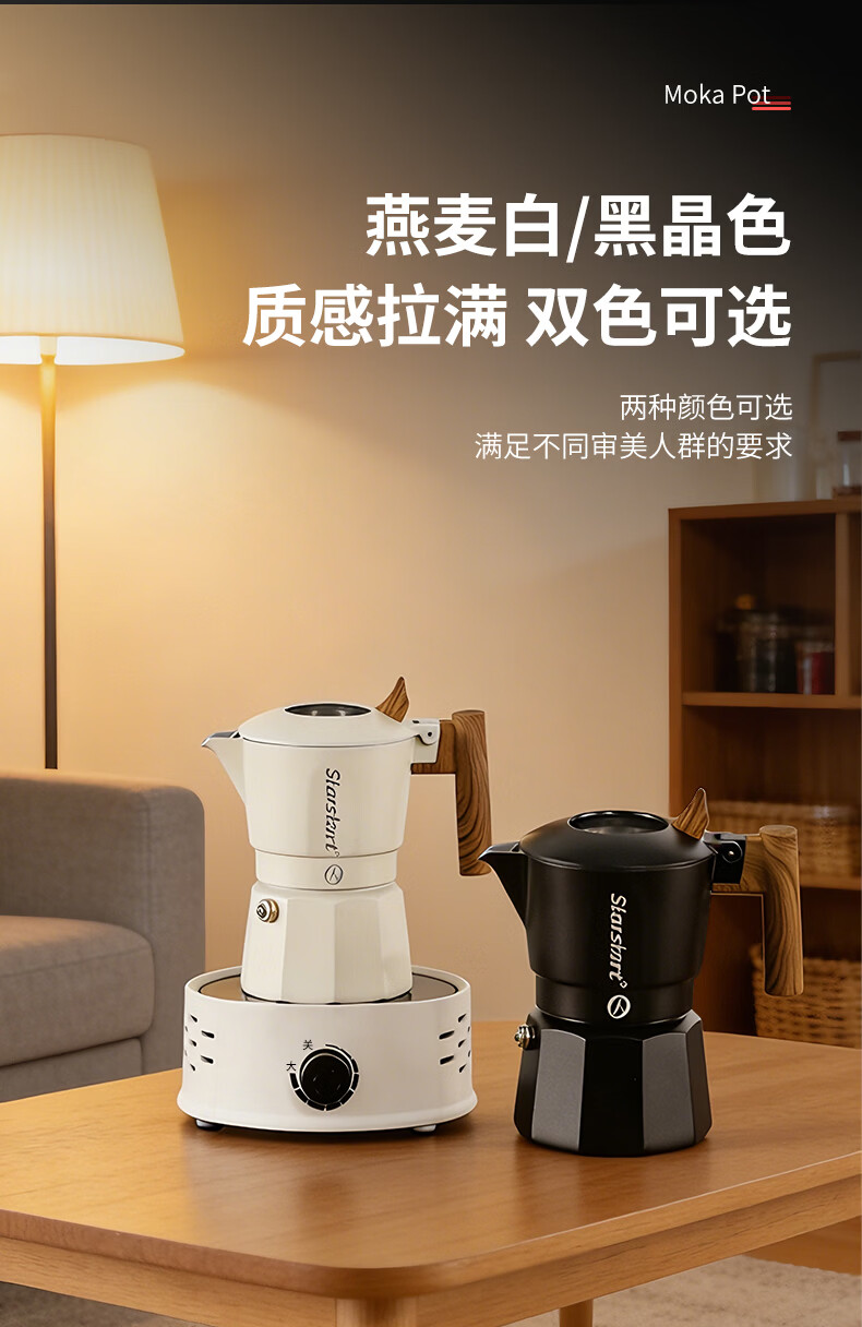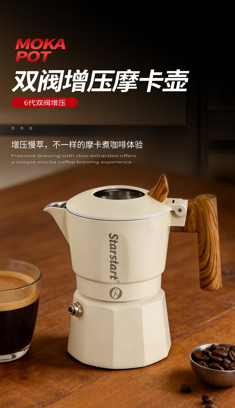 STAR-START双阀摩卡壶套装家用第六代增压小型煮咖啡壶意式浓缩萃取咖啡机 黑色摩卡壶 双阀 2人份-单壶