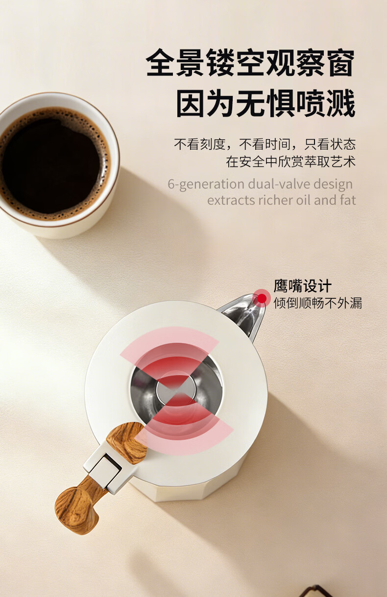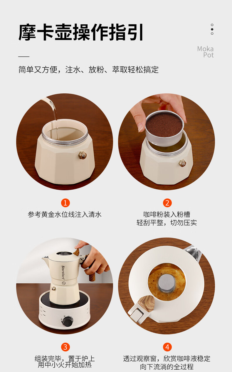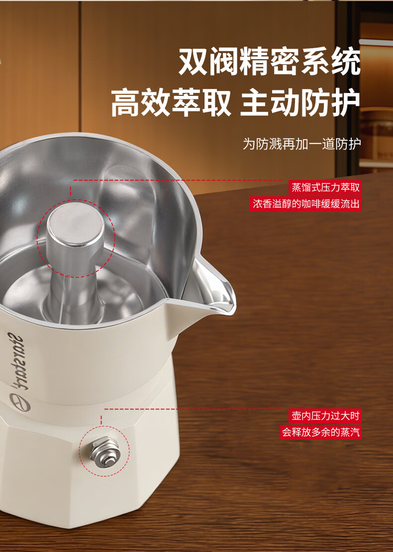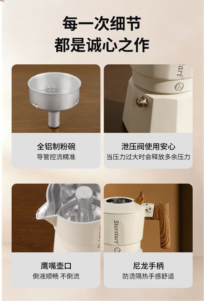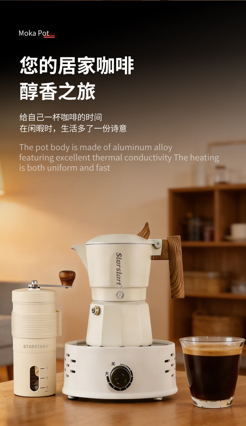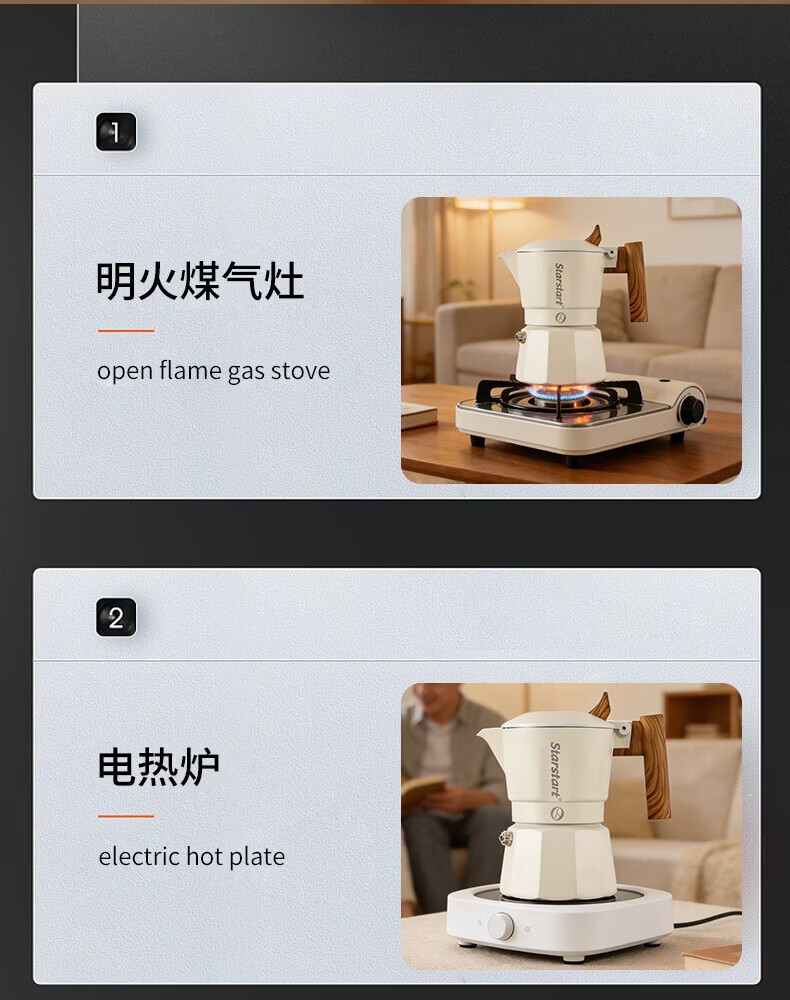 STAR-START双阀摩卡壶套装家用第六代增压小型煮咖啡壶意式浓缩萃取咖啡机 黑色摩卡壶 双阀 2人份-单壶