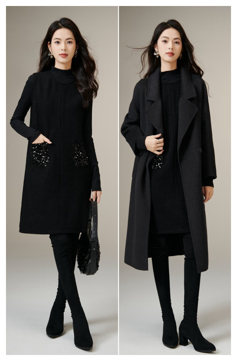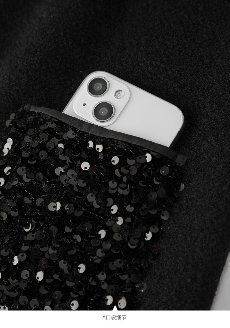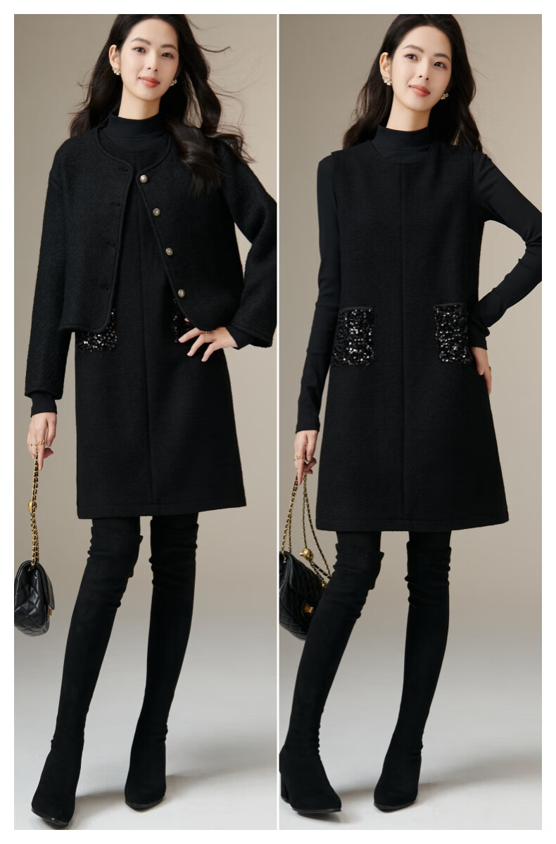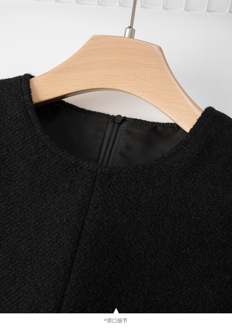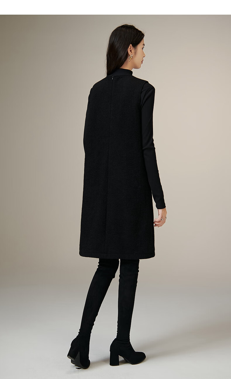 晚白【新品】冬款绵羊毛圆领无袖亮闪闪裙子优雅百搭小个子穿搭连衣裙 黑色 S