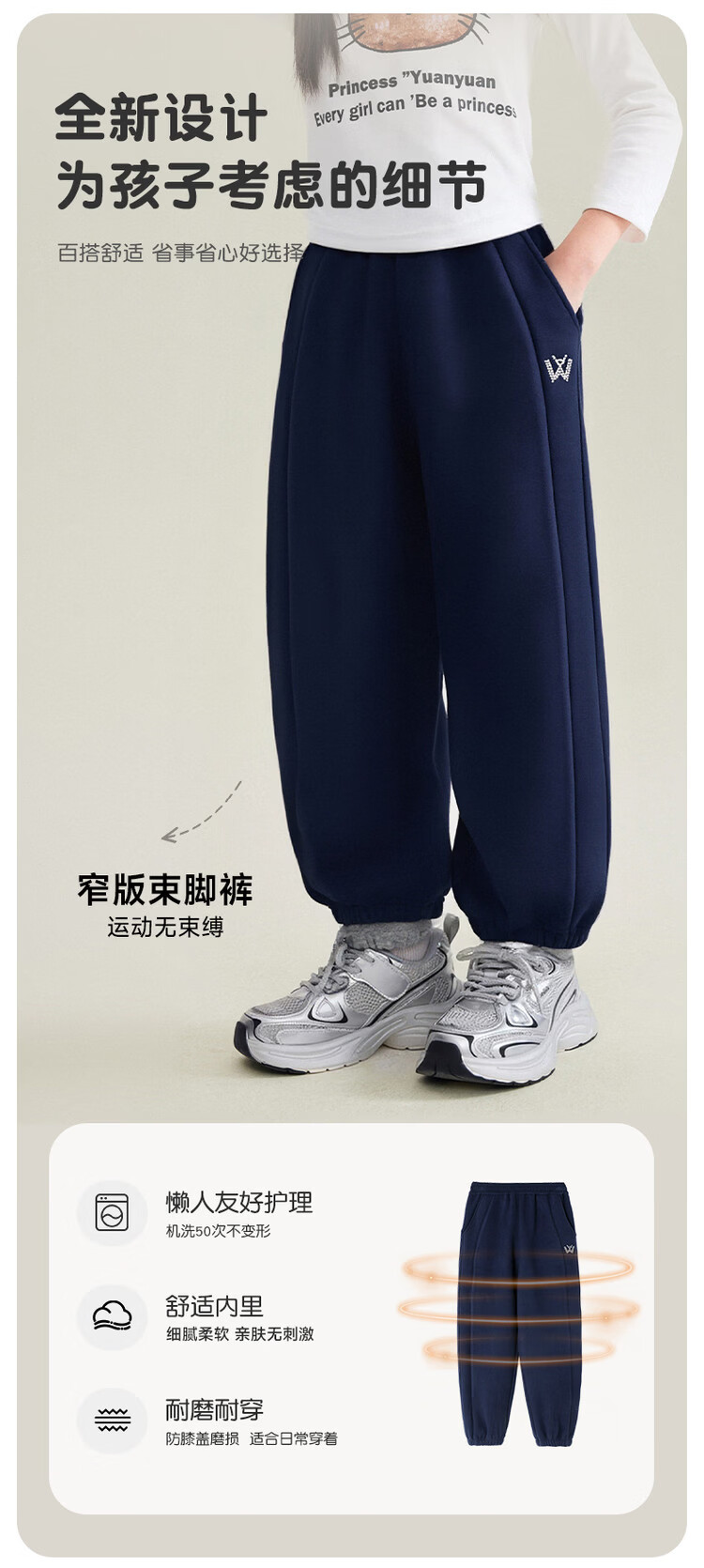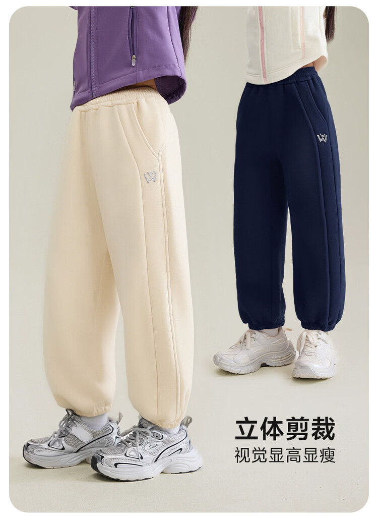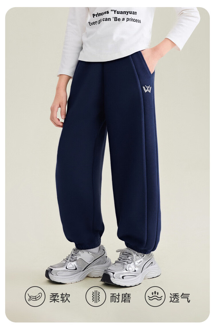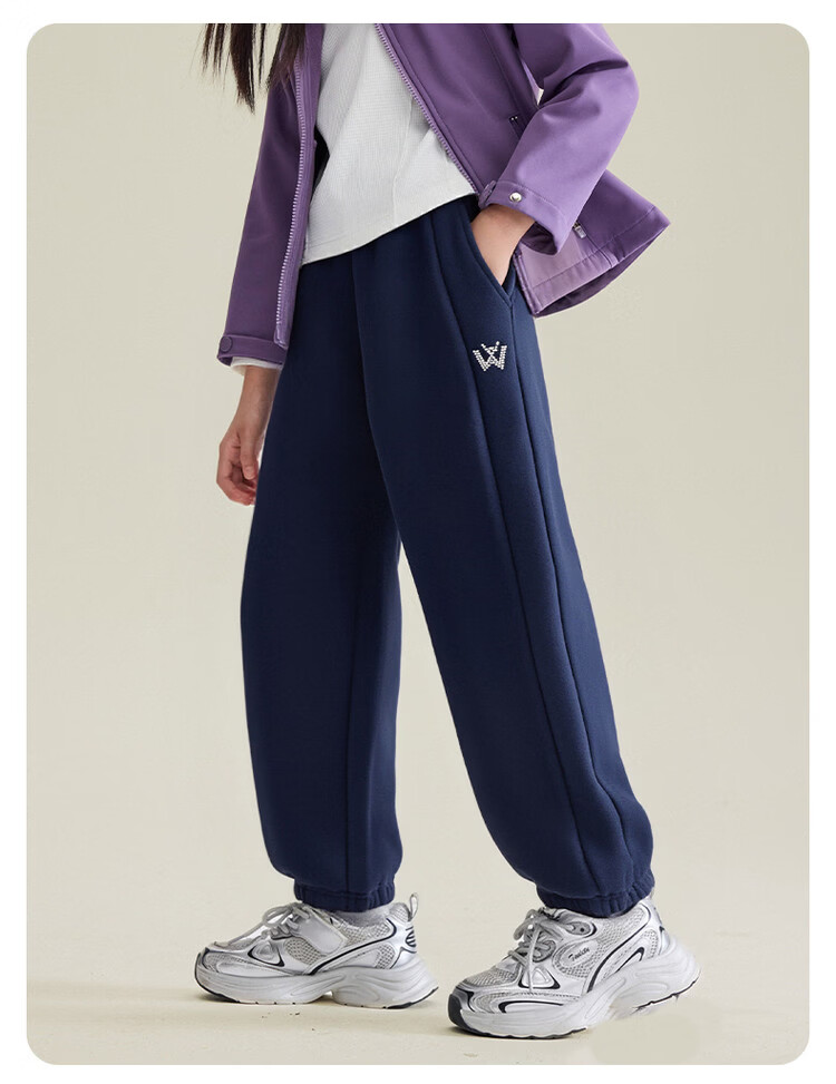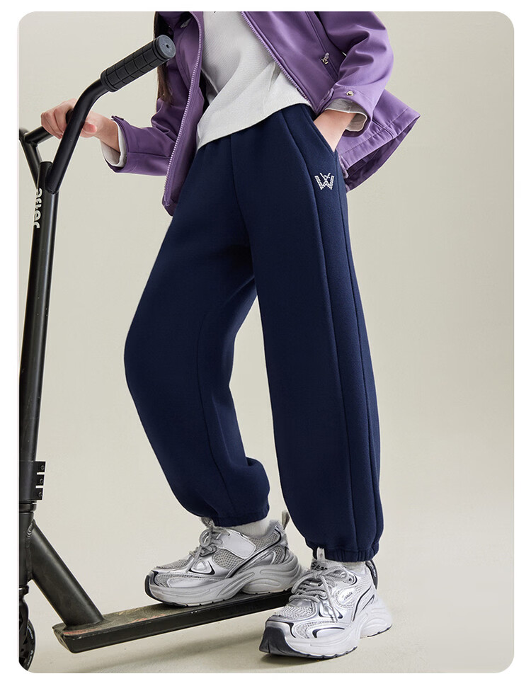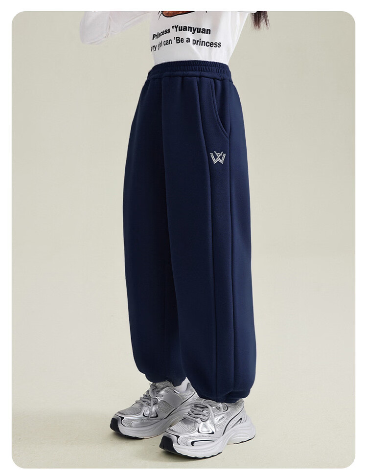 媛媛公主儿童裤子25冬新款女童简约加绒加厚运动裤中大童百搭保暖休闲裤 藏青 110