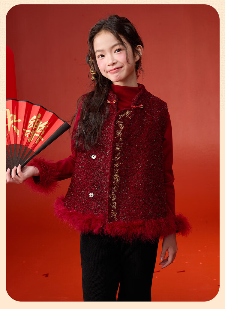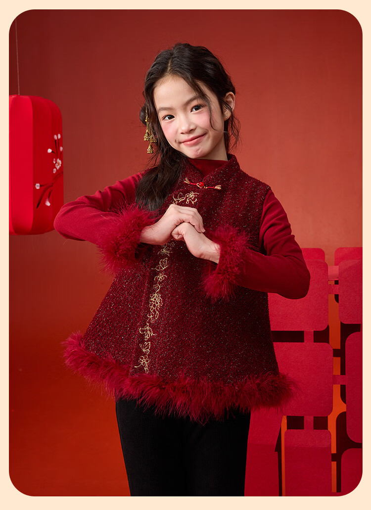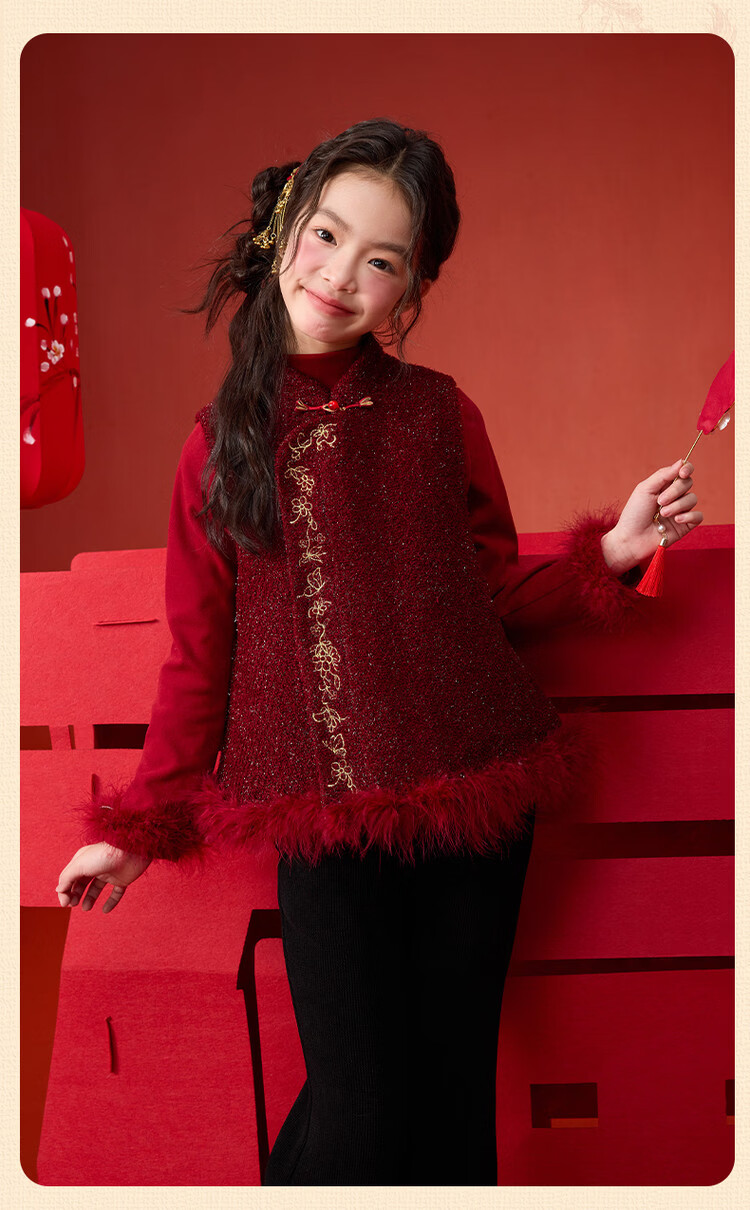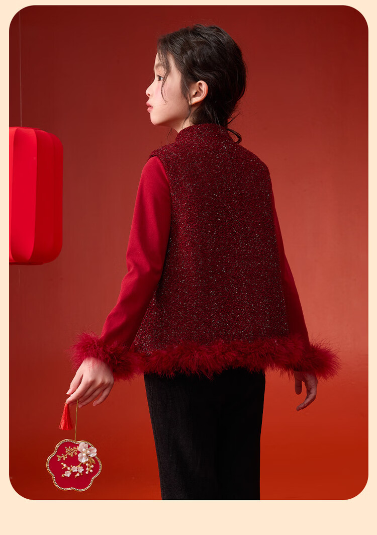 媛媛公主【国风拜年服】儿童夹棉背心冬季新款中大童喜庆保暖女童新年马甲 红色 110