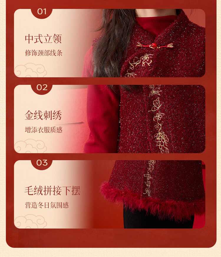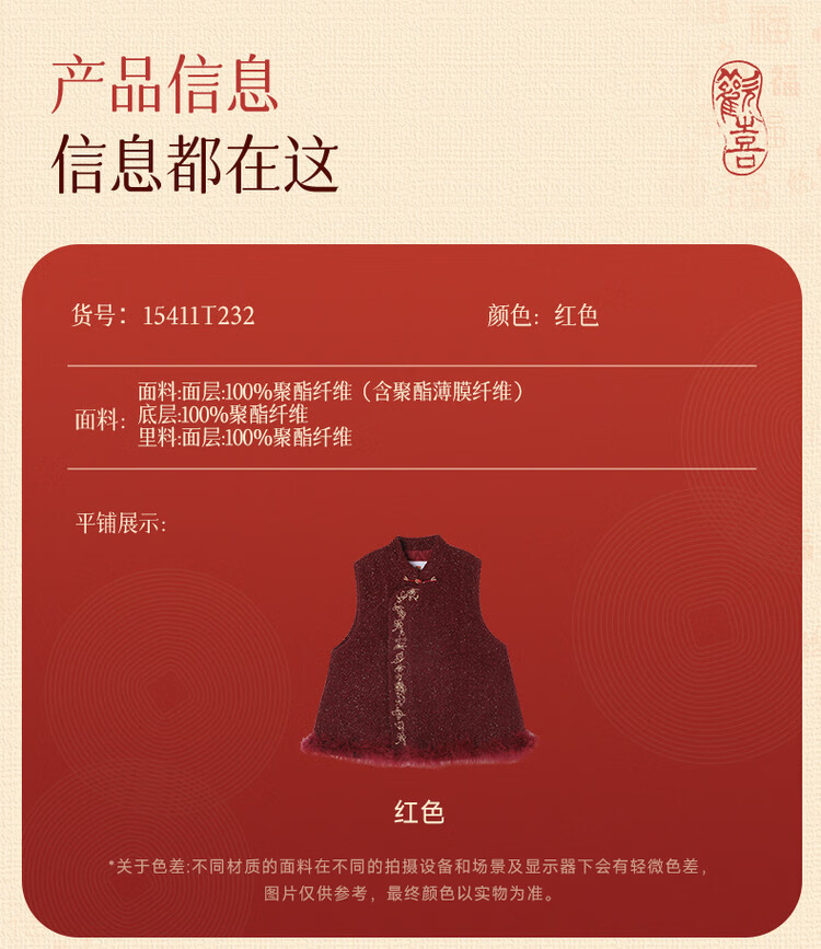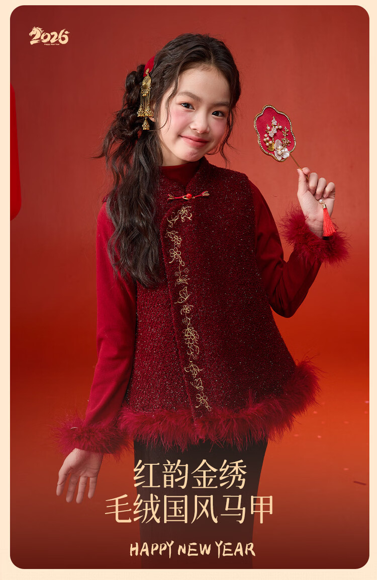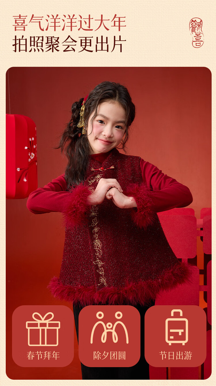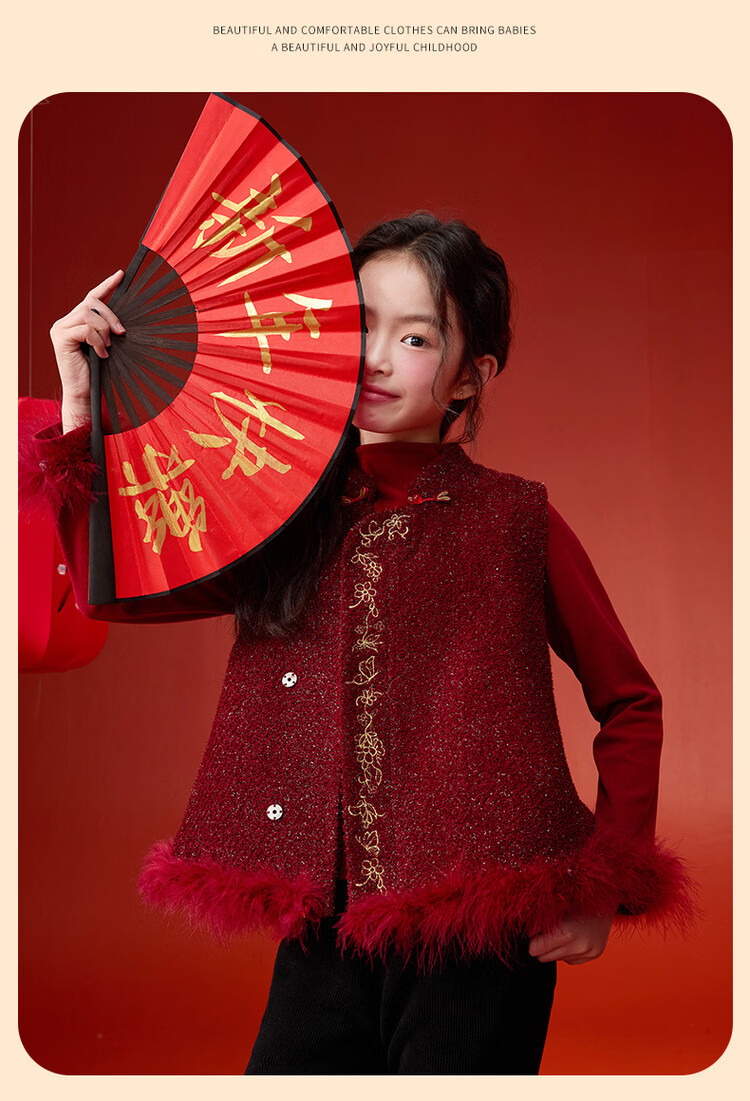 媛媛公主【国风拜年服】儿童夹棉背心冬季新款中大童喜庆保暖女童新年马甲 红色 110