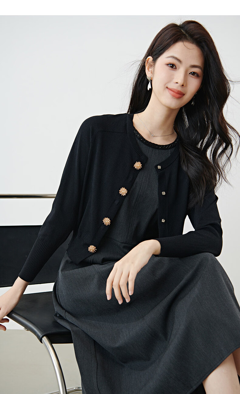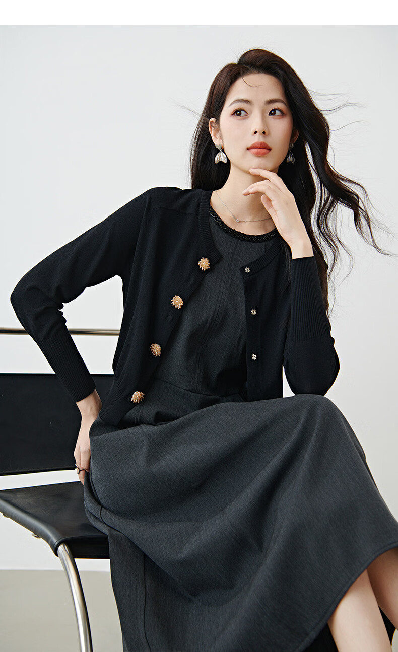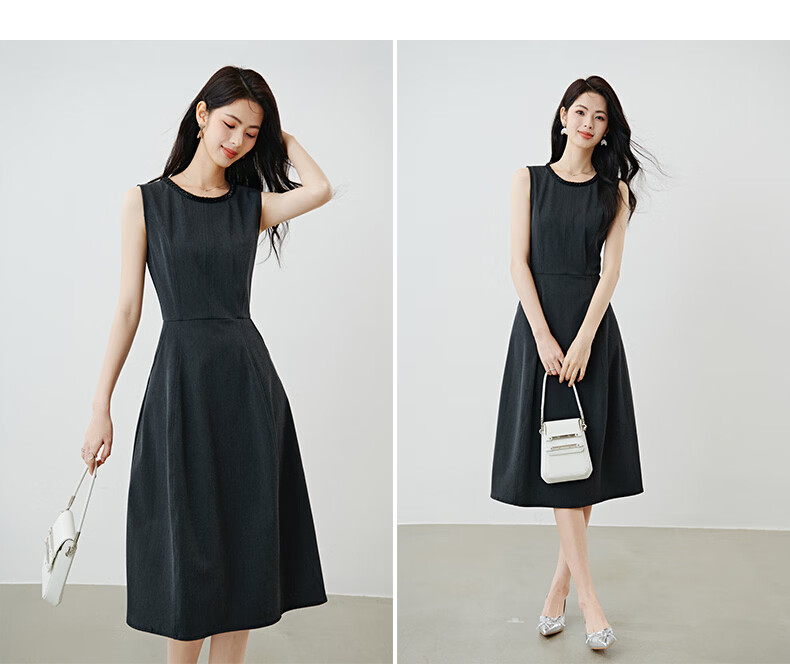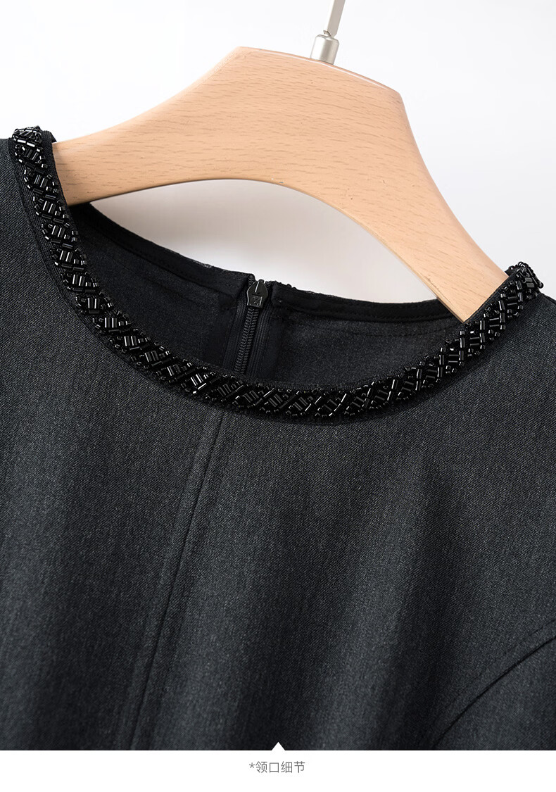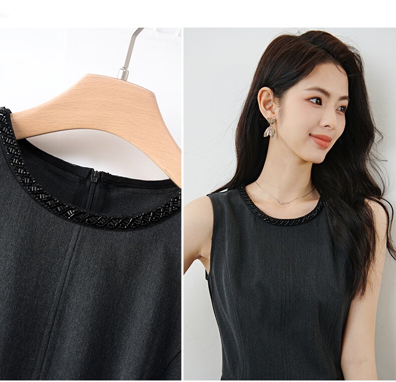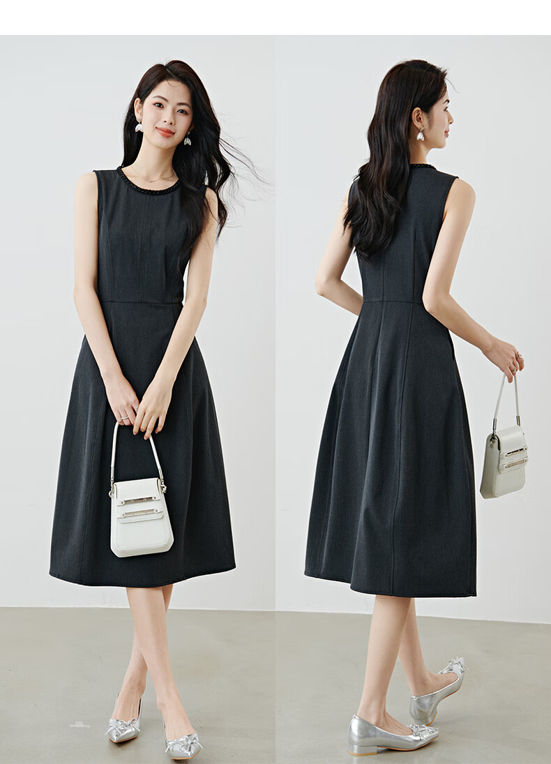 晚白【新品】2026春款正式场合钉珠圆领裙子显瘦垂感通勤无袖连衣裙 深灰色 M