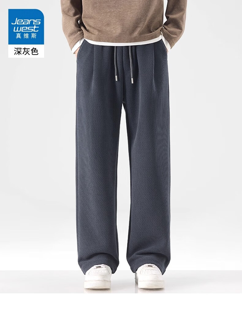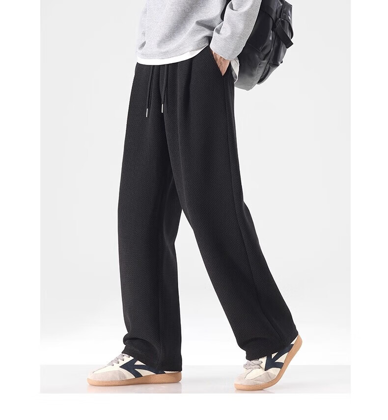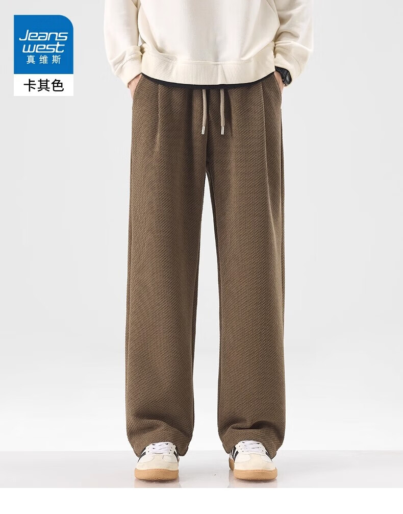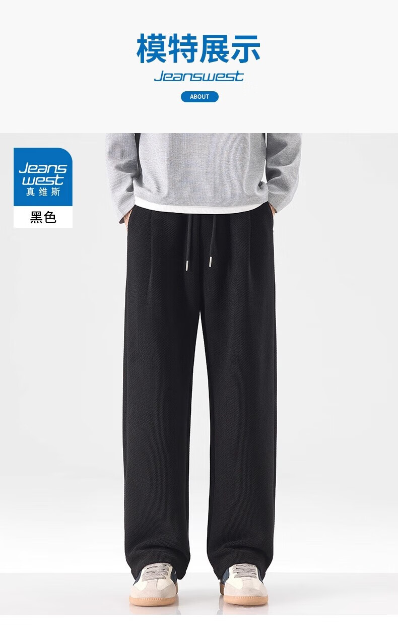 真维斯(Jeanswest)宽松直筒百搭休闲裤男士2026秋季新款潮流垂感针织保暖卫裤 黑色【免烫抗皱】 4XL 【建议180-200斤】