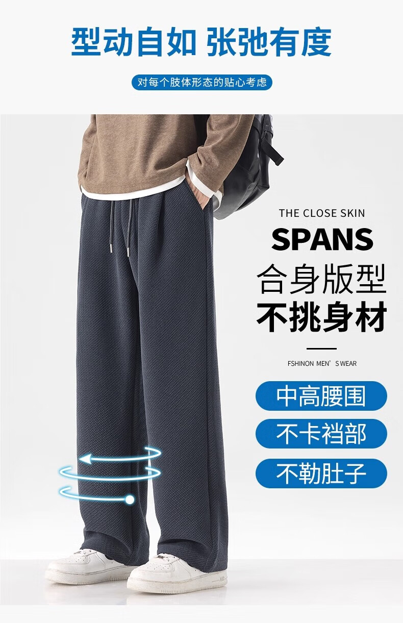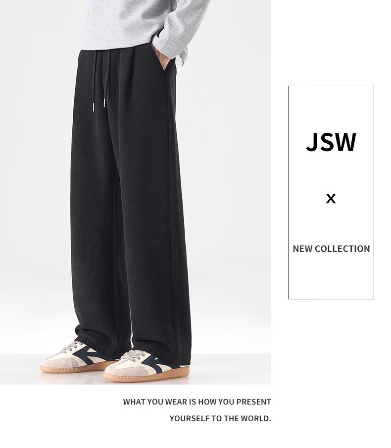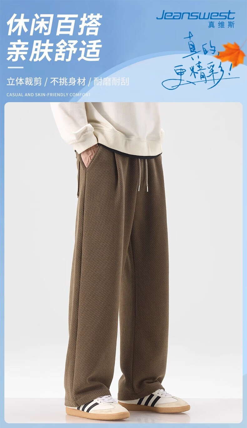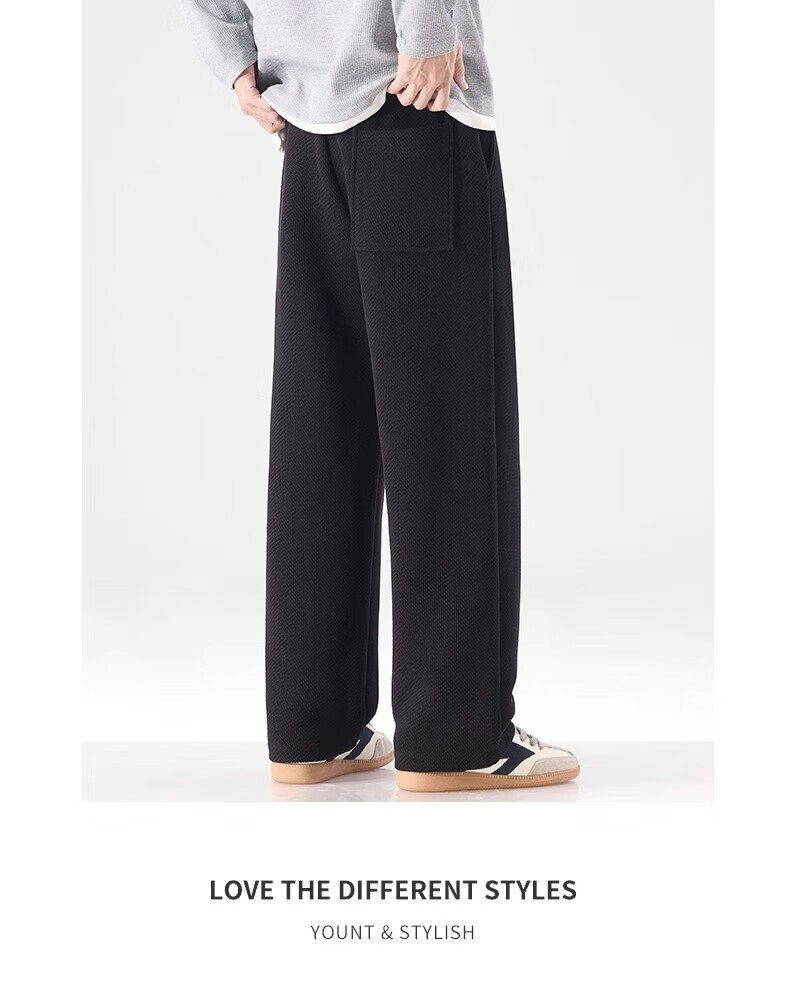 真维斯(Jeanswest)宽松直筒百搭休闲裤男士2026秋季新款潮流垂感针织保暖卫裤 黑色【免烫抗皱】 4XL 【建议180-200斤】