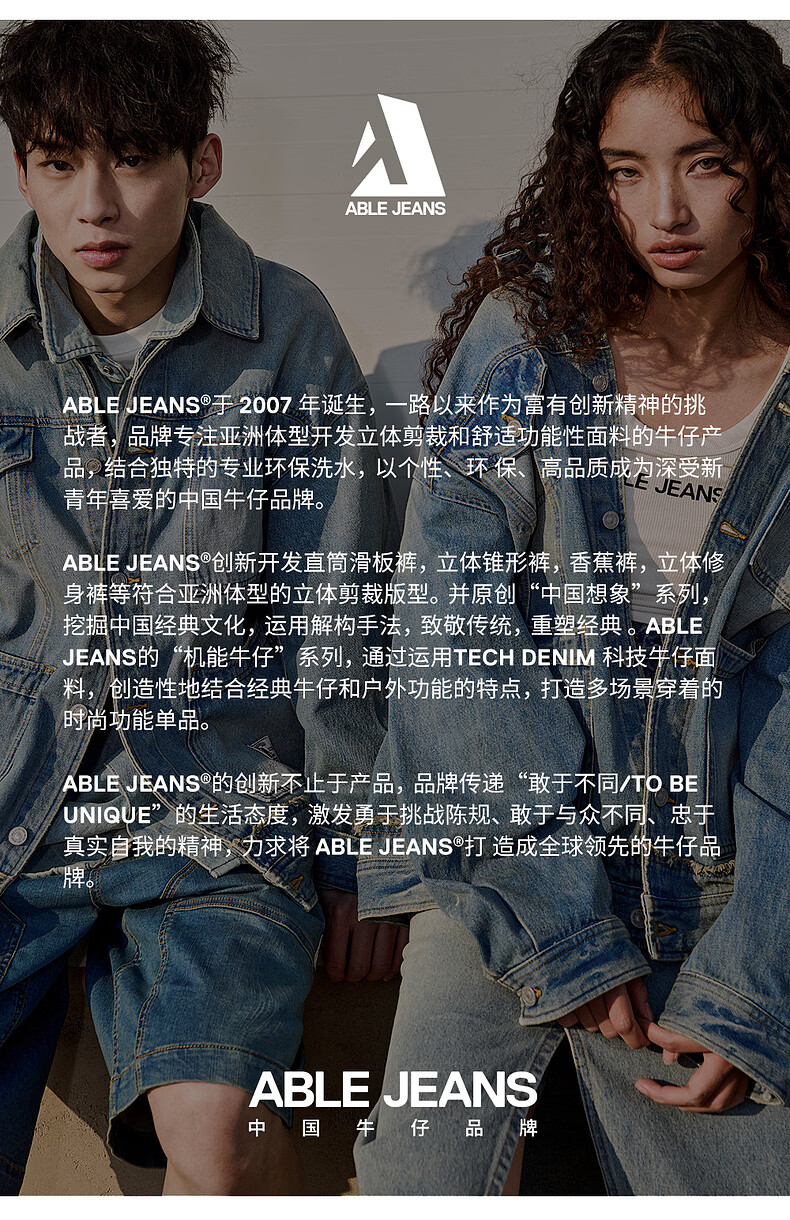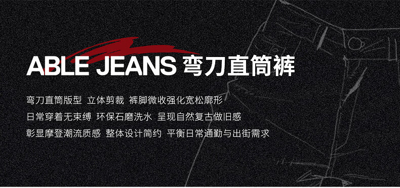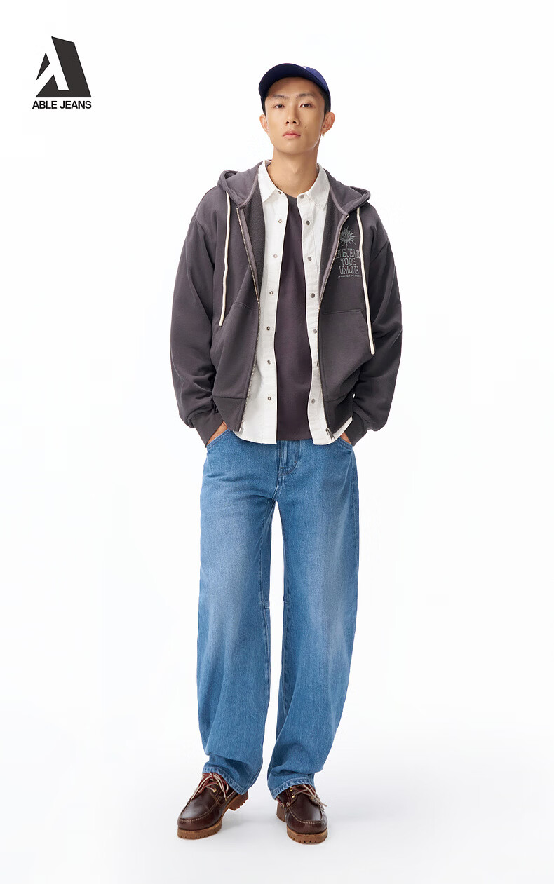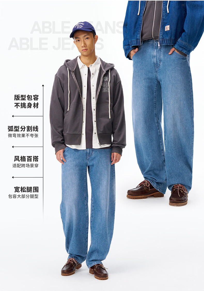 ABLE JEANS【弯刀直筒裤】26春新款牛仔裤男裤休闲舒适遮肉痞帅直筒阔腿裤 天晴蓝 29 /30(建议120-130斤)