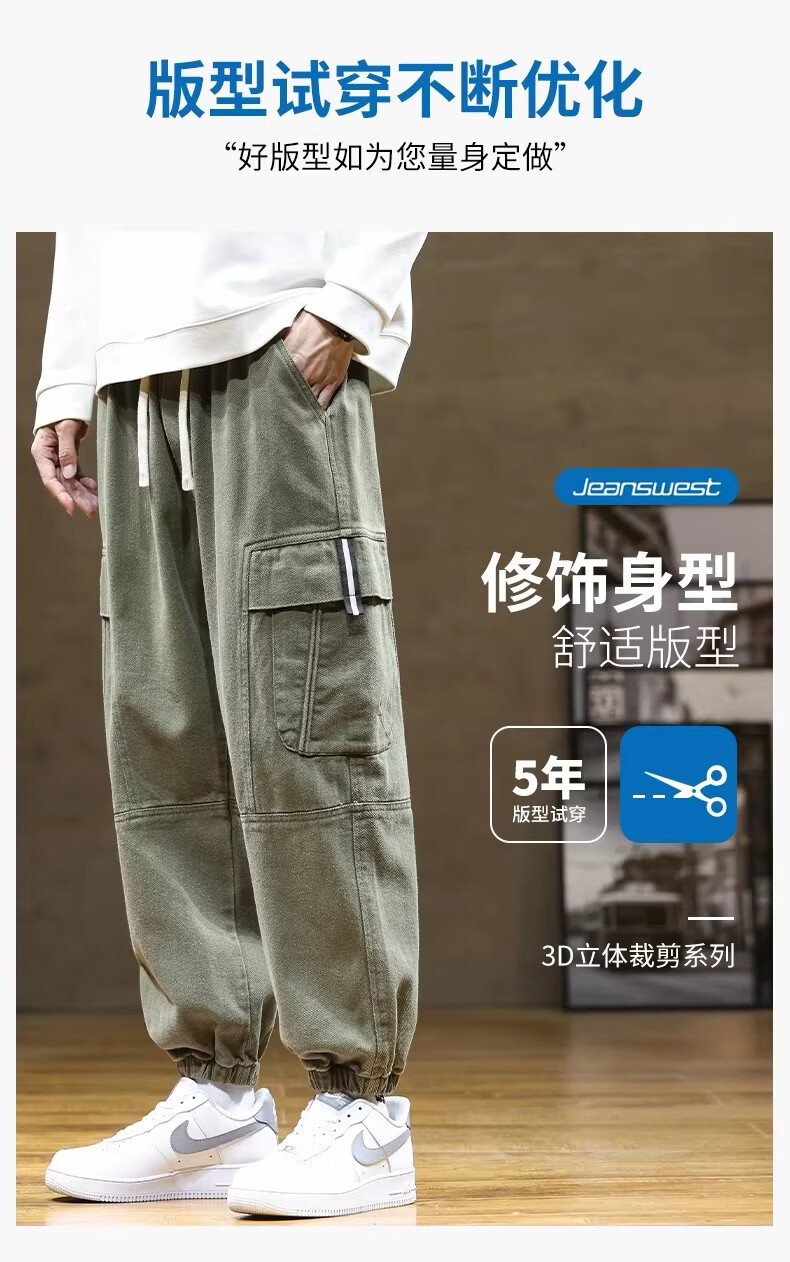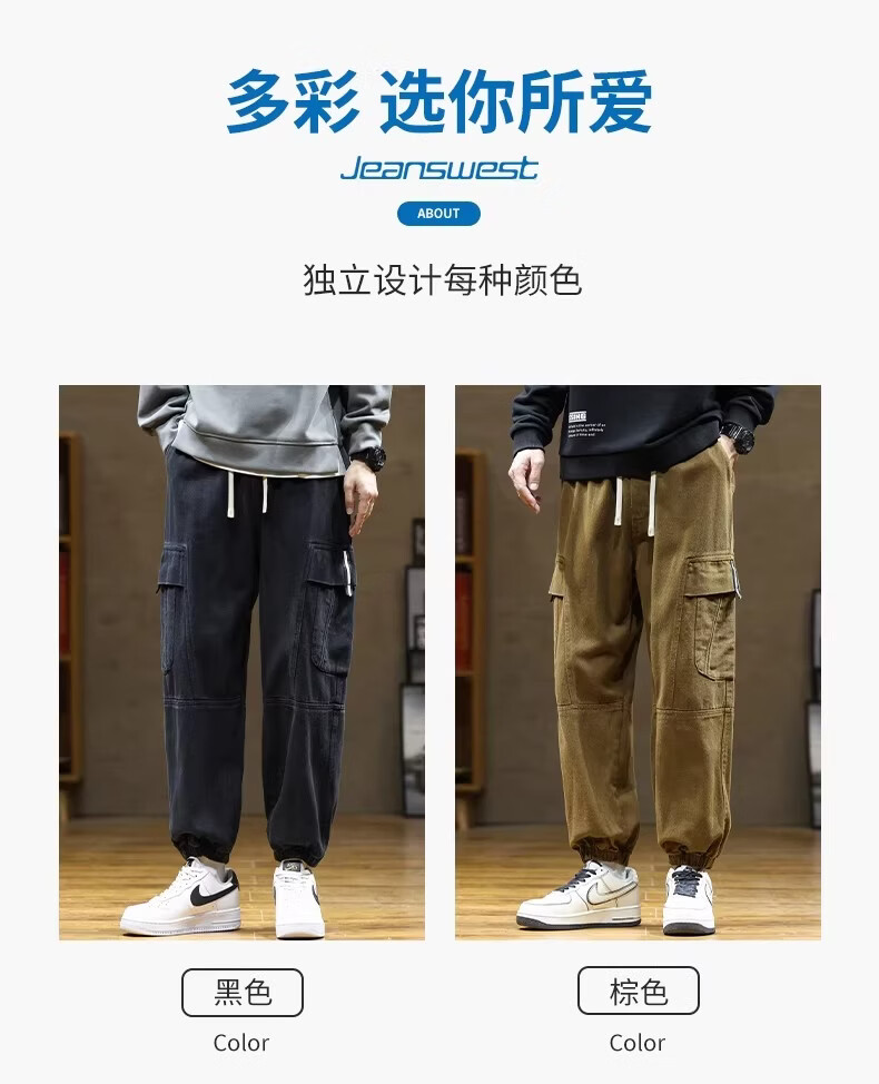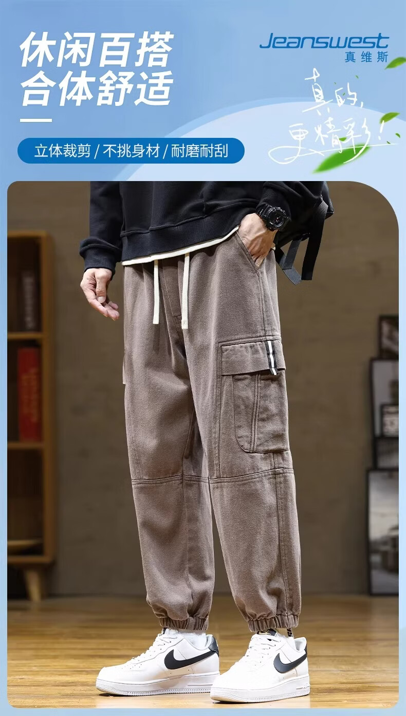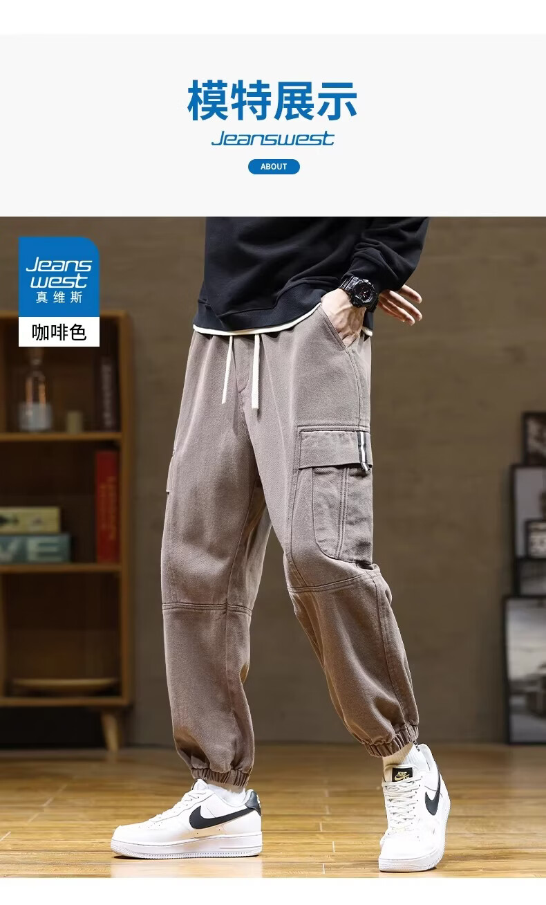 真维斯(Jeanswest)咖啡色工装风束脚裤男2026春季新款宽松潮牌大码美式休闲裤 咖啡色 【美式复古】 M 【建议80-115斤】