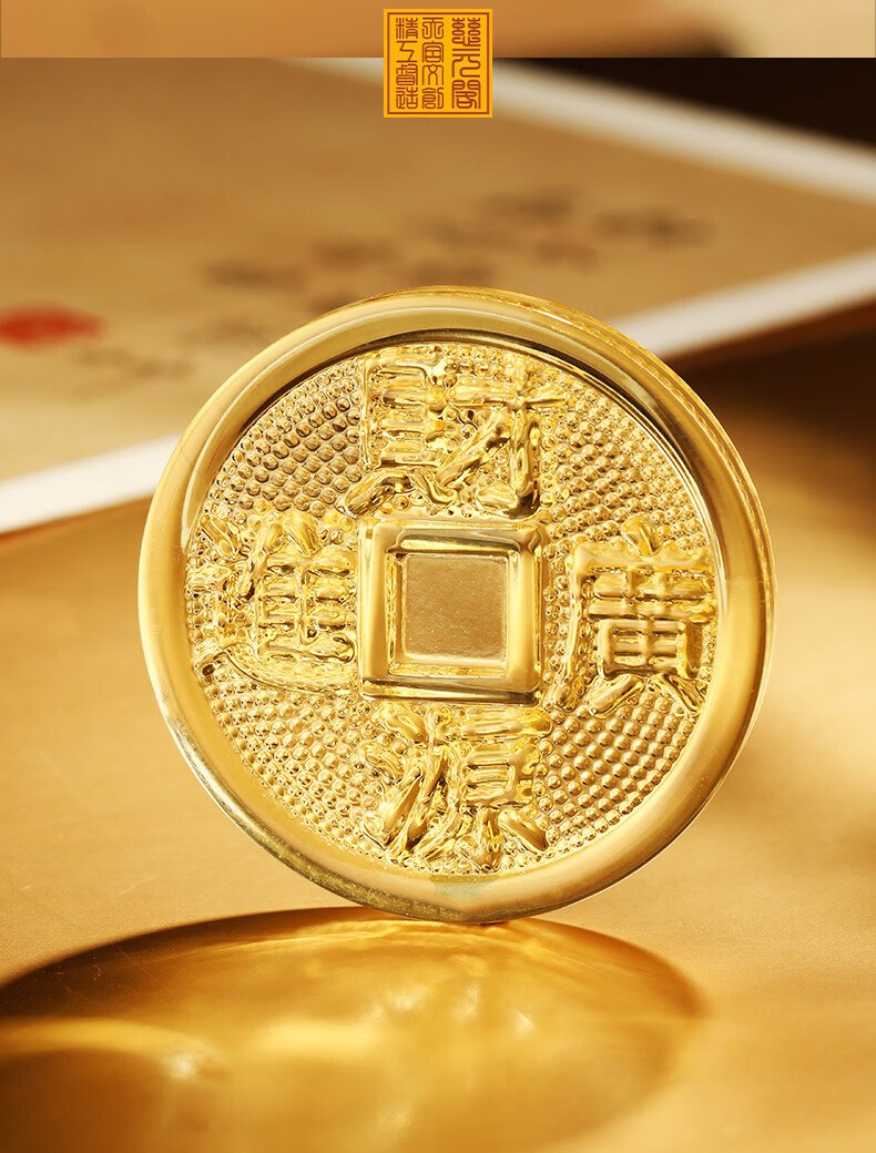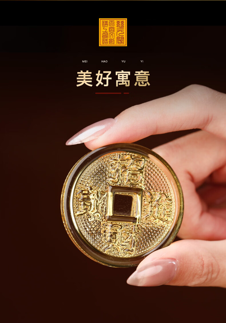 慈元阁琉璃五帝钱招财进宝币随身复古把玩钱币桌面摆件配饰聚宝盆装饰品 黄铜五帝钱-顺治