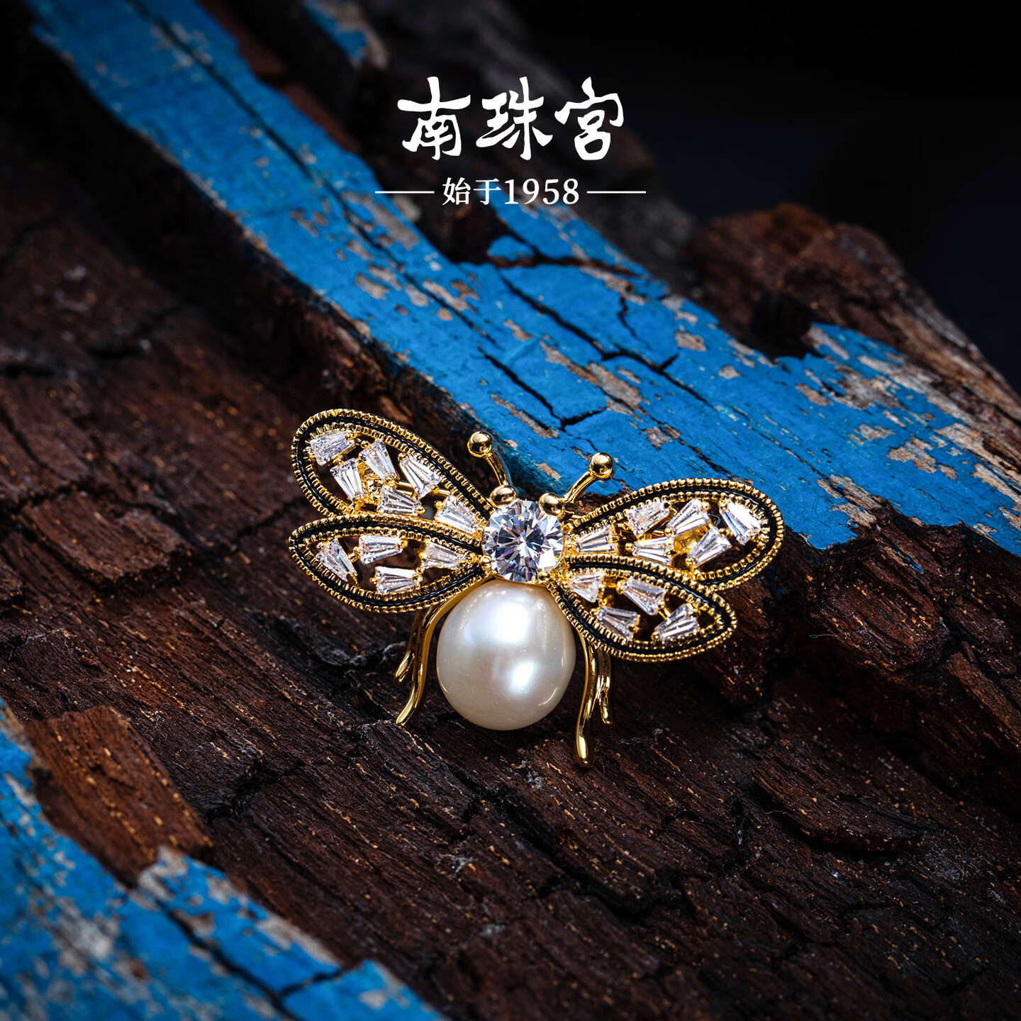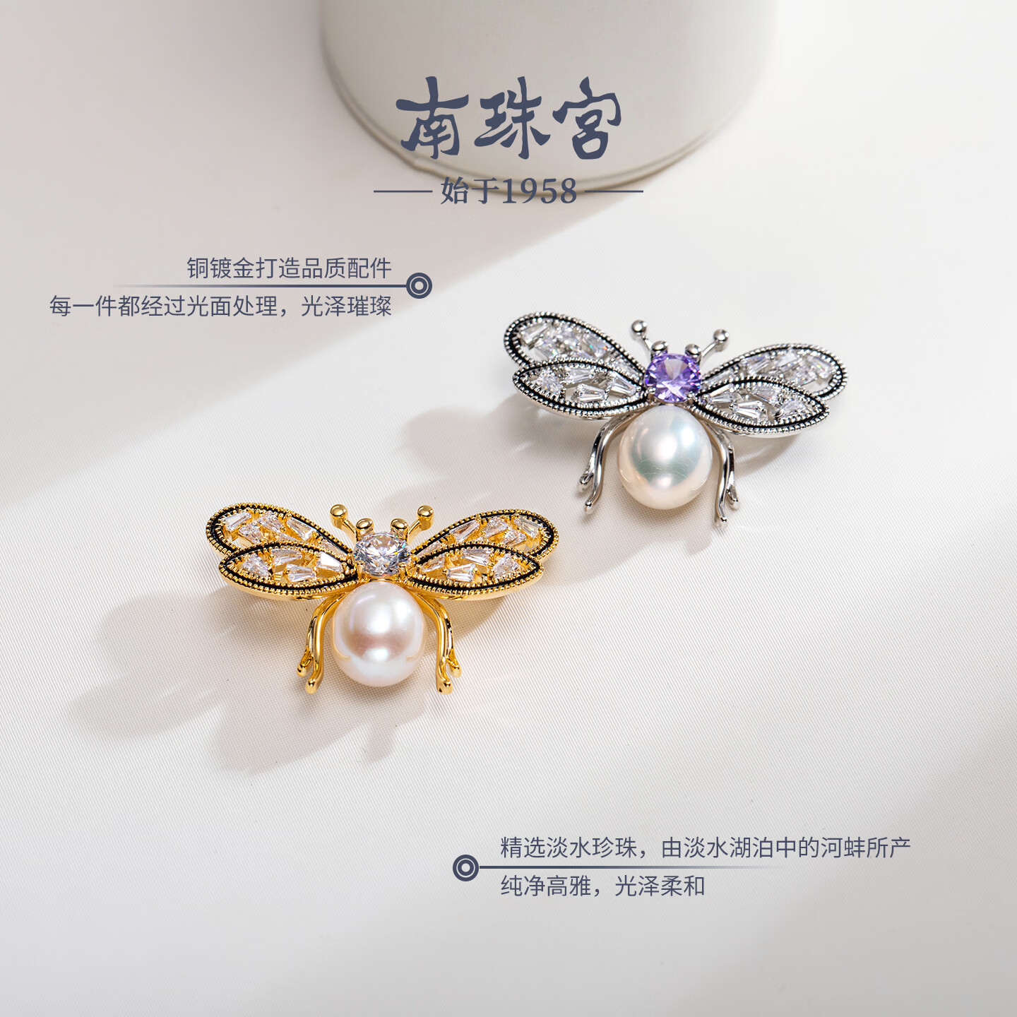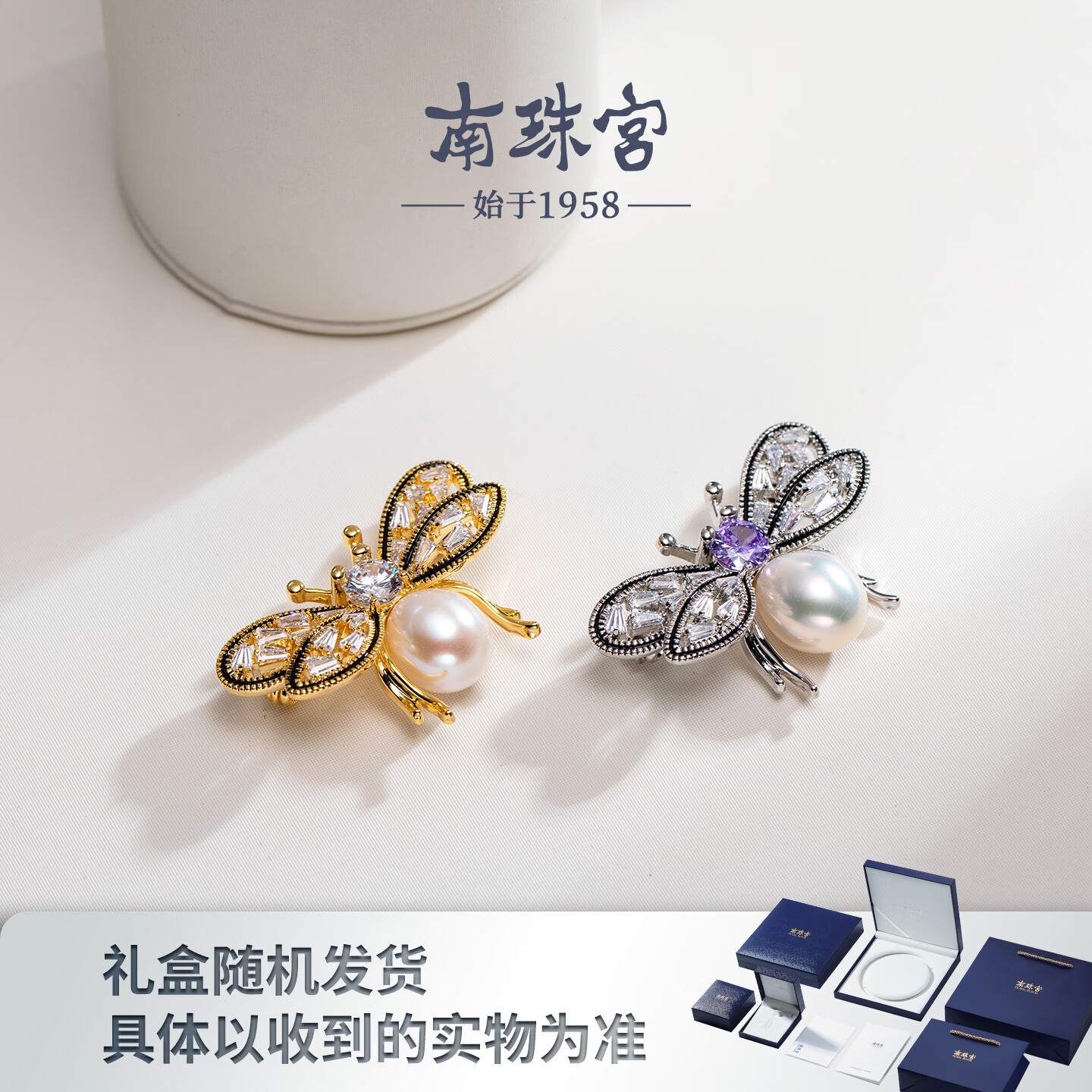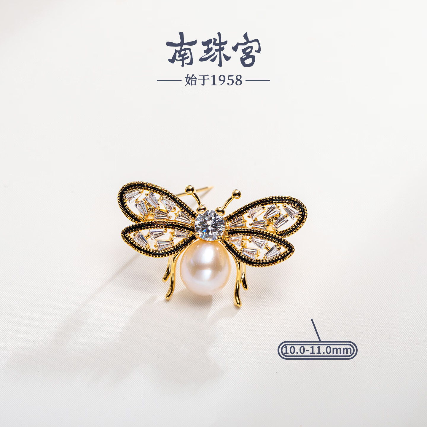 南珠宫蝴蝶淡水珍珠胸针精致百搭新年礼物送礼女H111D-J 金色款 10.0-11.0mm