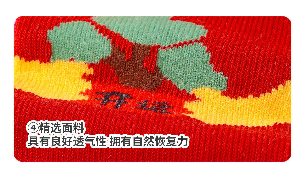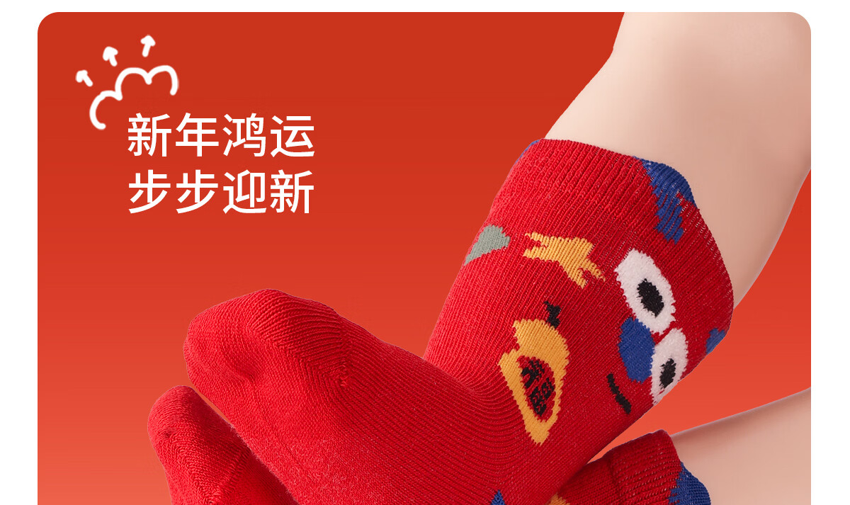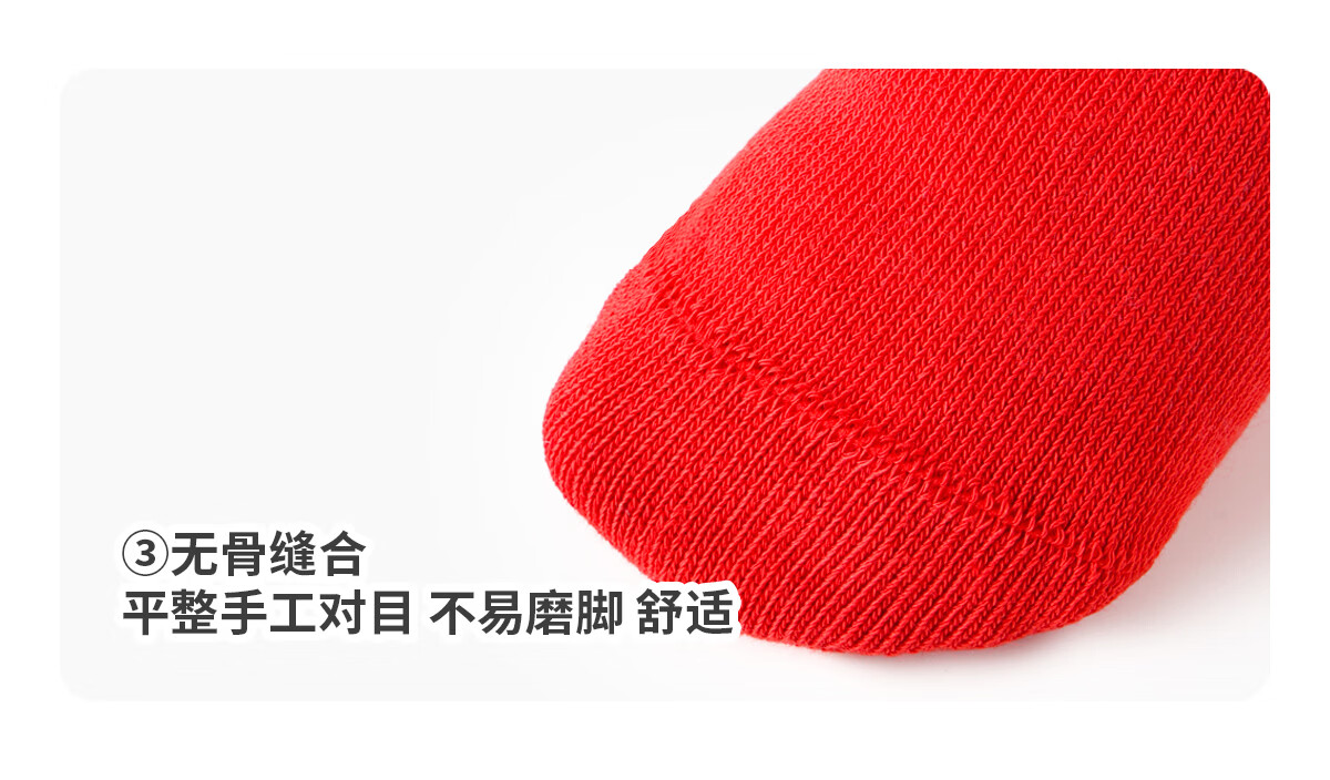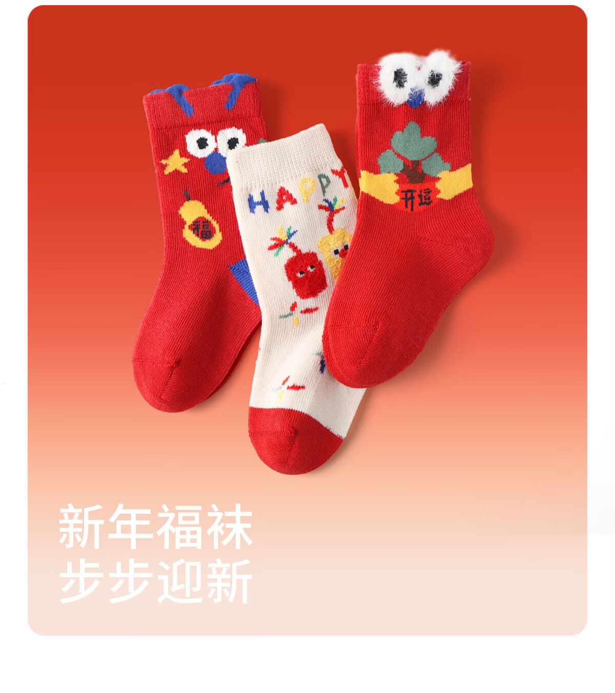 斑比100%棉婴儿新年红袜子秋冬季棉袜新生儿宝宝春秋款无骨中筒袜 B466 婴儿新年红袜(100%棉 袜筒加长) 3双 6-12月 底长9.5-10cm【6-12】