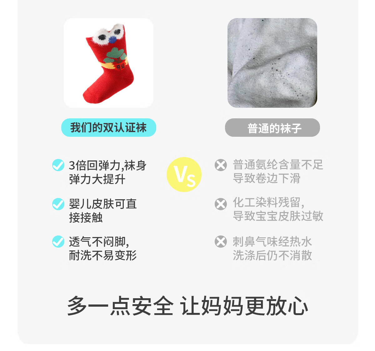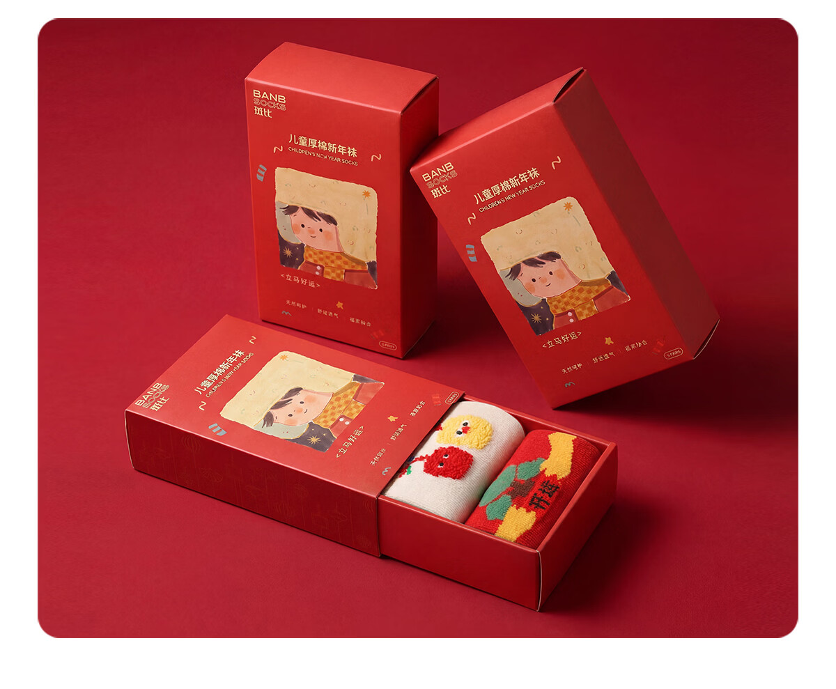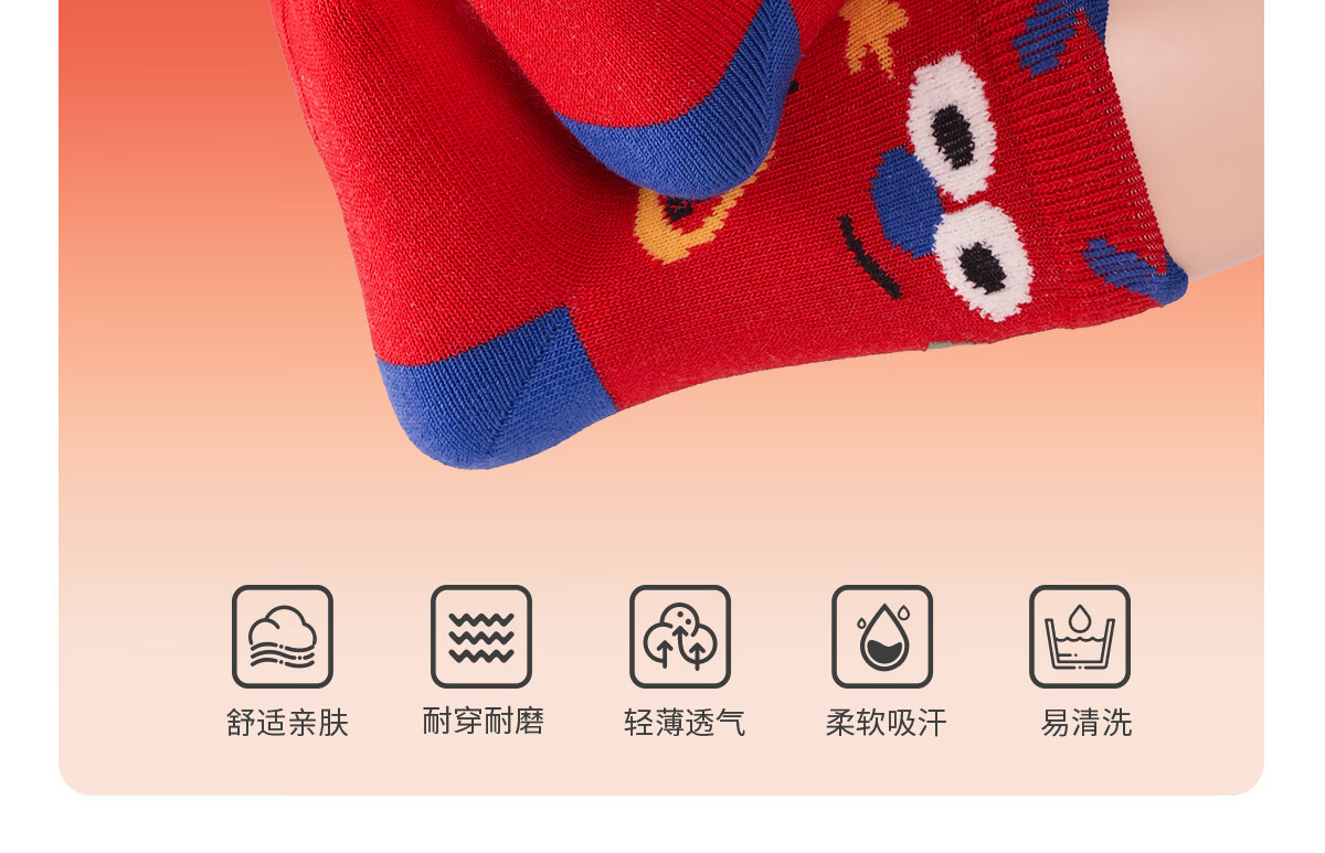 斑比100%棉婴儿新年红袜子秋冬季棉袜新生儿宝宝春秋款无骨中筒袜 B466 婴儿新年红袜(100%棉 袜筒加长) 3双 6-12月 底长9.5-10cm【6-12】