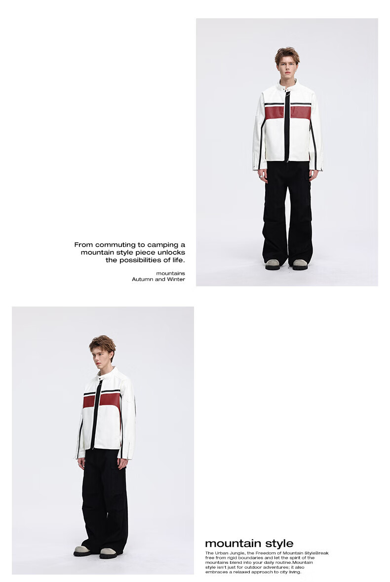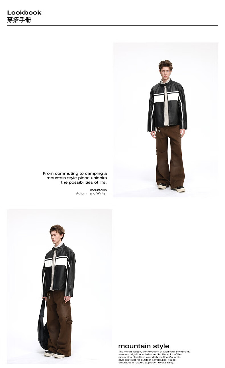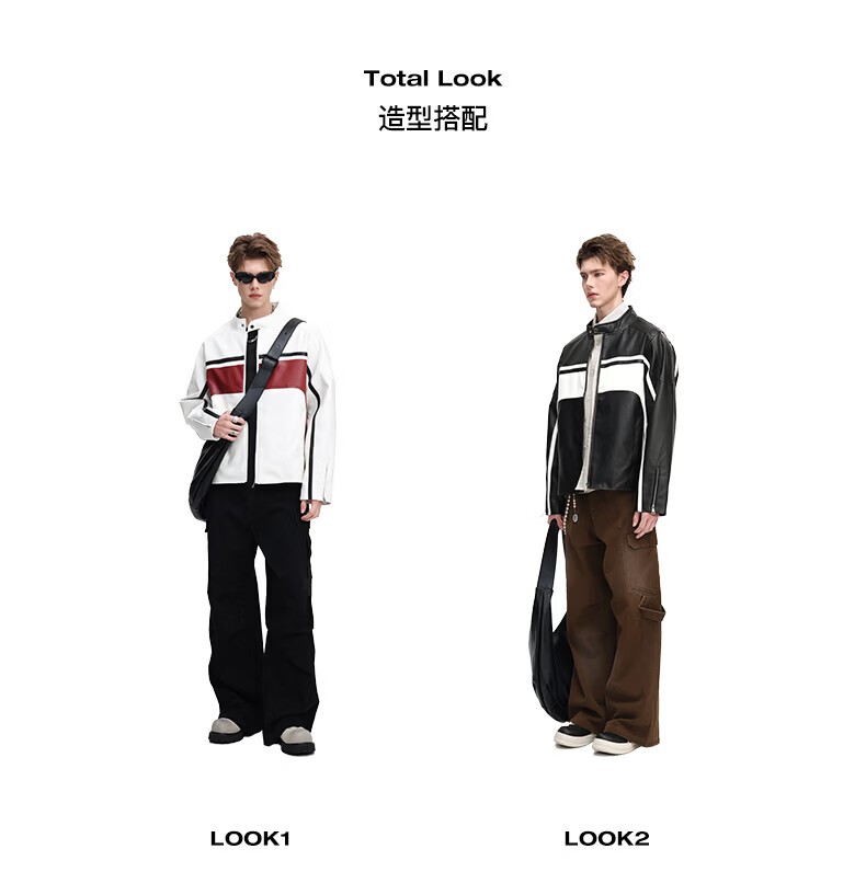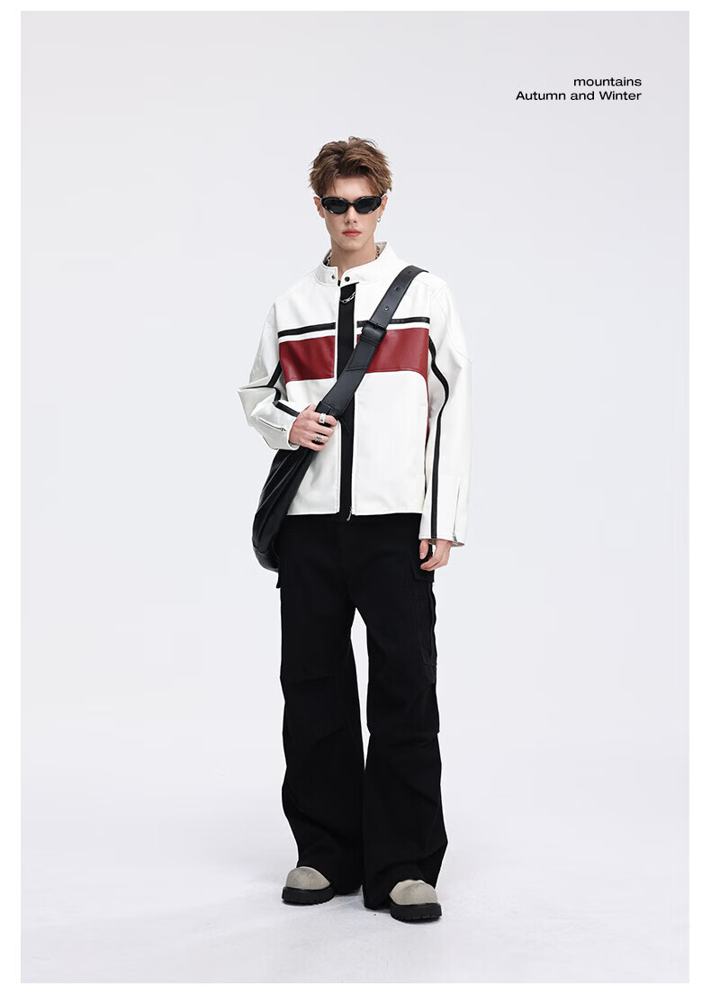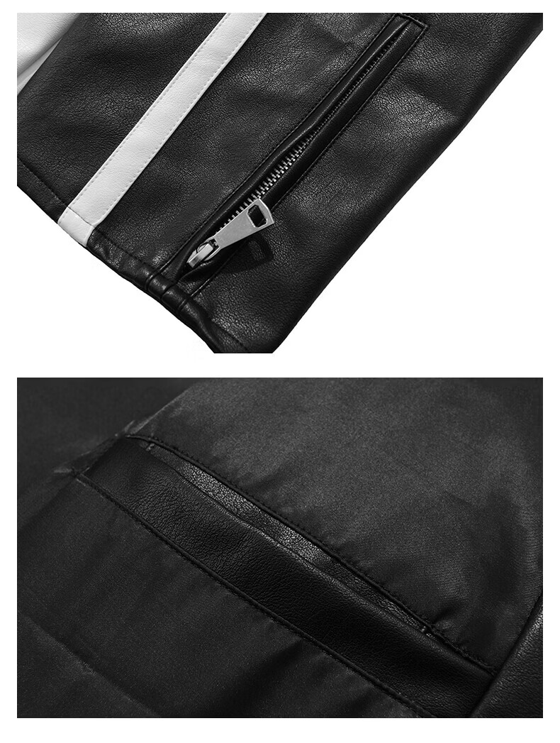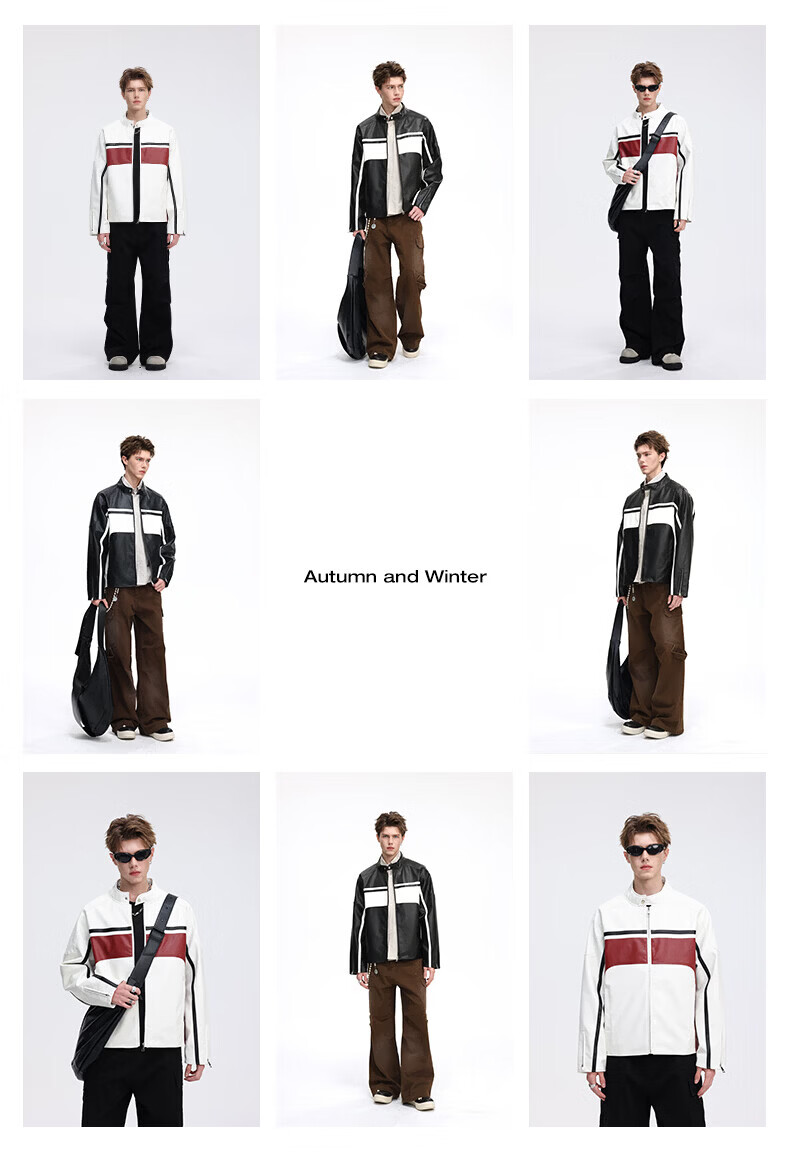 真维斯(Jeanswest)皮衣外套美式复古机车风黑白撞色立领宽松皮夹克男 黑色 2XL