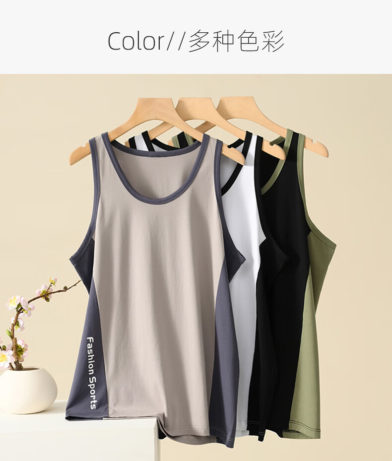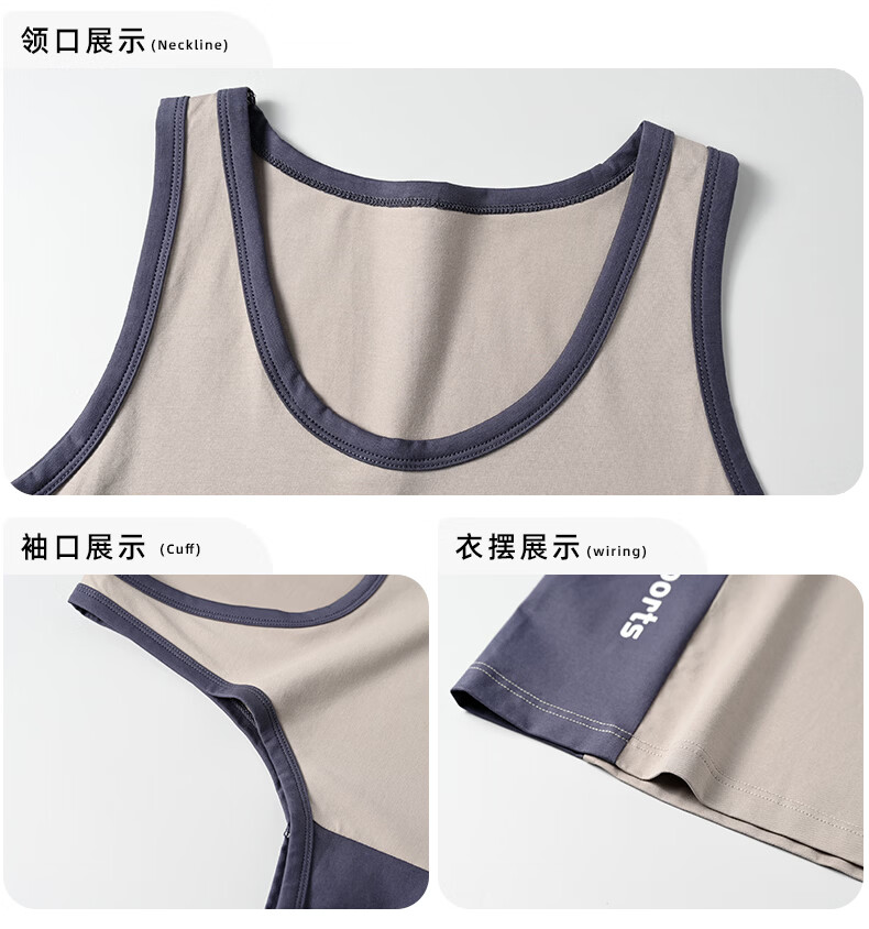 叶盼(yepan)【柔软】莱卡纯棉睡衣男士背心夏季单件青年运动可外穿休闲家居服 11002-红灰 L (170) :建议100-120斤穿着
