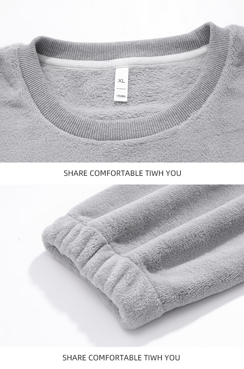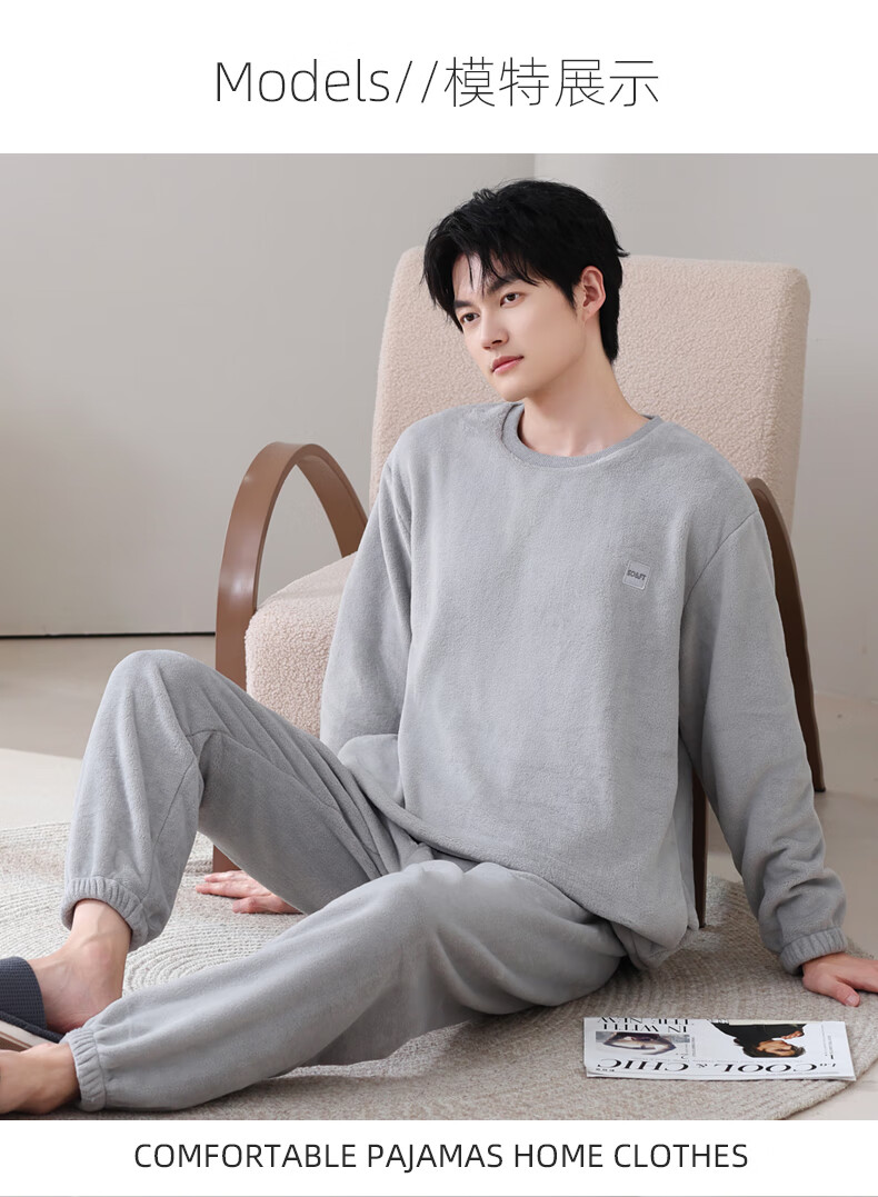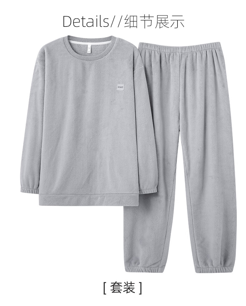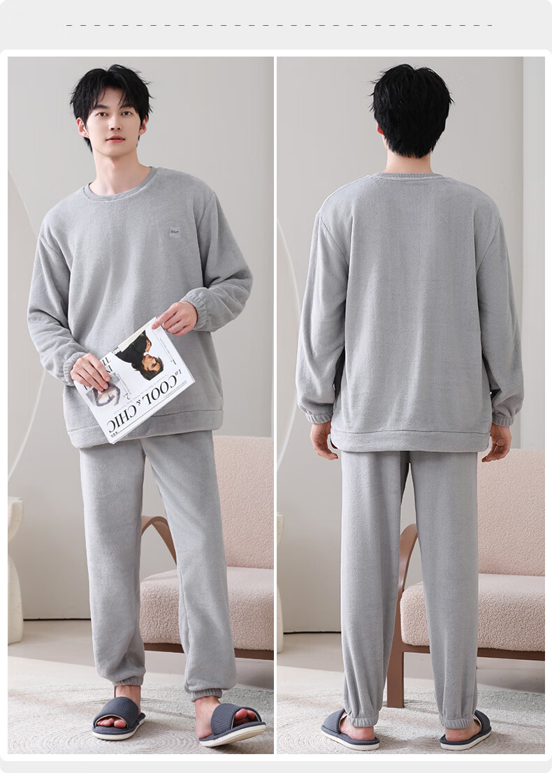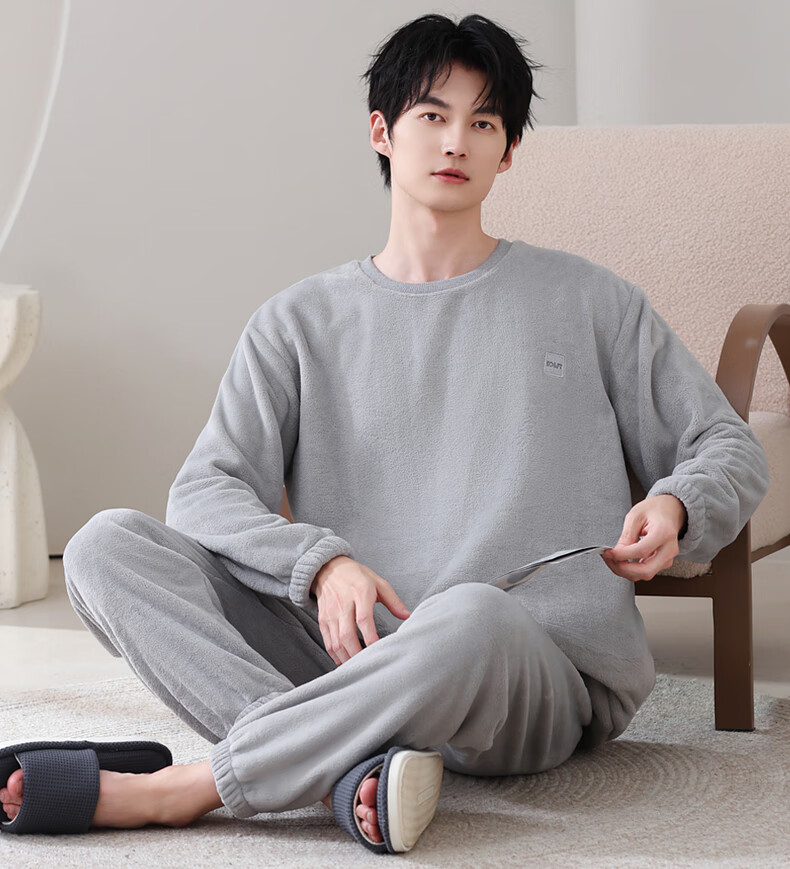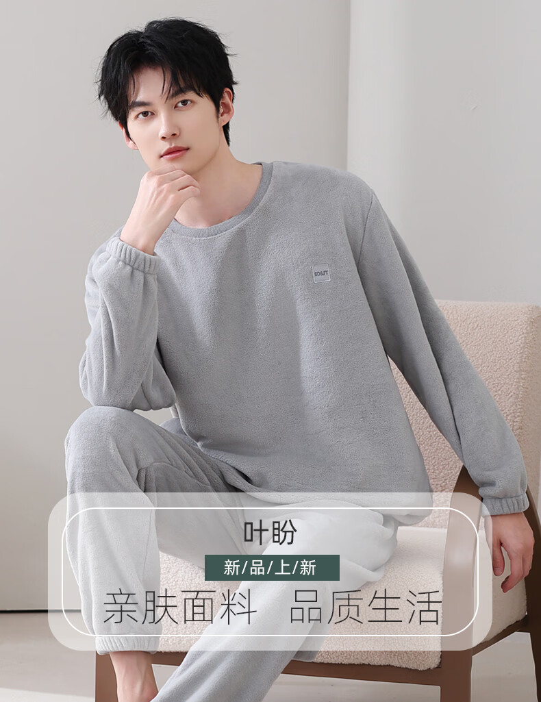叶盼(yepan)【保暖】法兰绒睡衣男冬季加绒加厚大码高级感男士套头家居服套装 4902-星氤灰 L (170) :建议100-135斤穿着